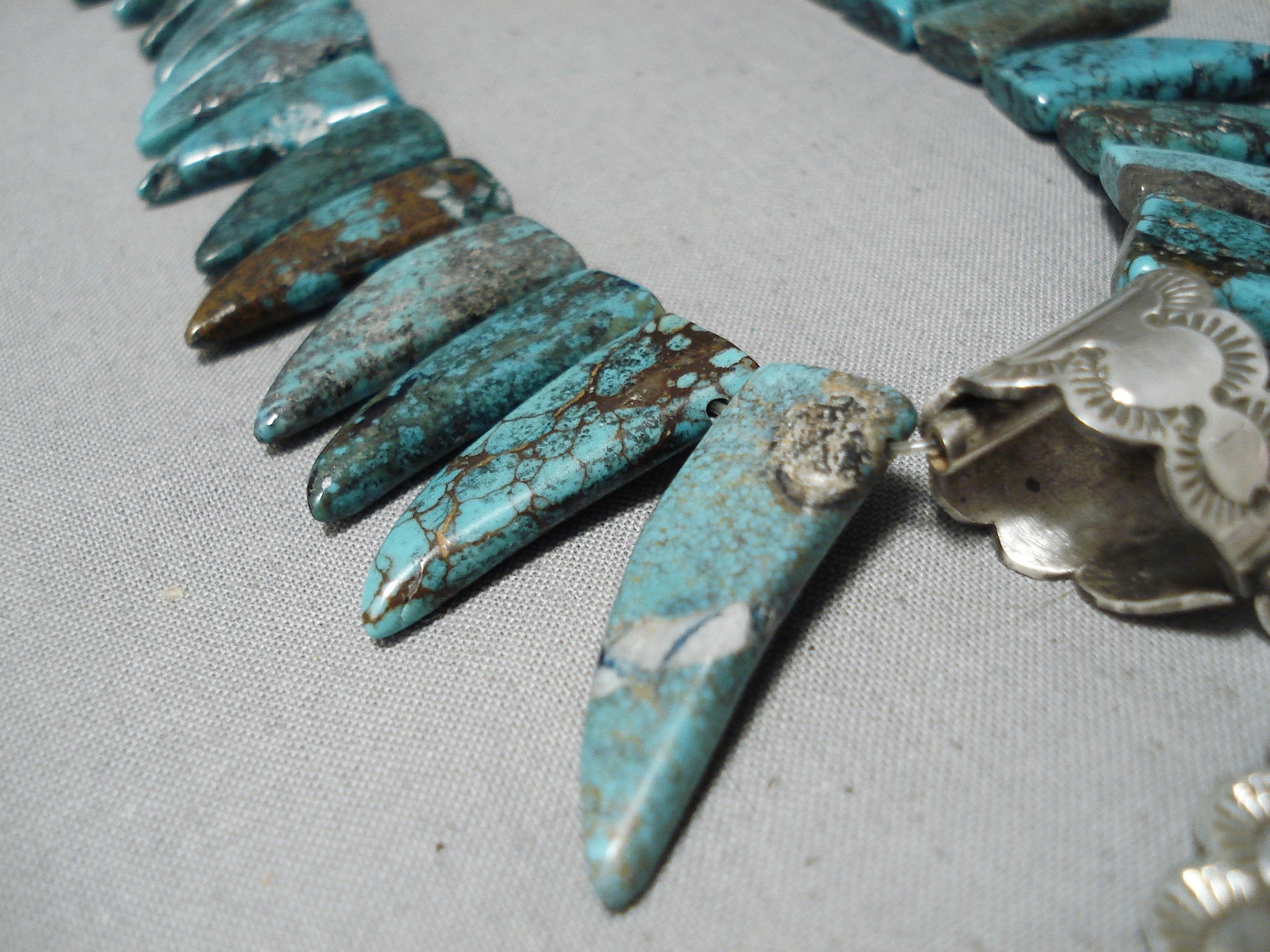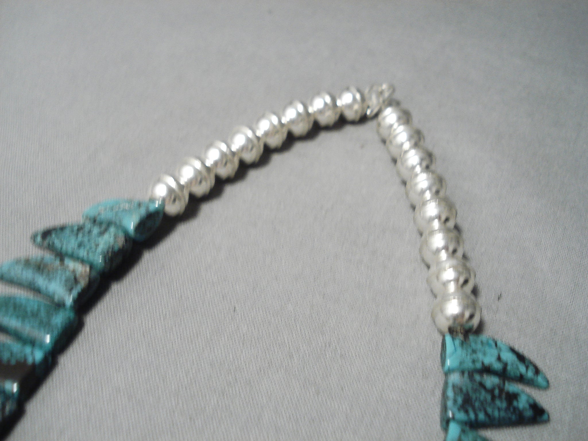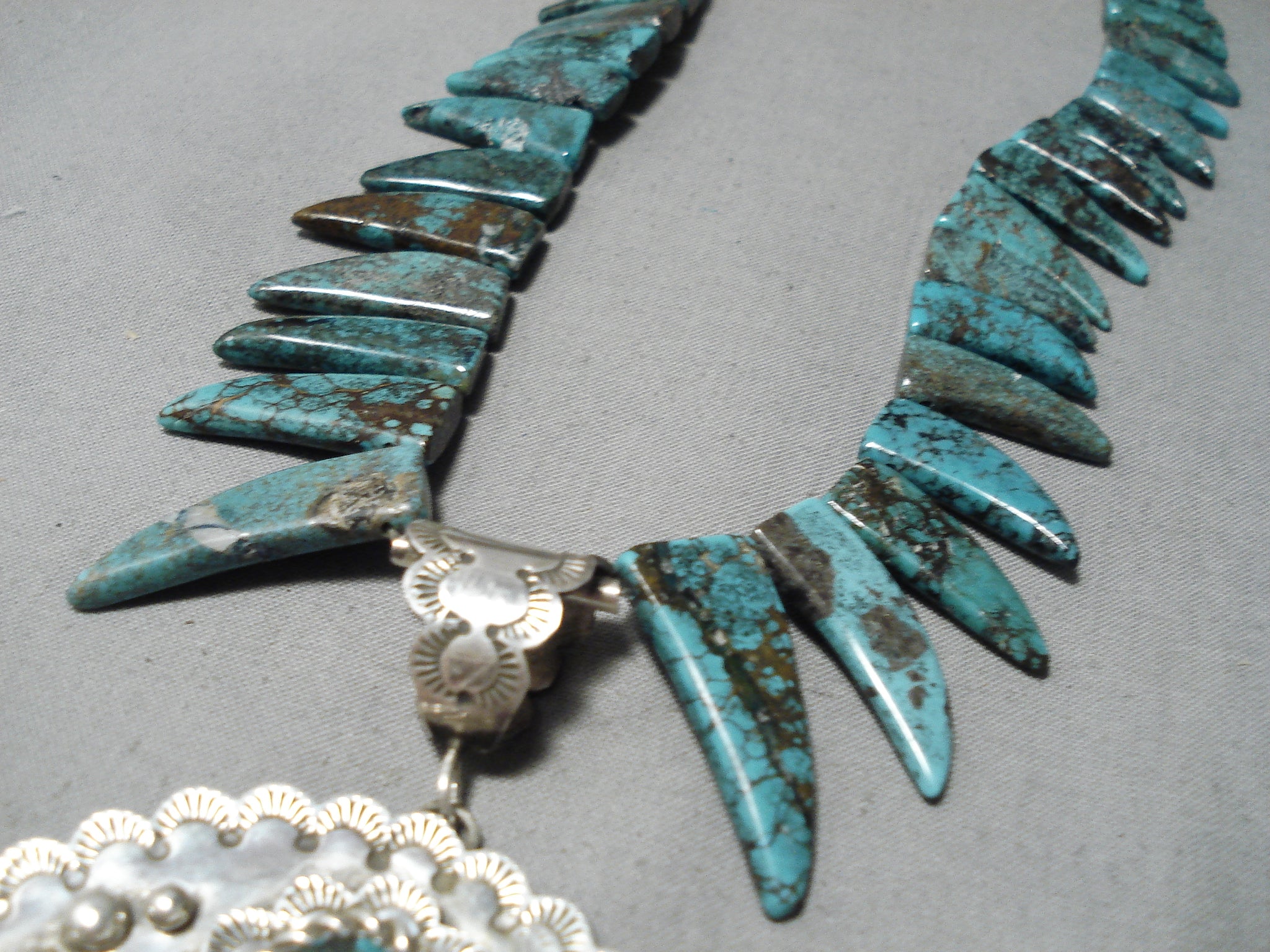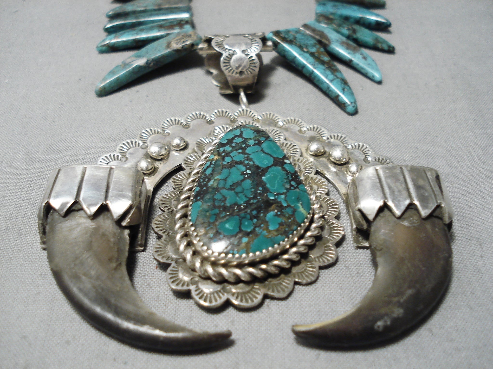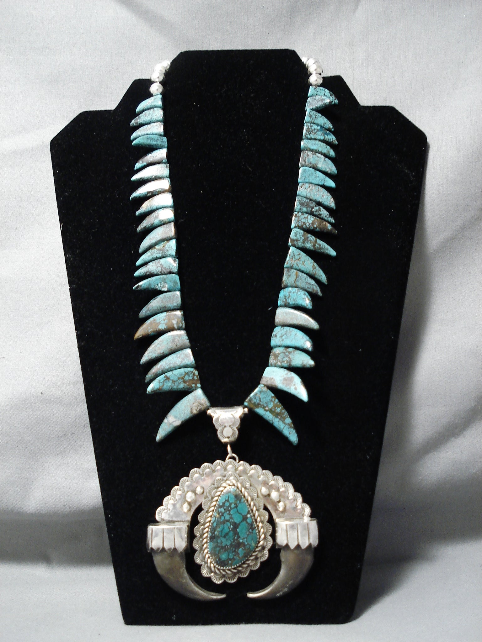 Native American Gigantic Spiderweb Turquoise Shark Tooth Sterling Silver Necklace- Wow!