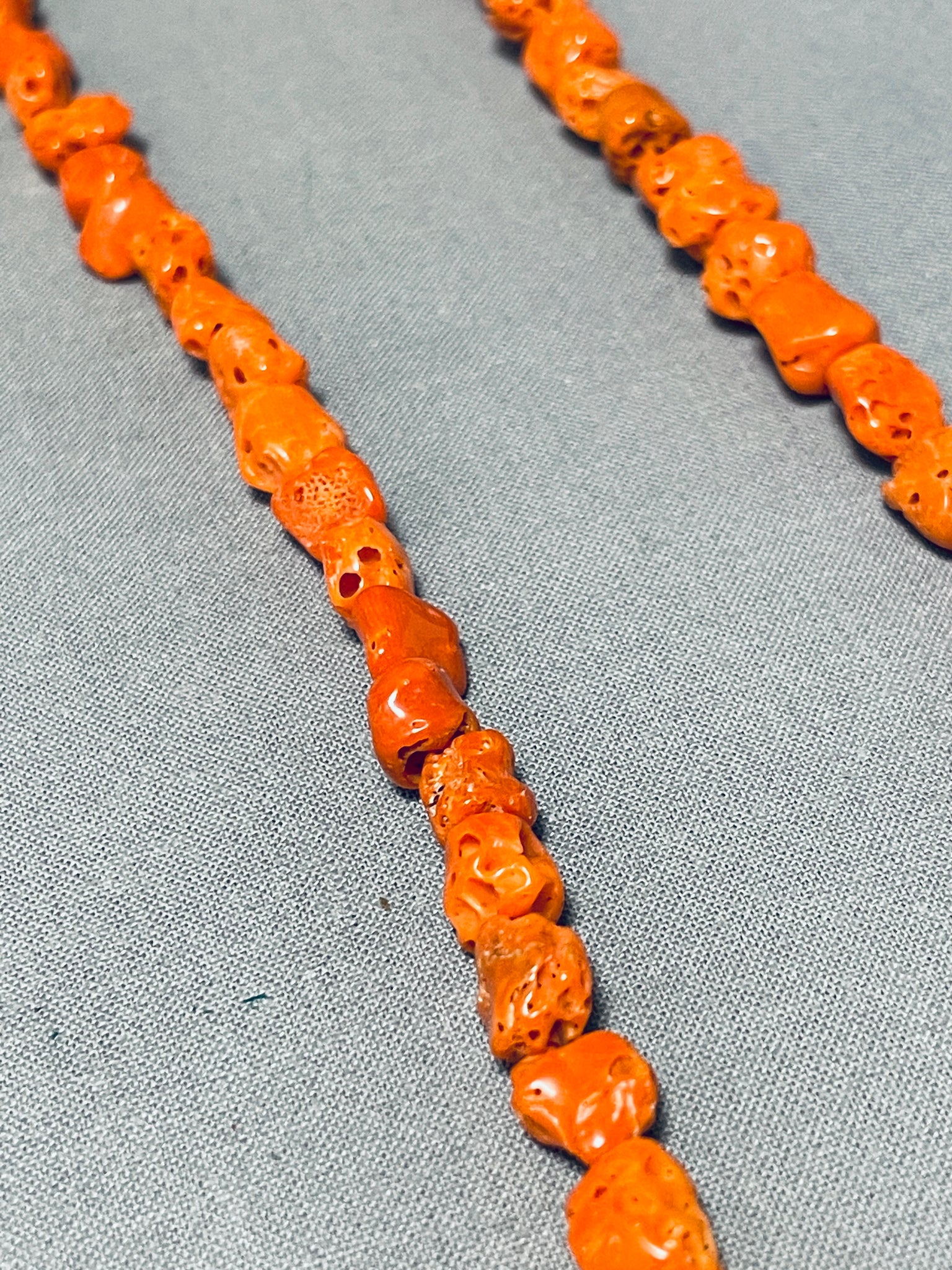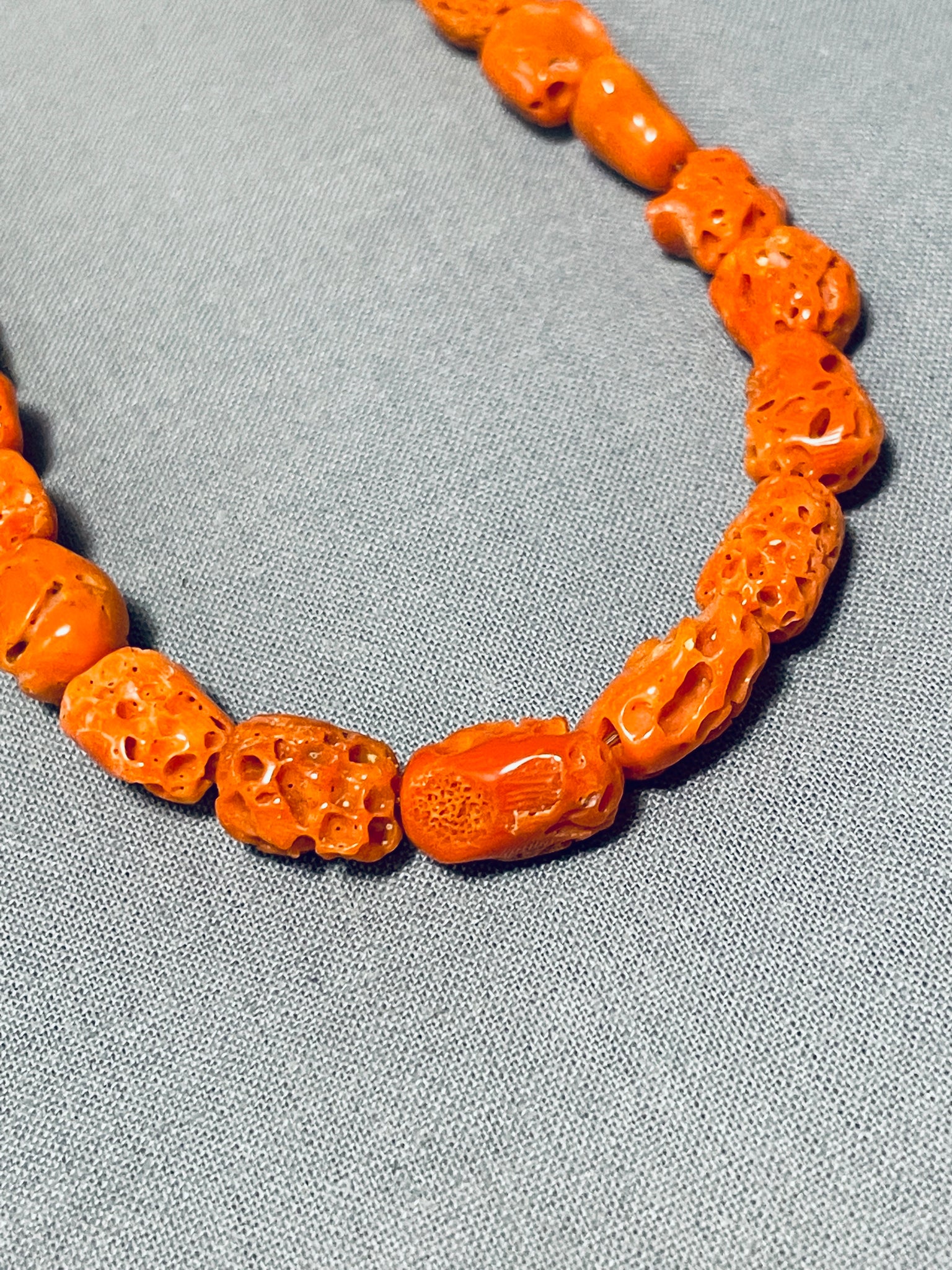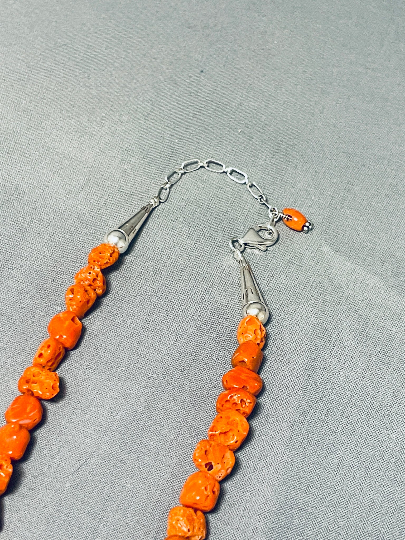 Native American Gorgeous Big Coral Santo Domingo Coral Sterling Silver Necklace