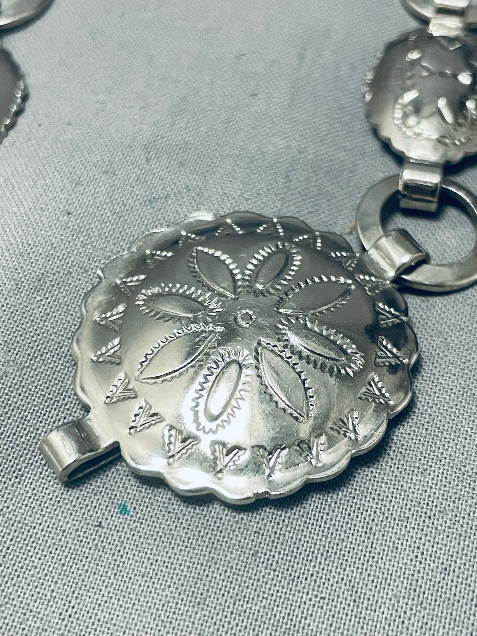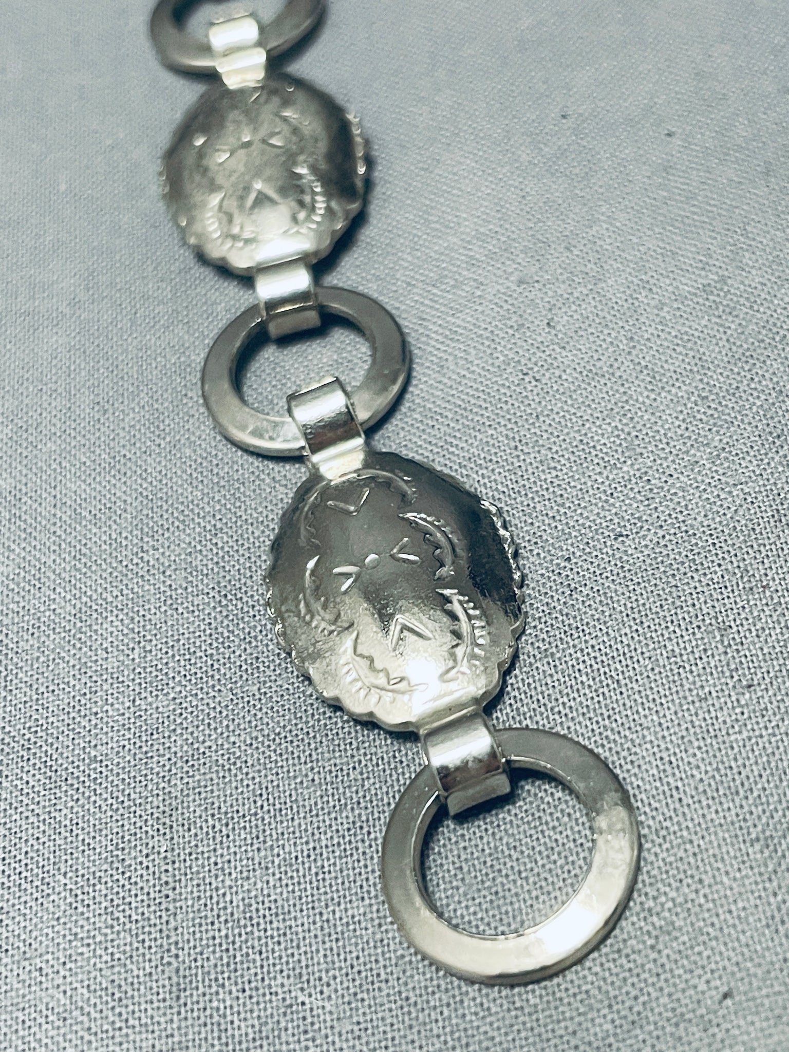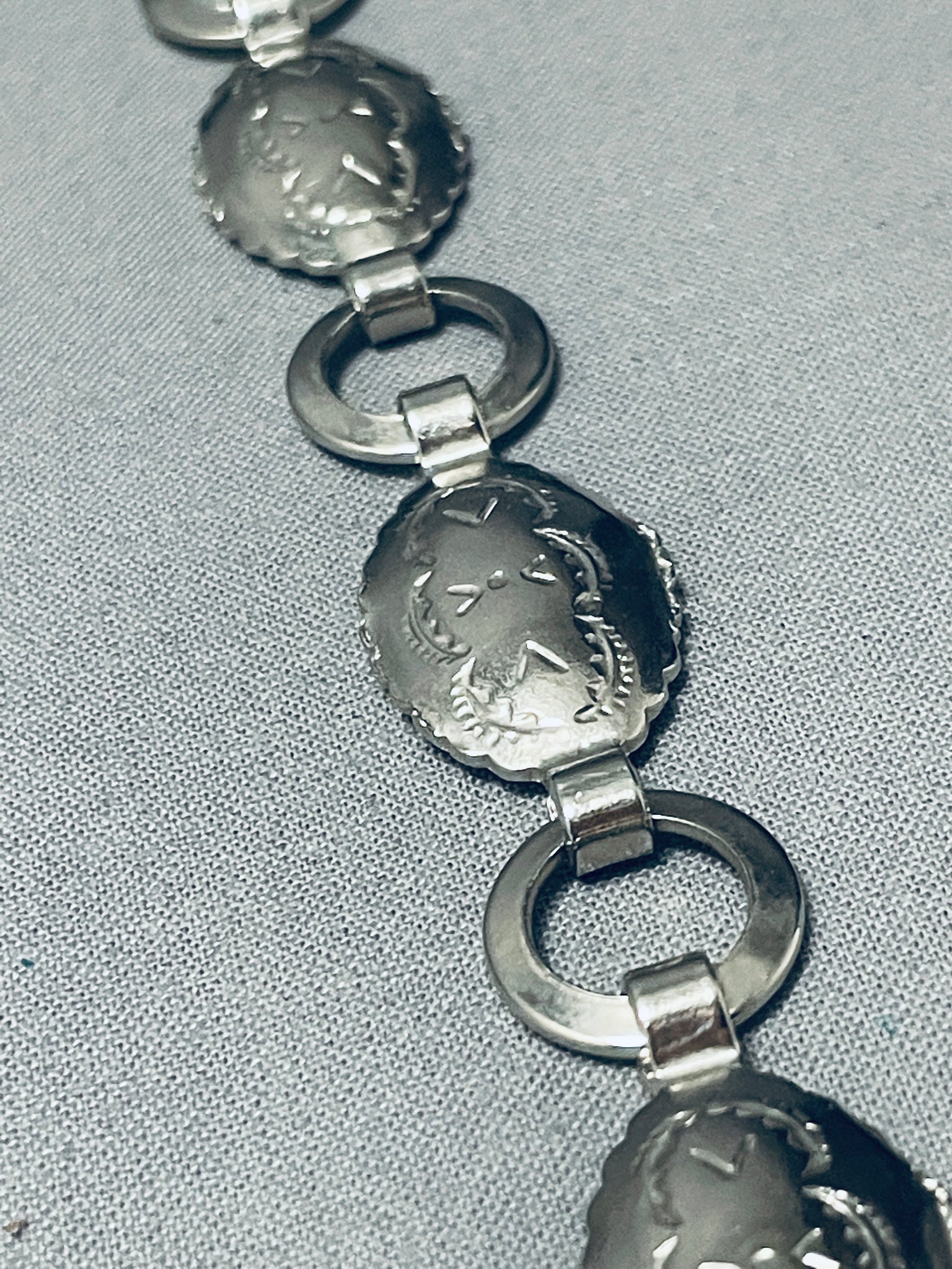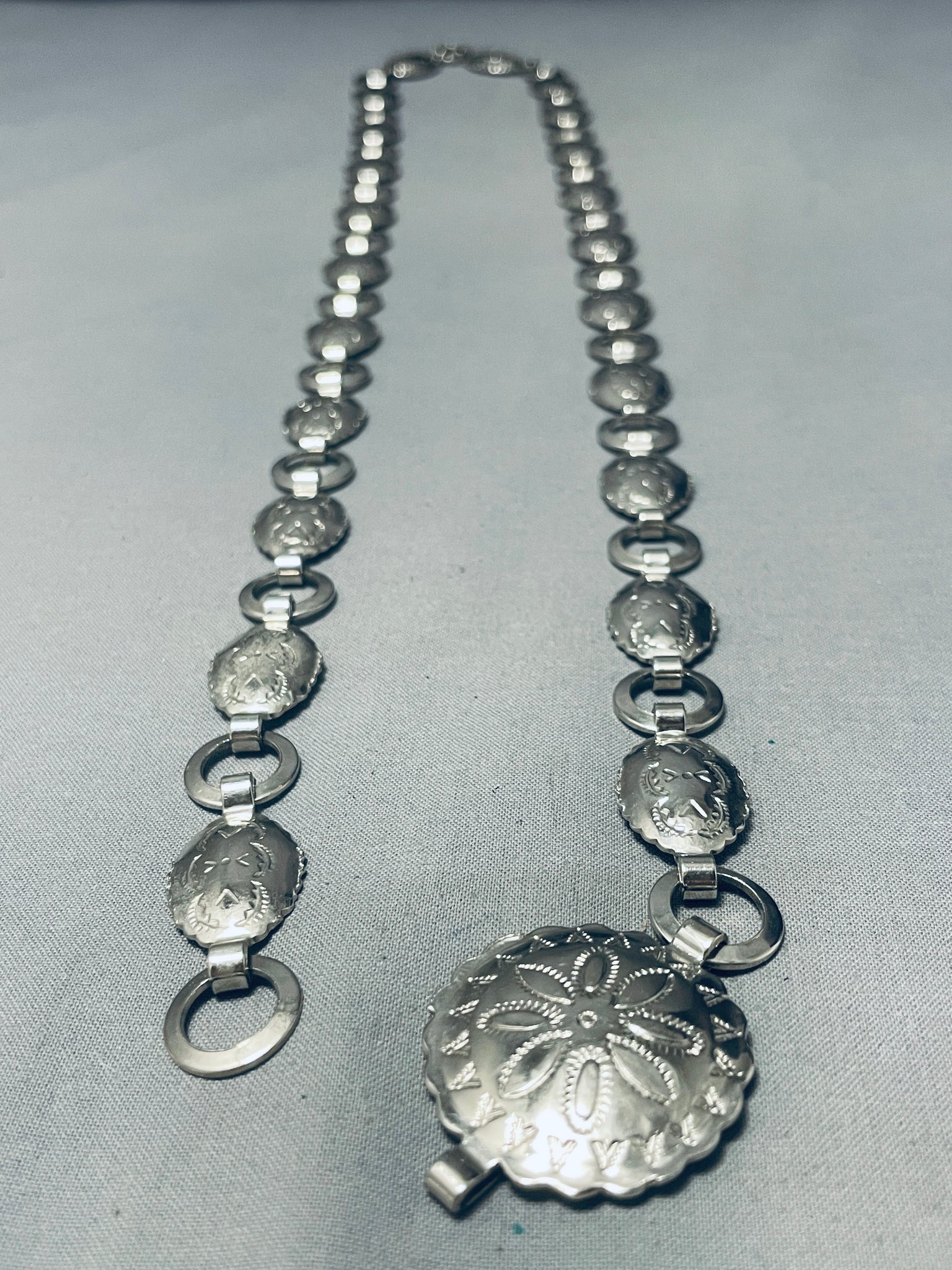 Native American Hand Hammered Early Vintage Navajo Sterling Silver Concho Belt