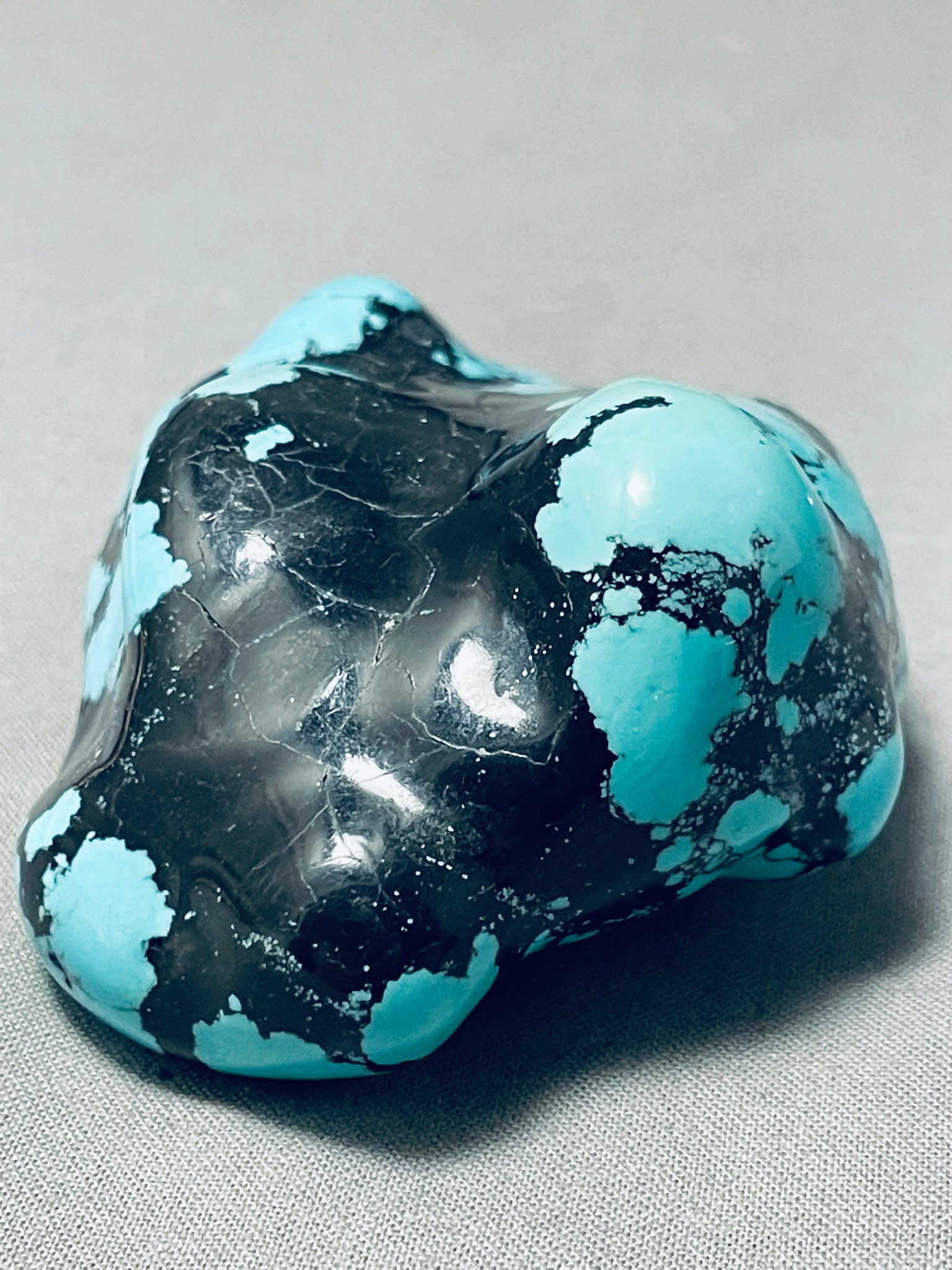 This is a magnificent Southwestern large turquoise paper weight. This amazing paper weight is large measuring a whopping 3-1/4" X 2-1/2". The stone is a stunning green to blue color with incredible black matrix. Sturdy 143 grams.