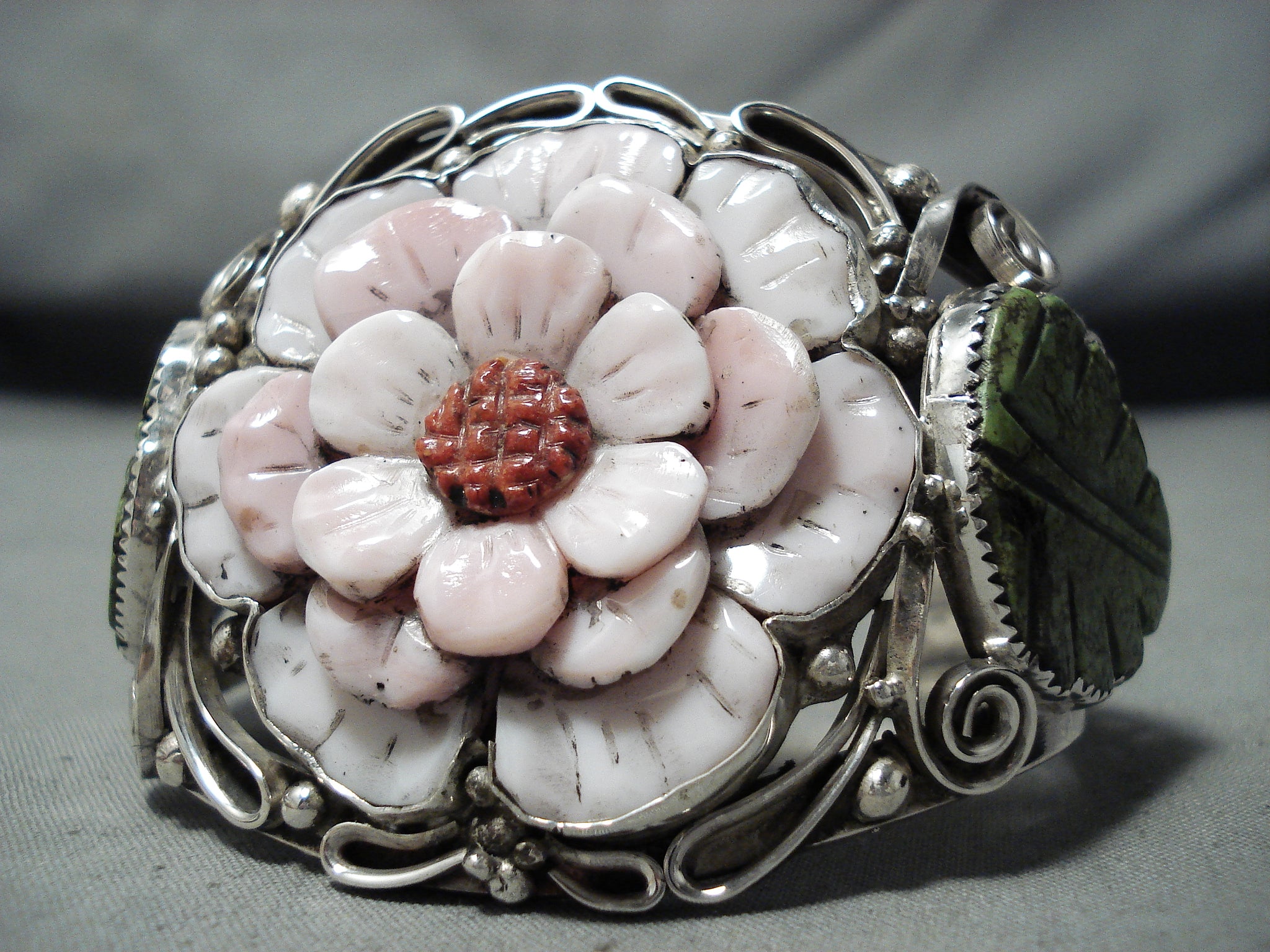 Native American Huge Flower Important Franciso Gomez Turquoise Sterling Silver Bracelet