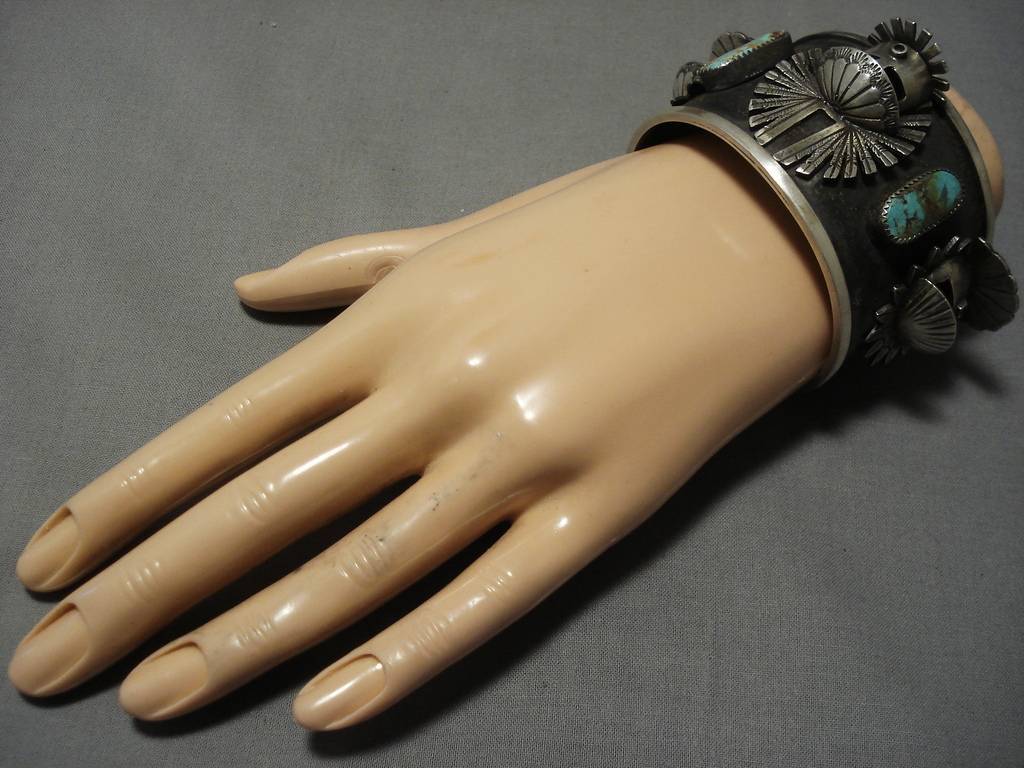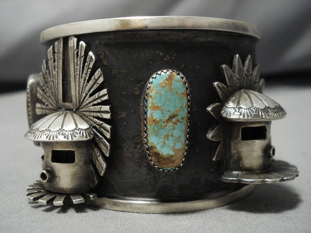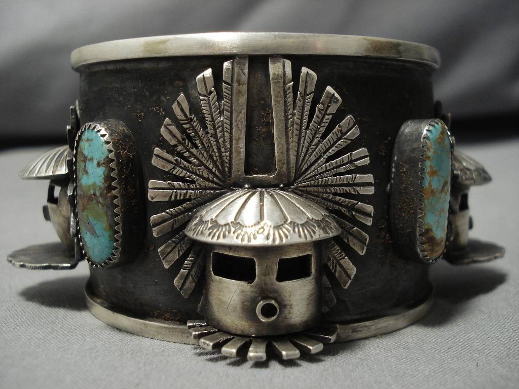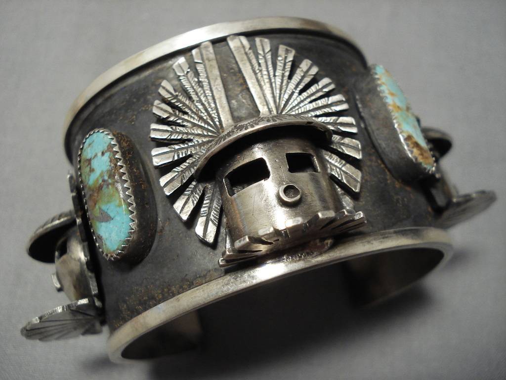 Native American Huge Kachina Head Royston Turquoise Wide Sterling Silver Bracelet Cuff 106 Grams