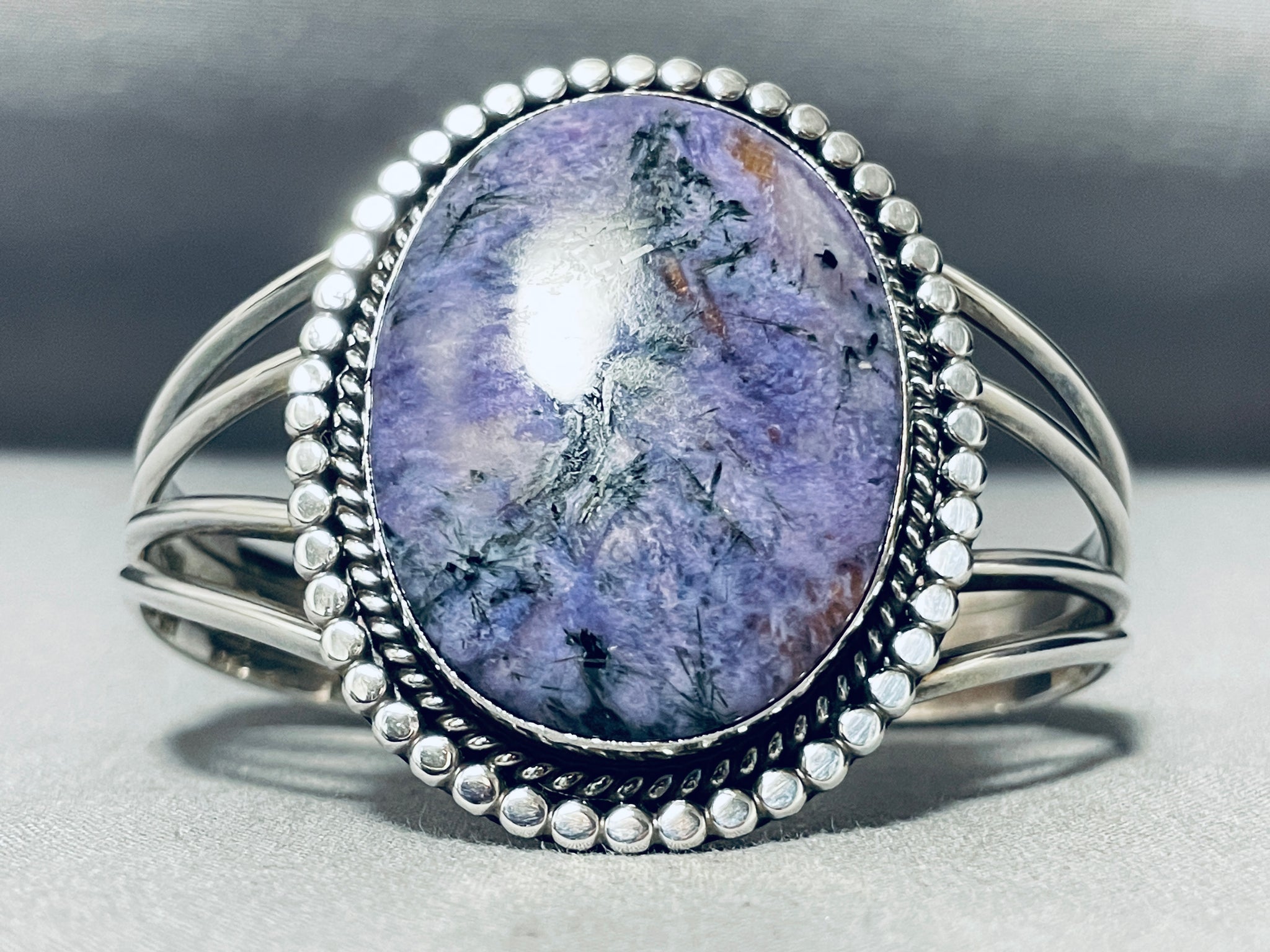Native American Huge Vintage Navajo Charoite Sterling Silver Bracelet Cuff Jewelry