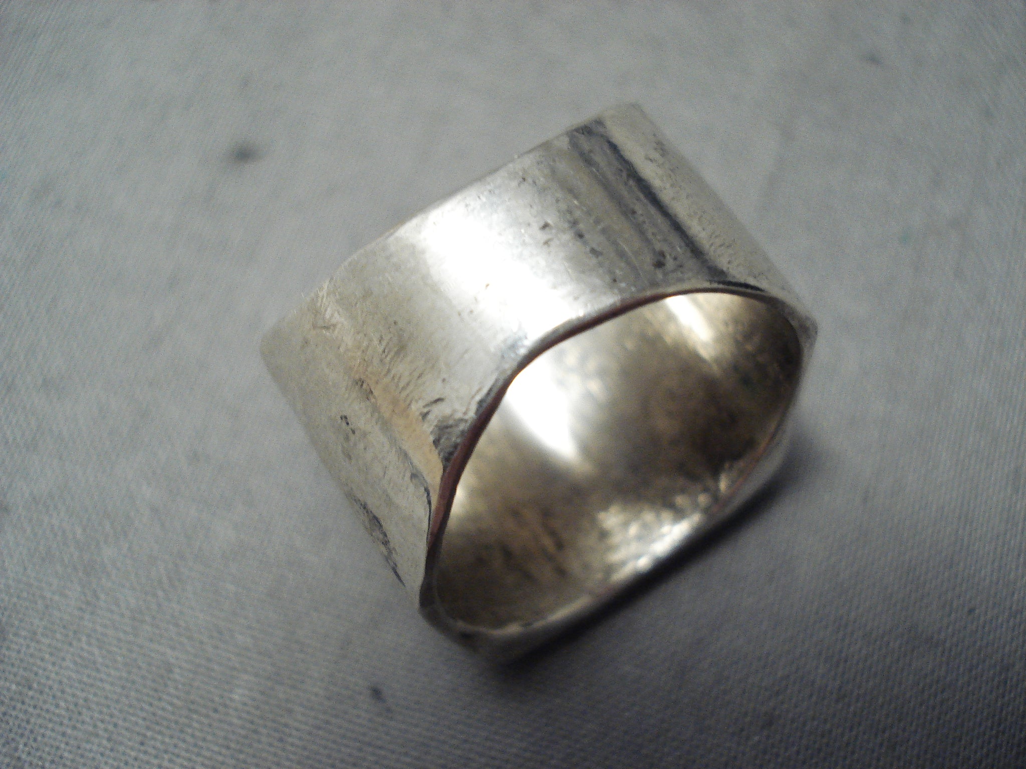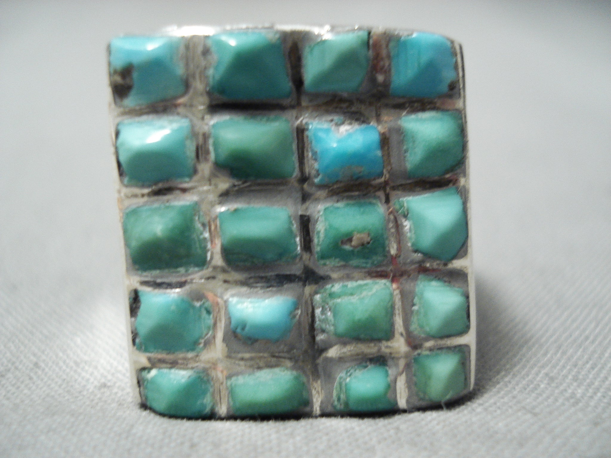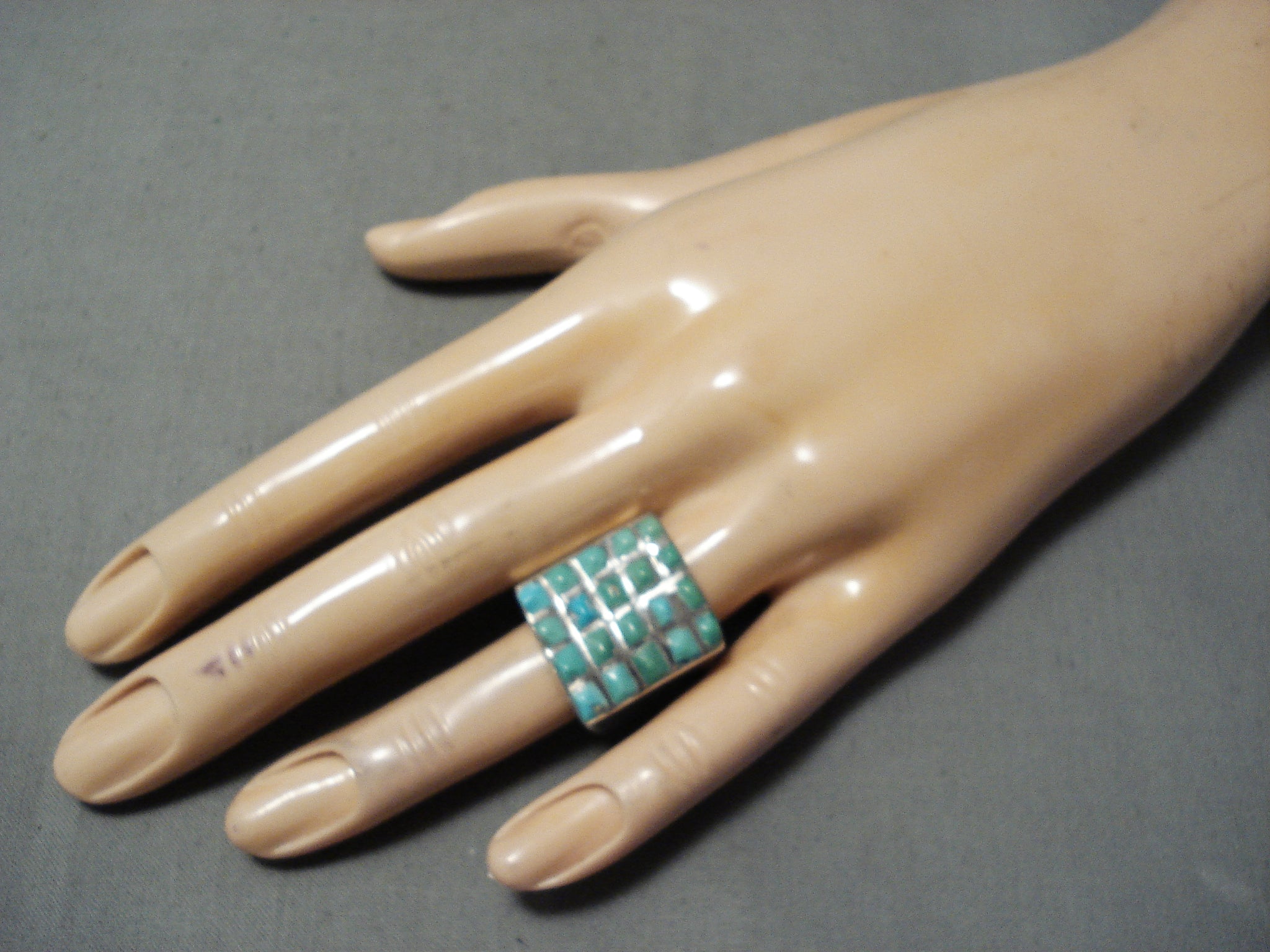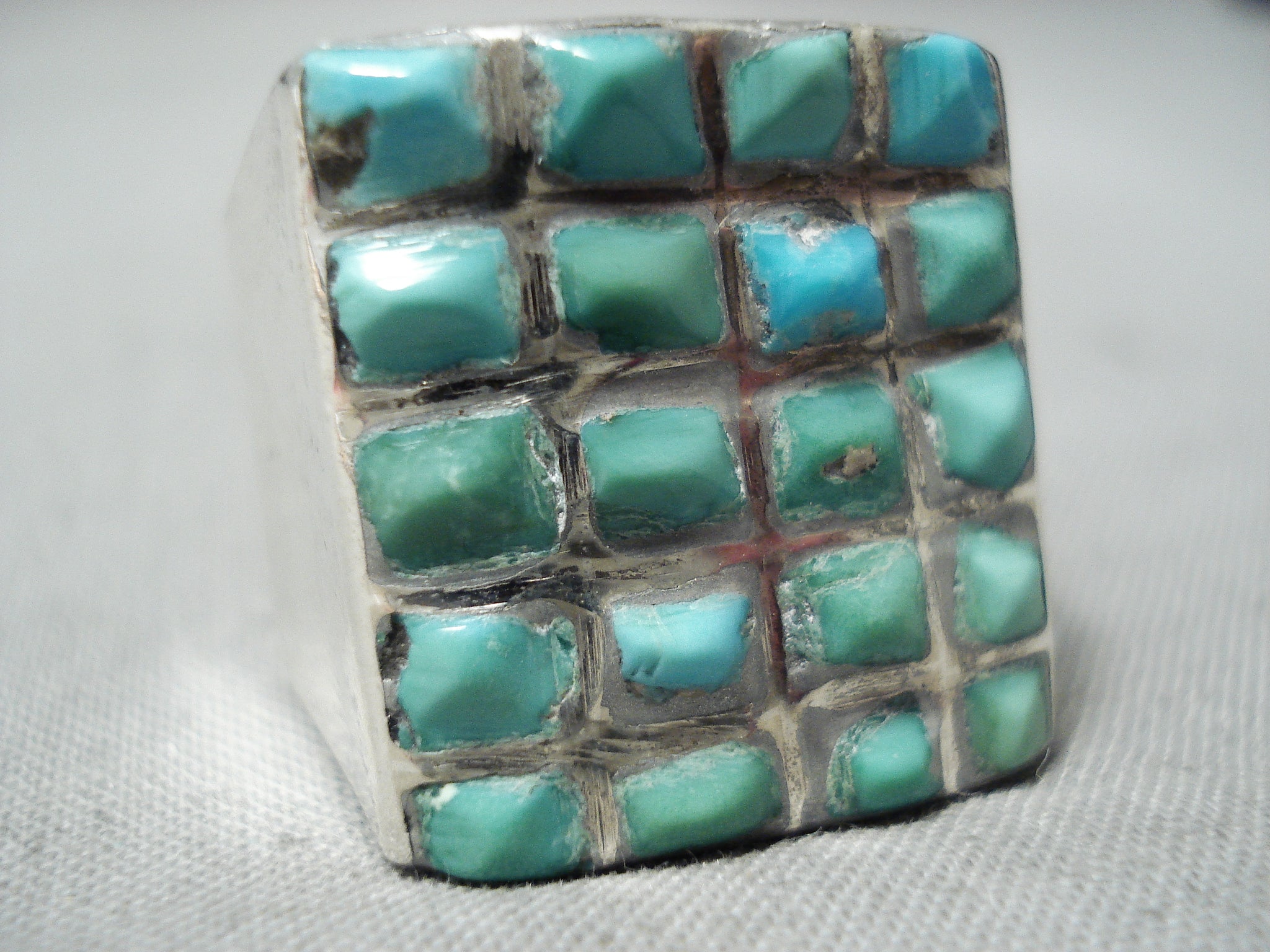 Native American Huge Vintage Navajo Turquoise Squared Inlay Sterling Silver Ring