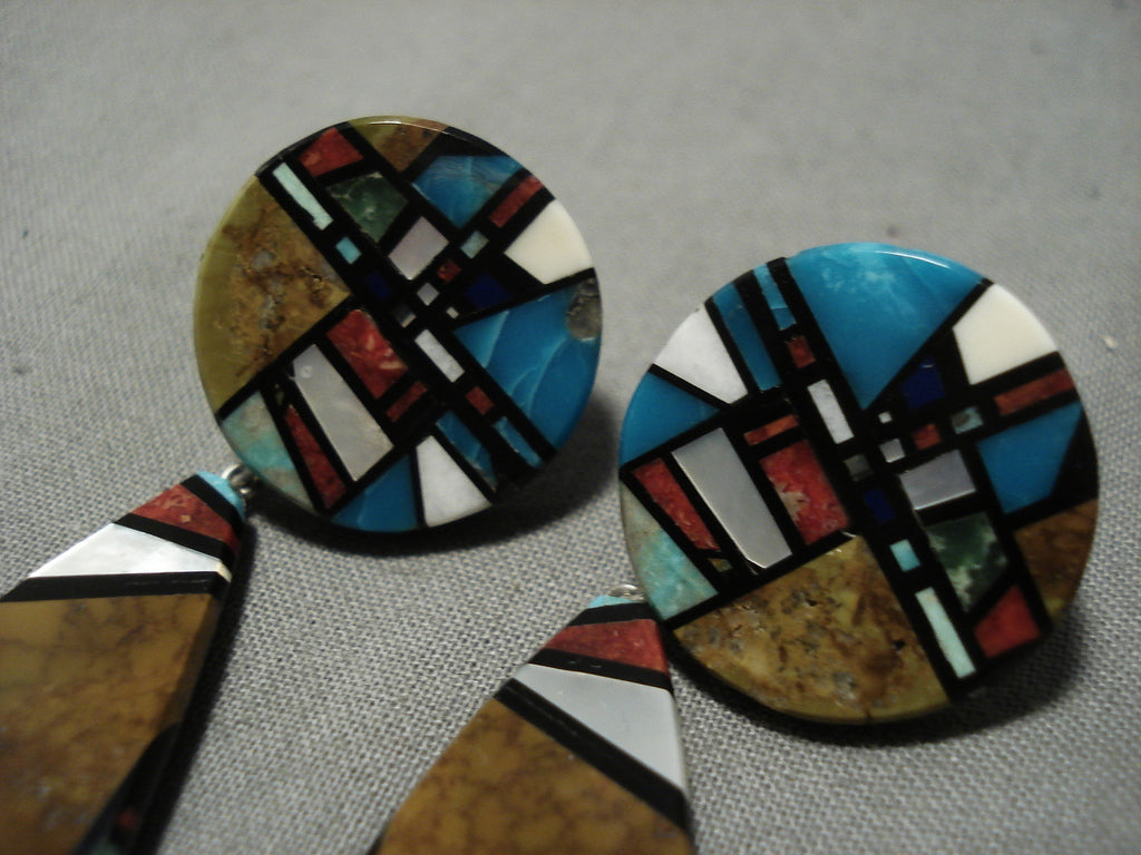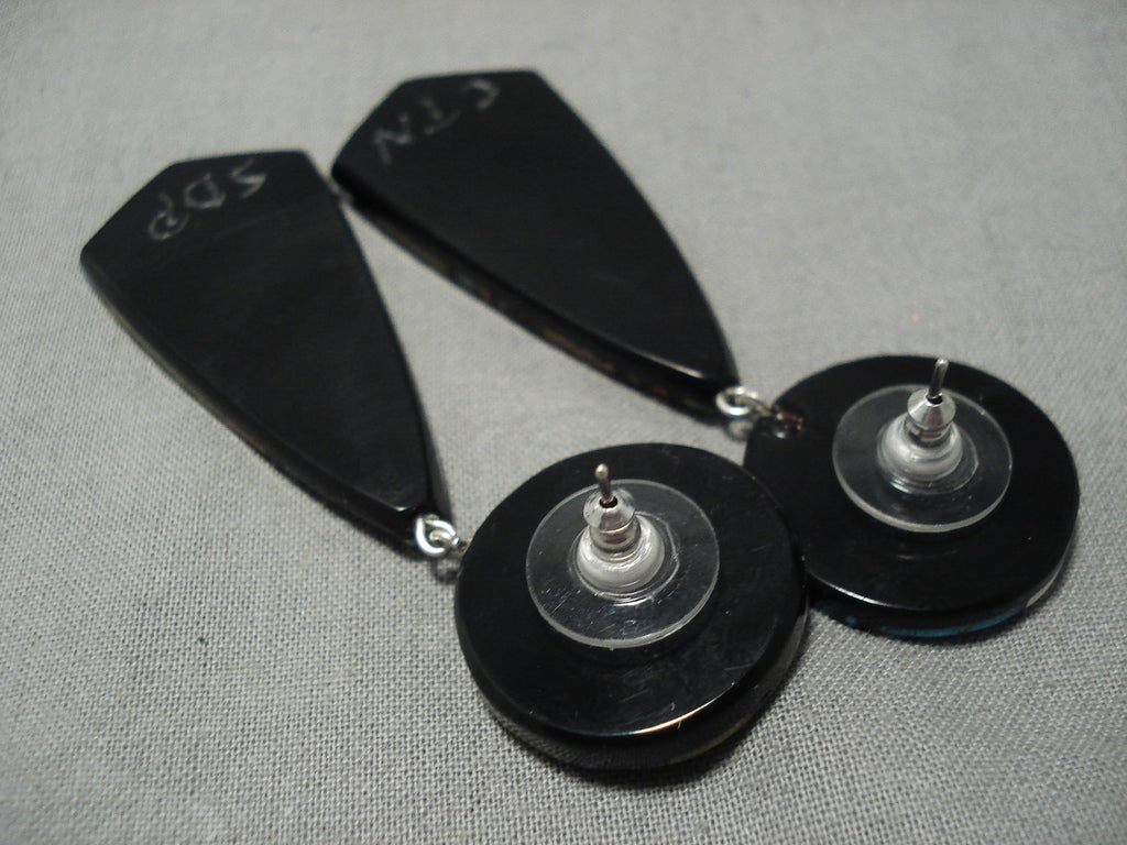 Native American Important Chris Nieto Santo Domingo Turquoise Inlay Sterling Silver Earrings