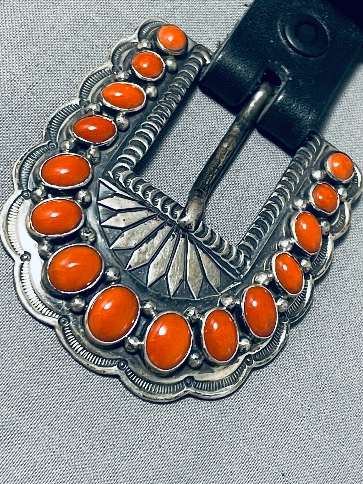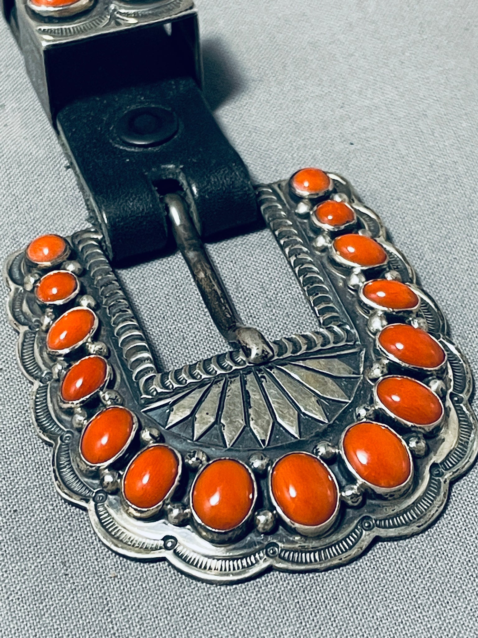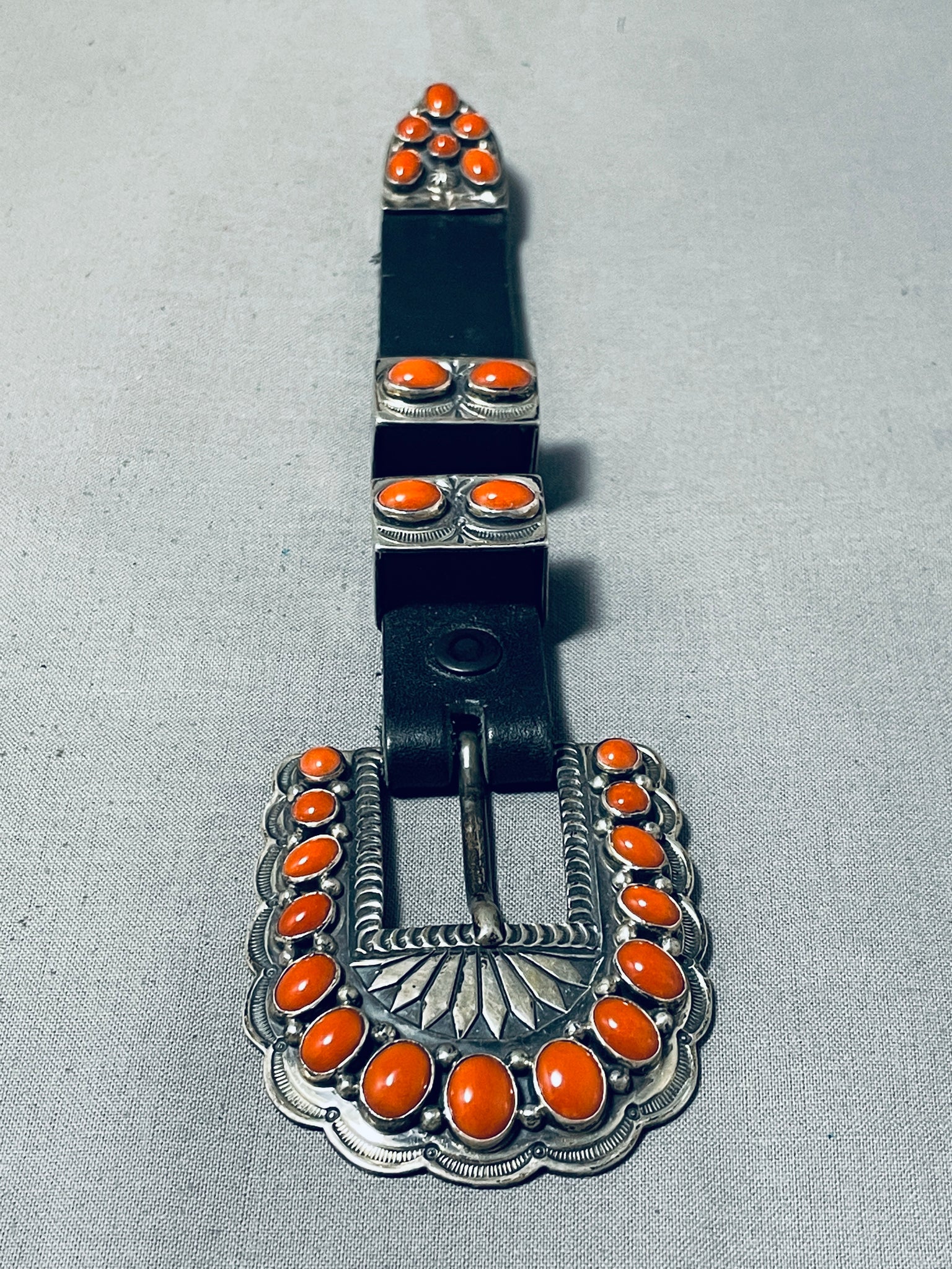 Native American Important Gary Reeves (d.) Coral Sterling Silver Buckle Set
