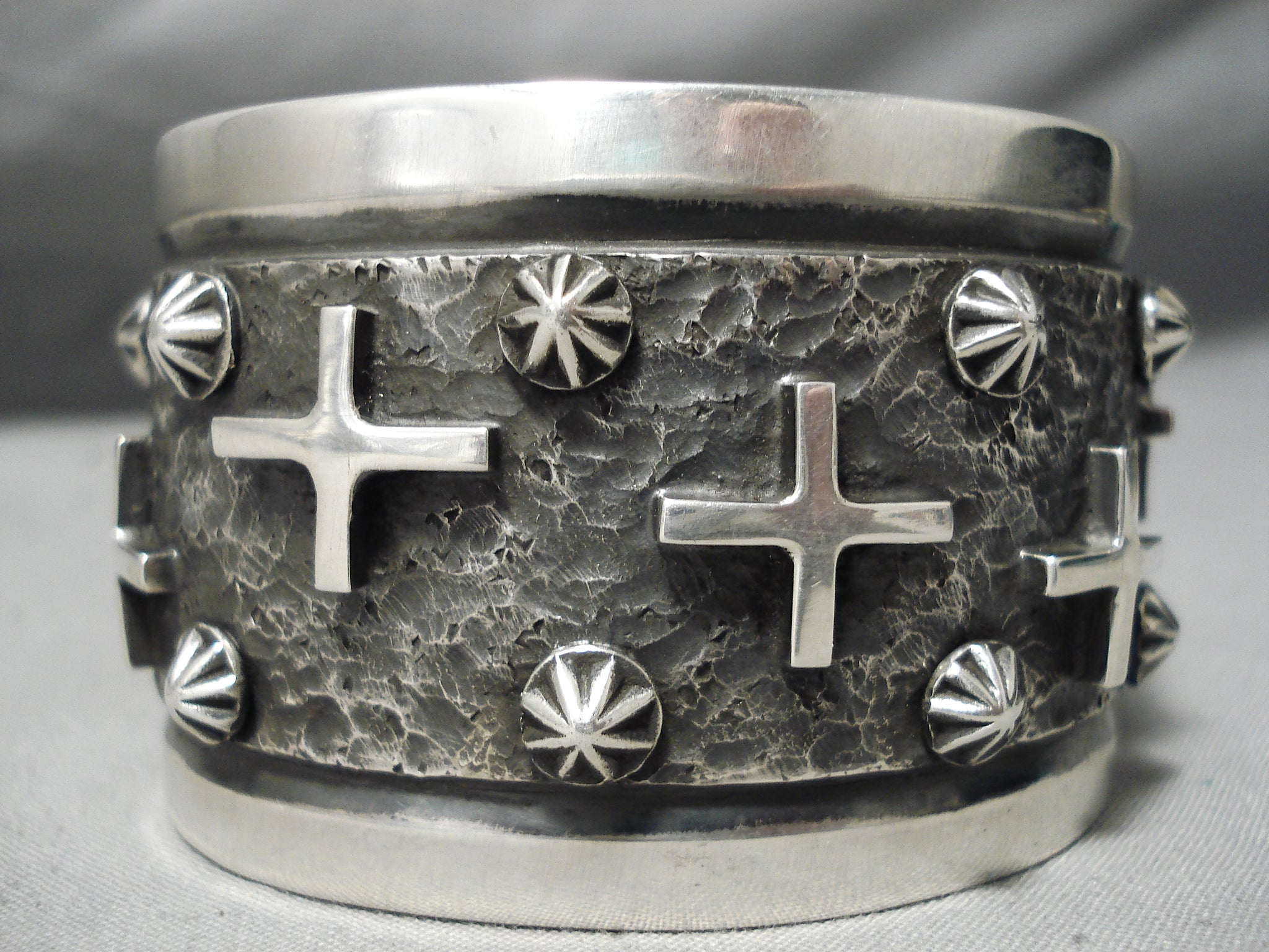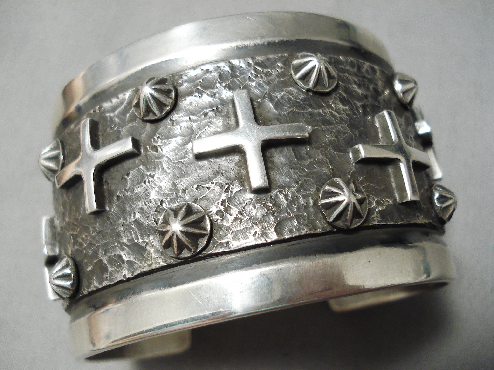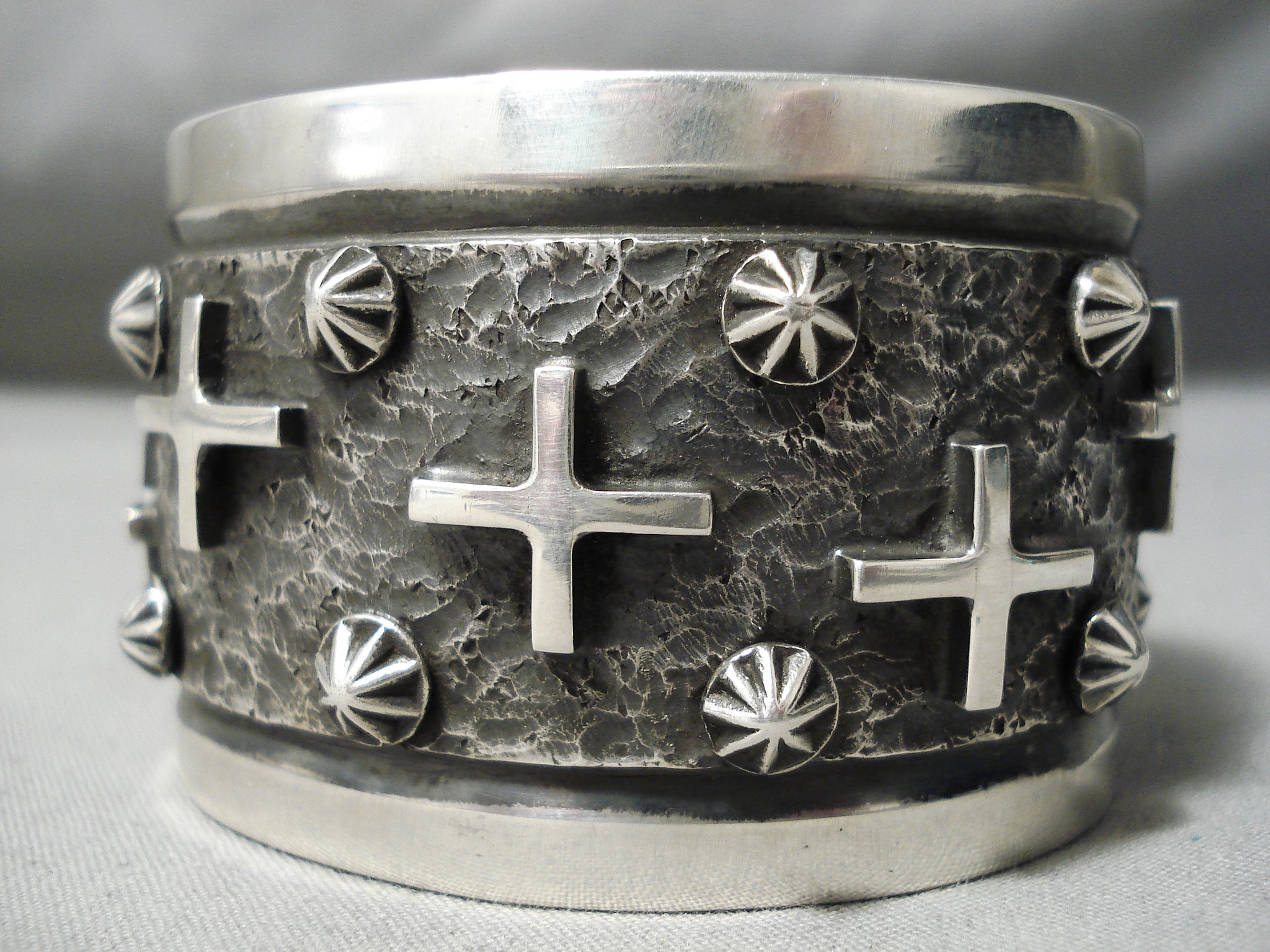 Native American Important Huge Ron Willie Cross Christian Sterling Silver Bracelet