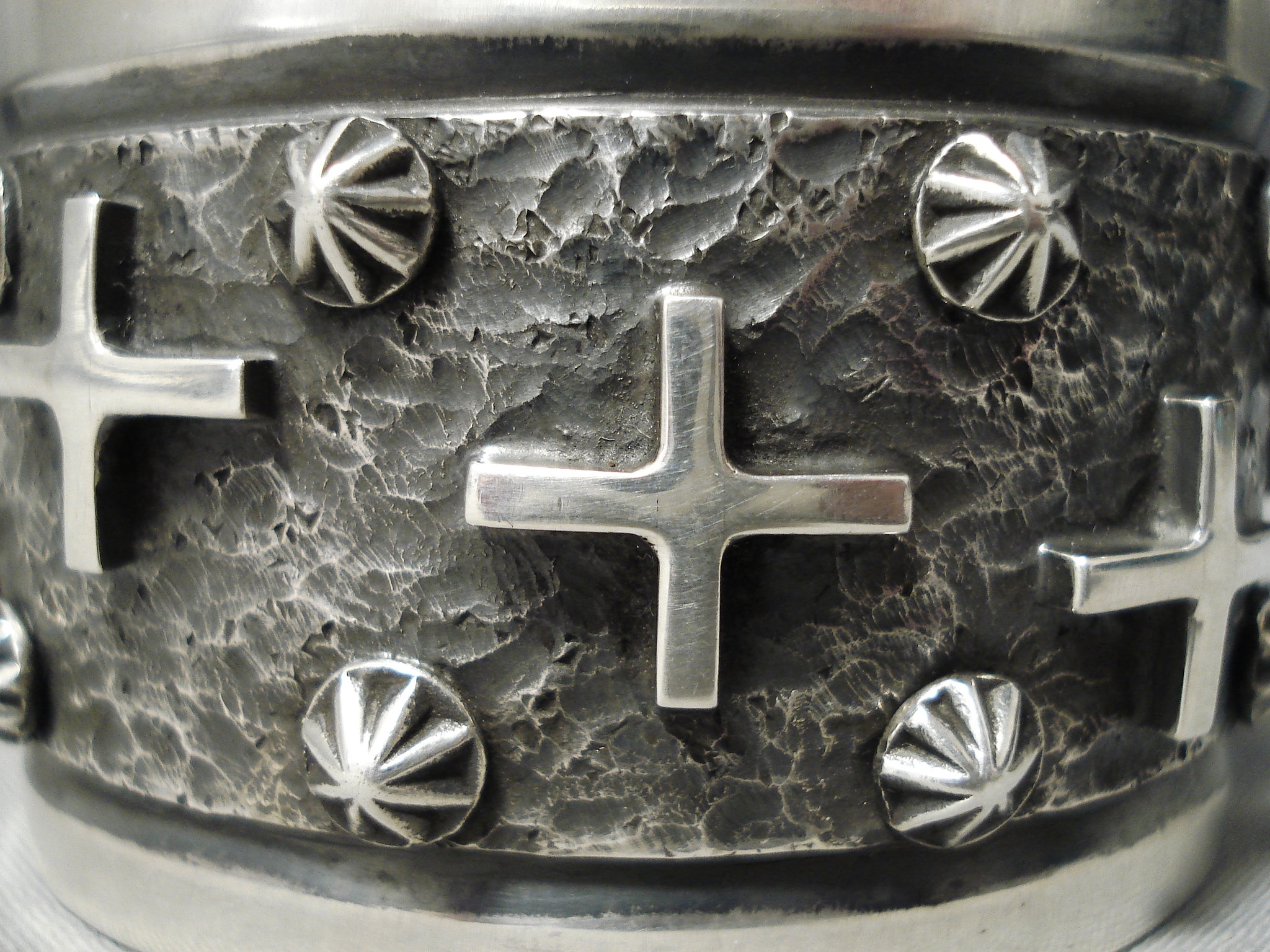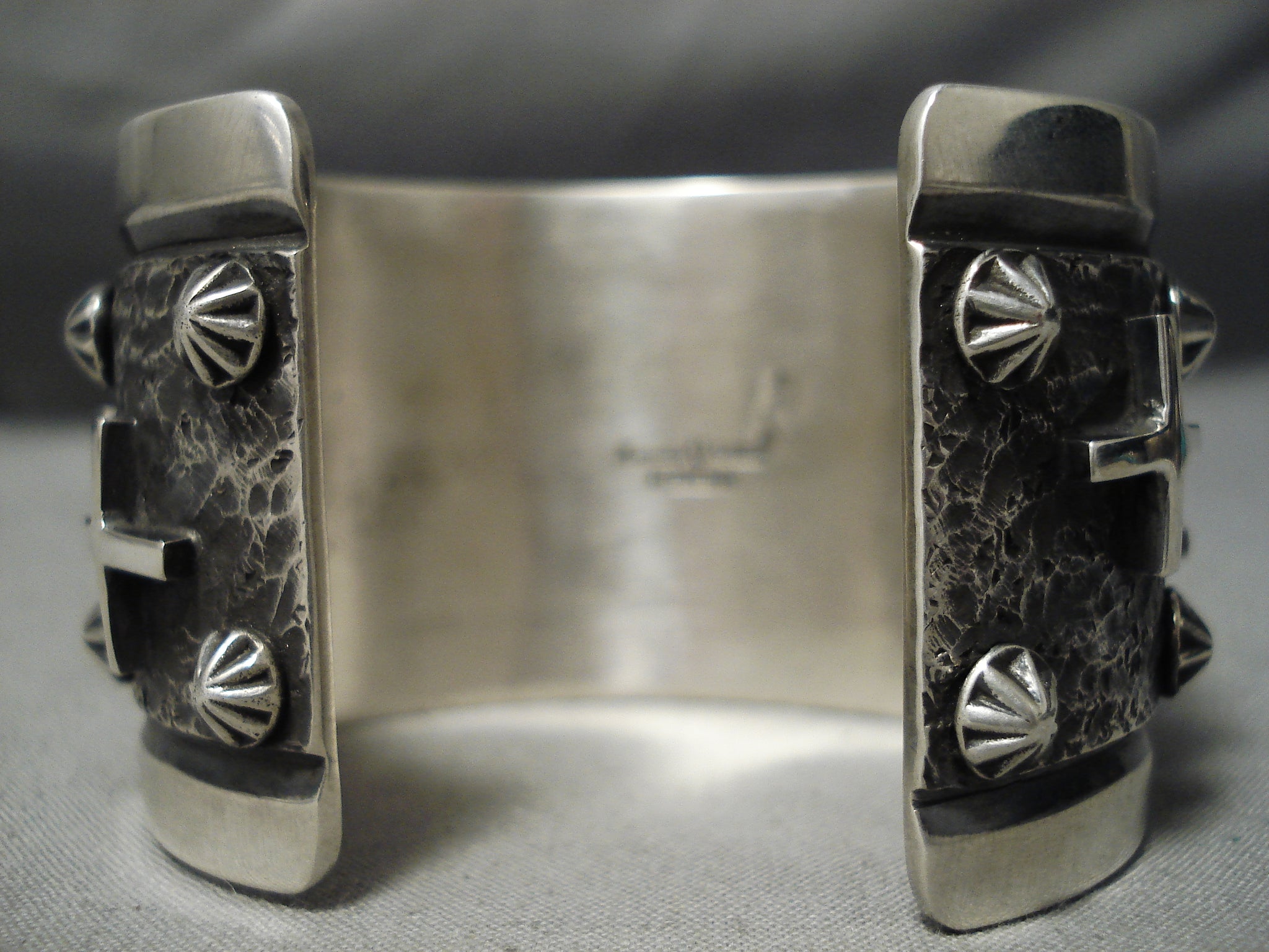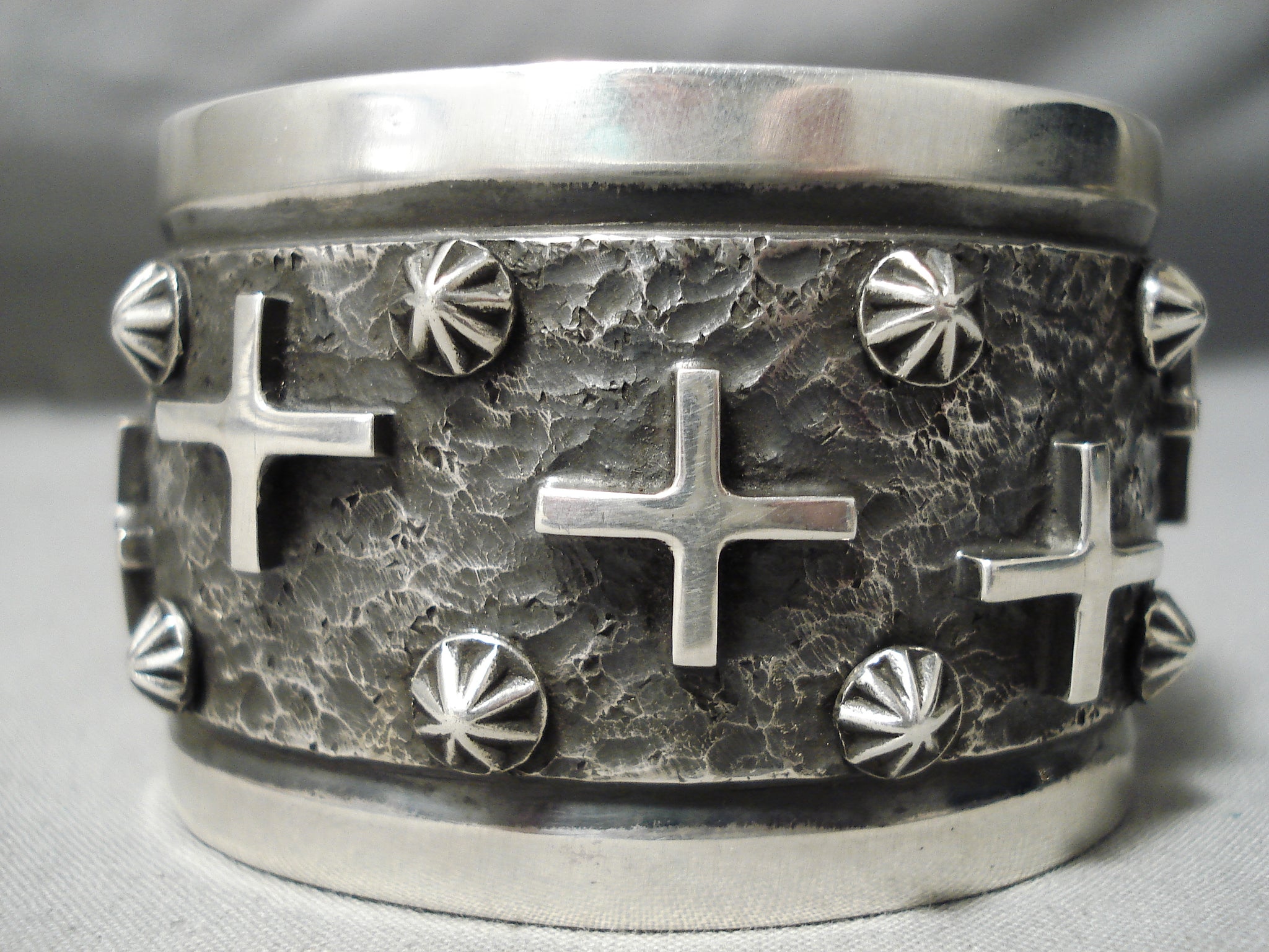 Native American Important Huge Ron Willie Cross Christian Sterling Silver Bracelet