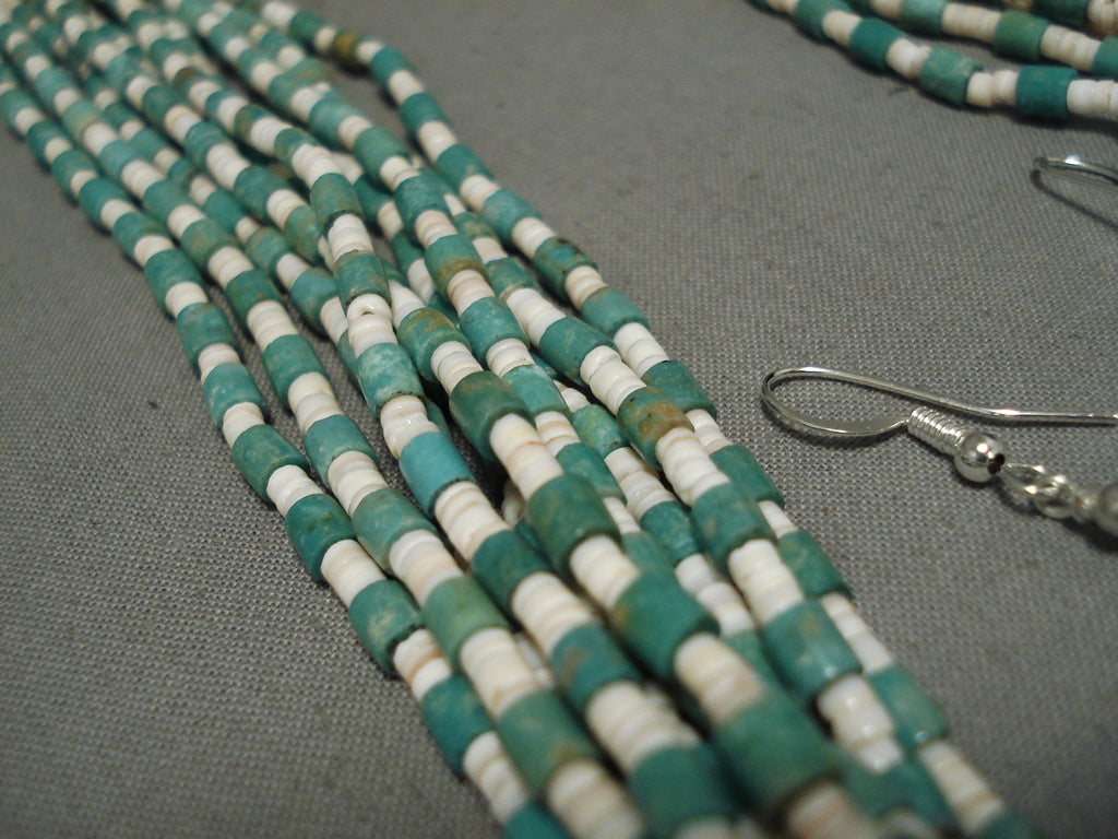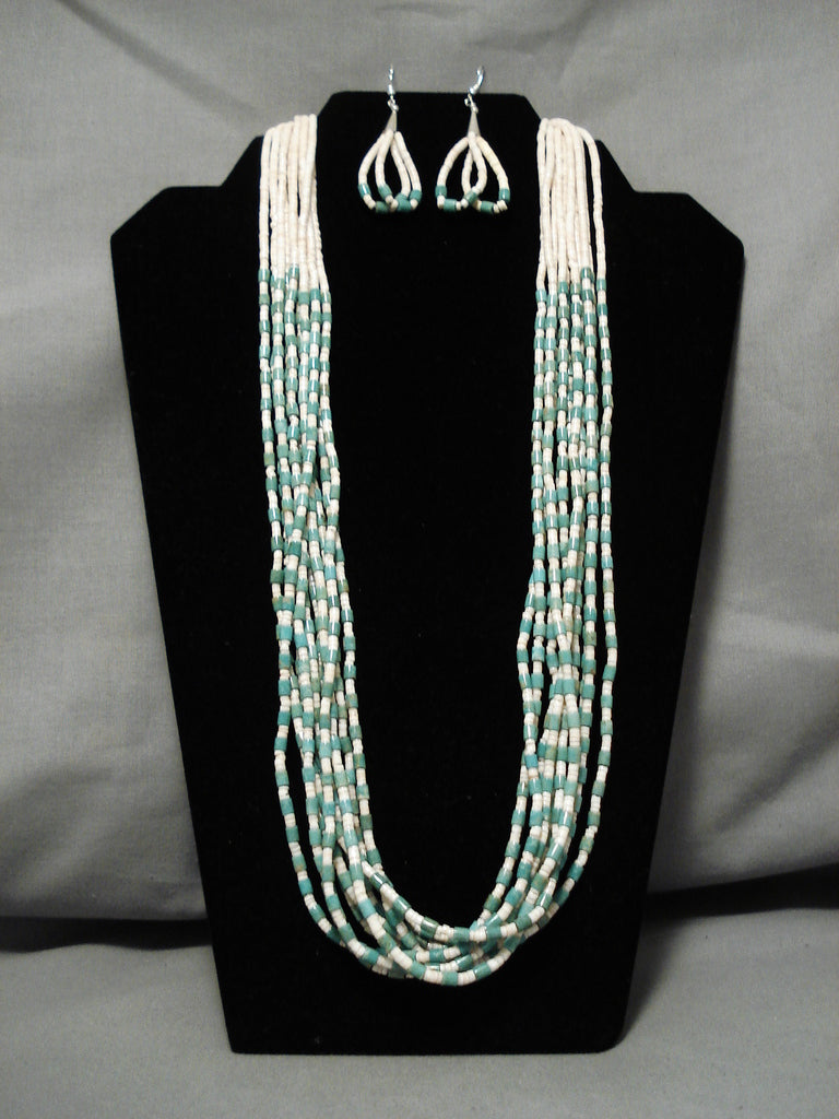 Native American Important Jose Coriz Santo Domingo Sterling Silver Green Turquoise Necklace