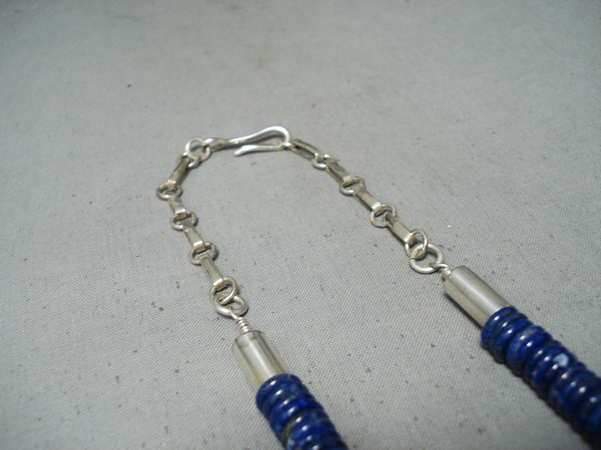 Native American Important Pat Edaaki Lapis Turquoise Sterling Silver Inlay Necklace