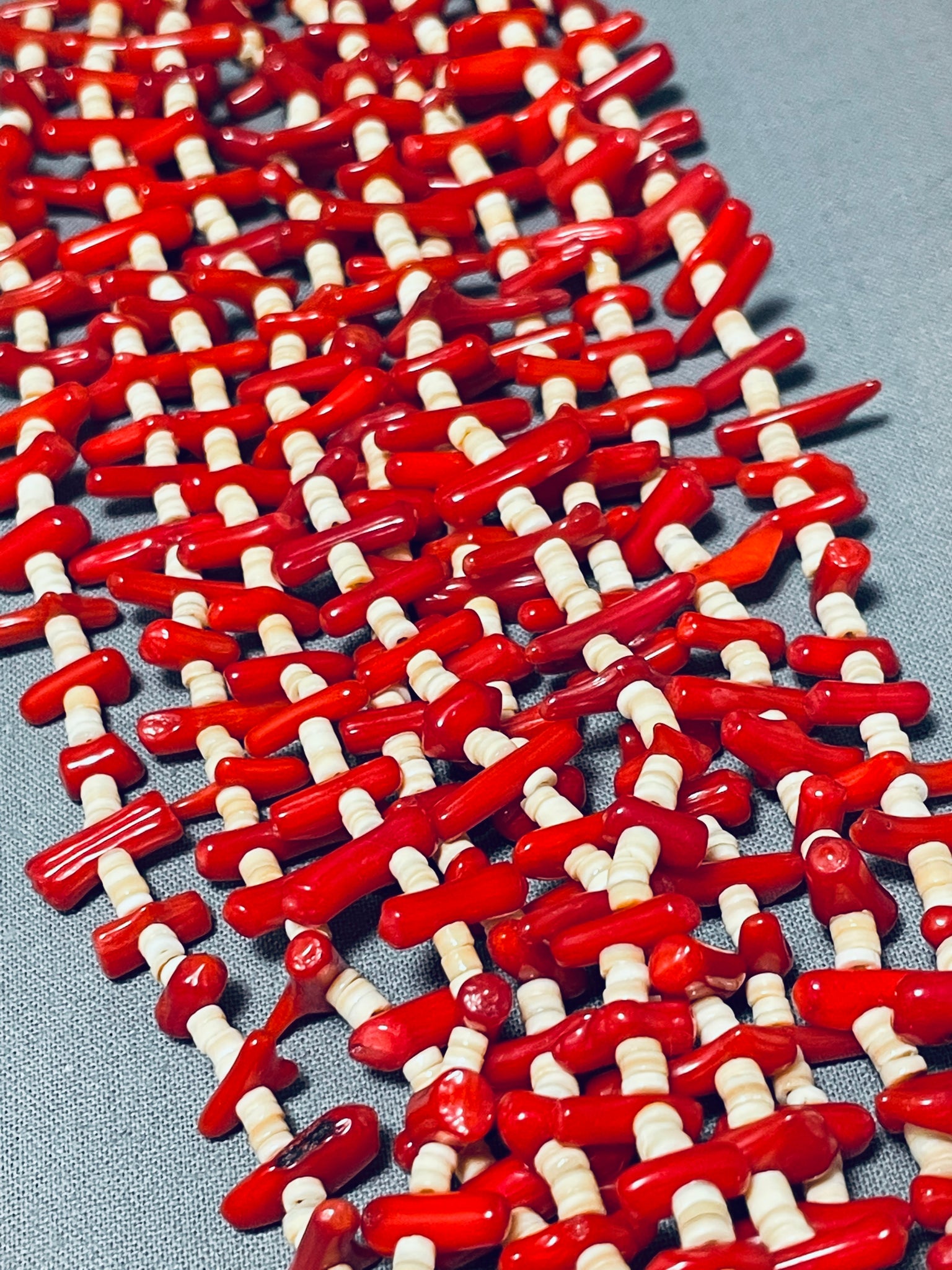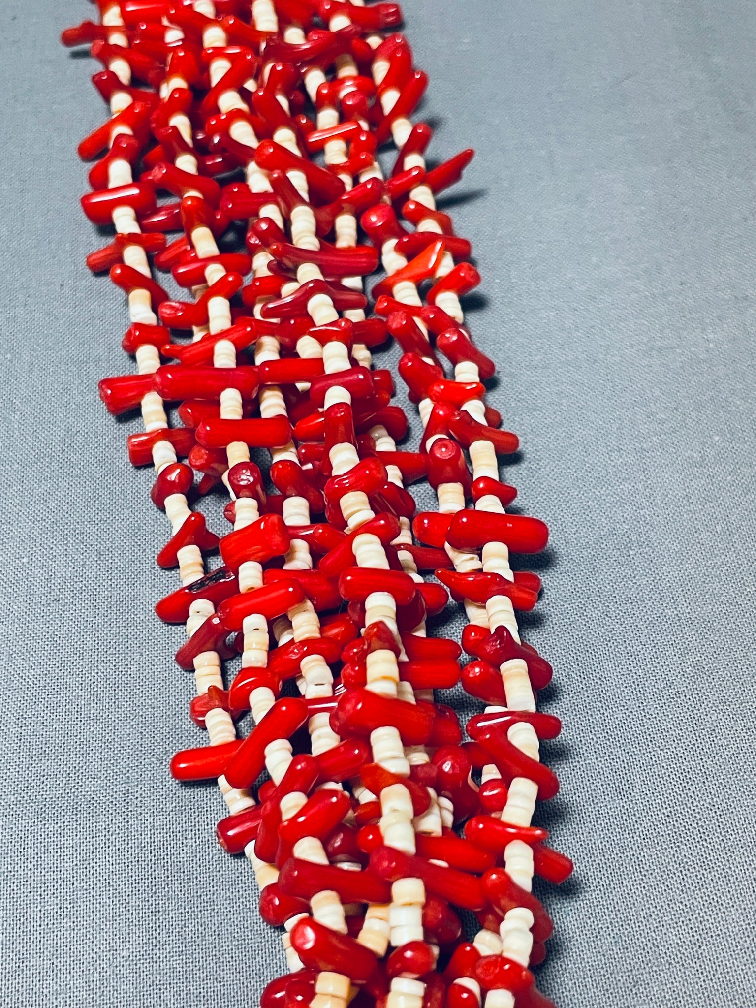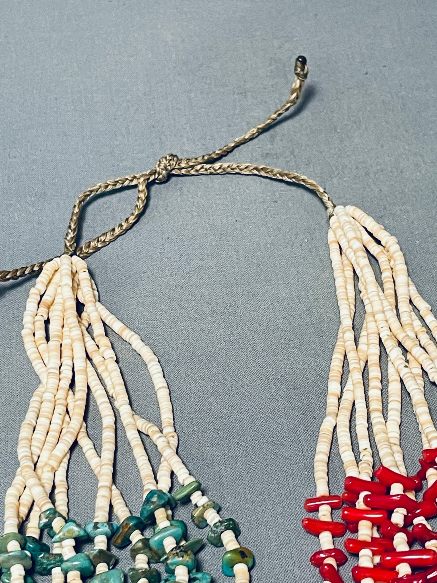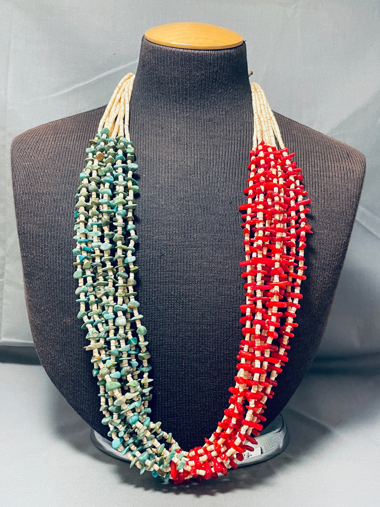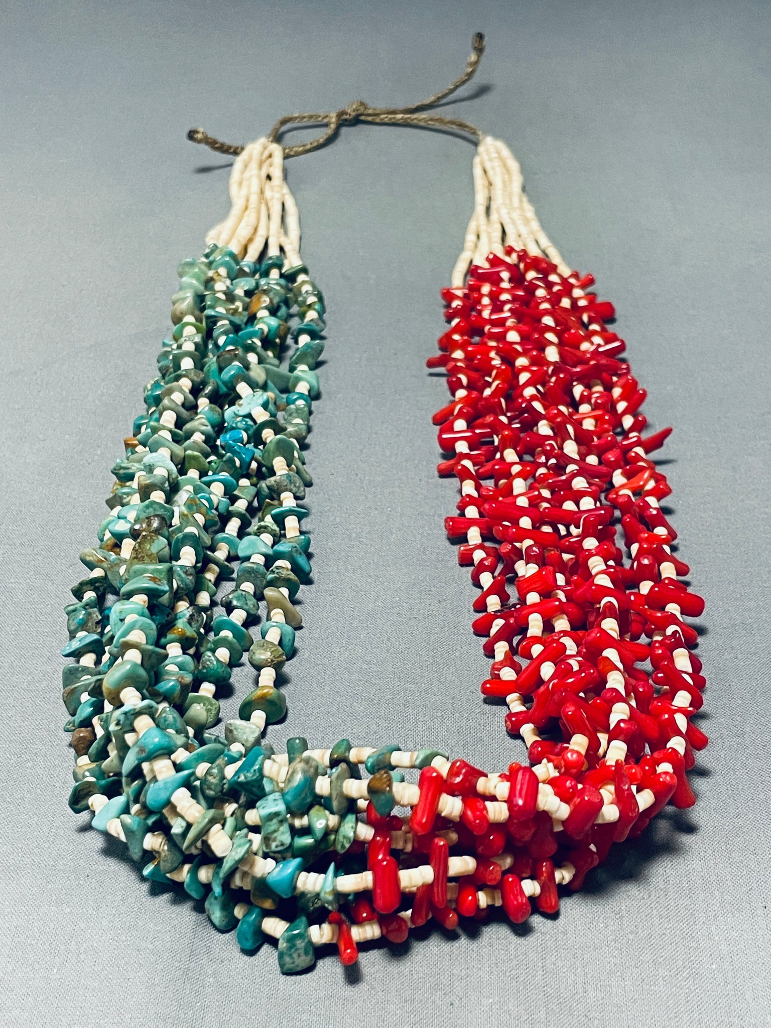 Native American Important Rye Whitegoat Half And Half Turquoise Coral Necklace