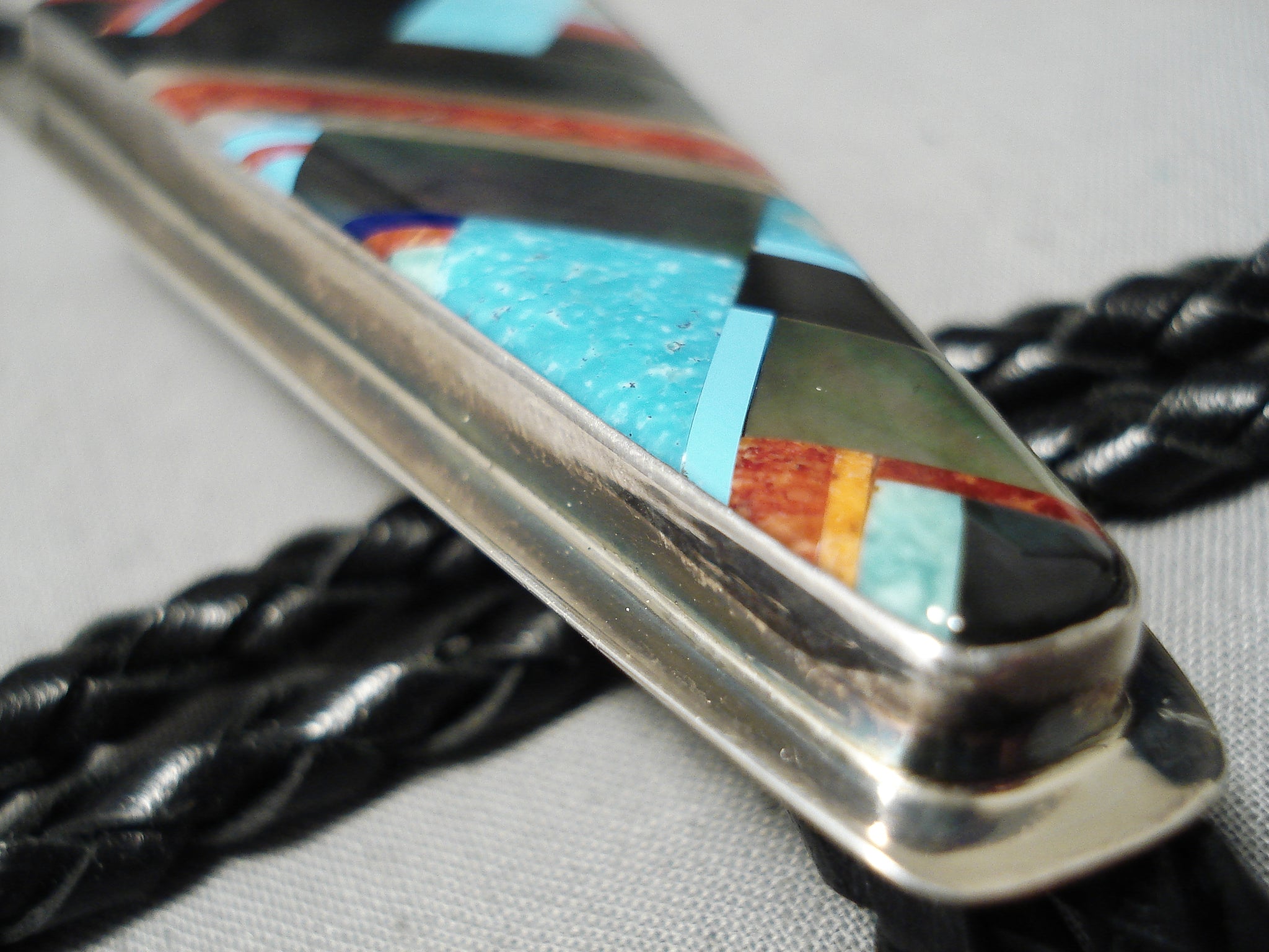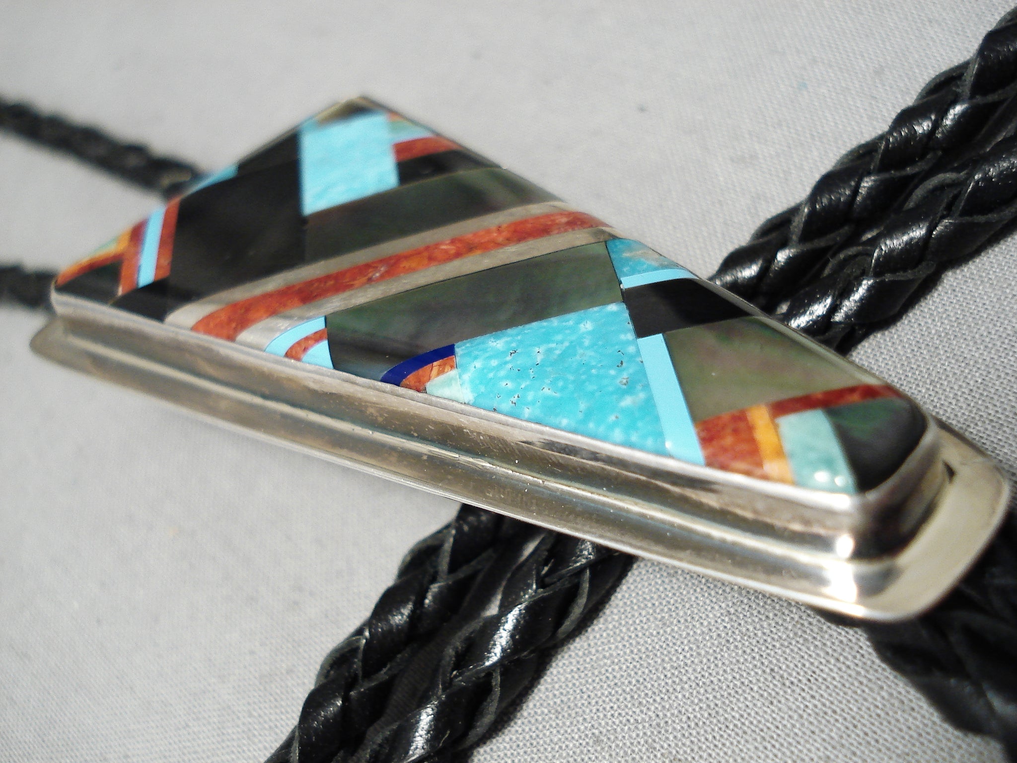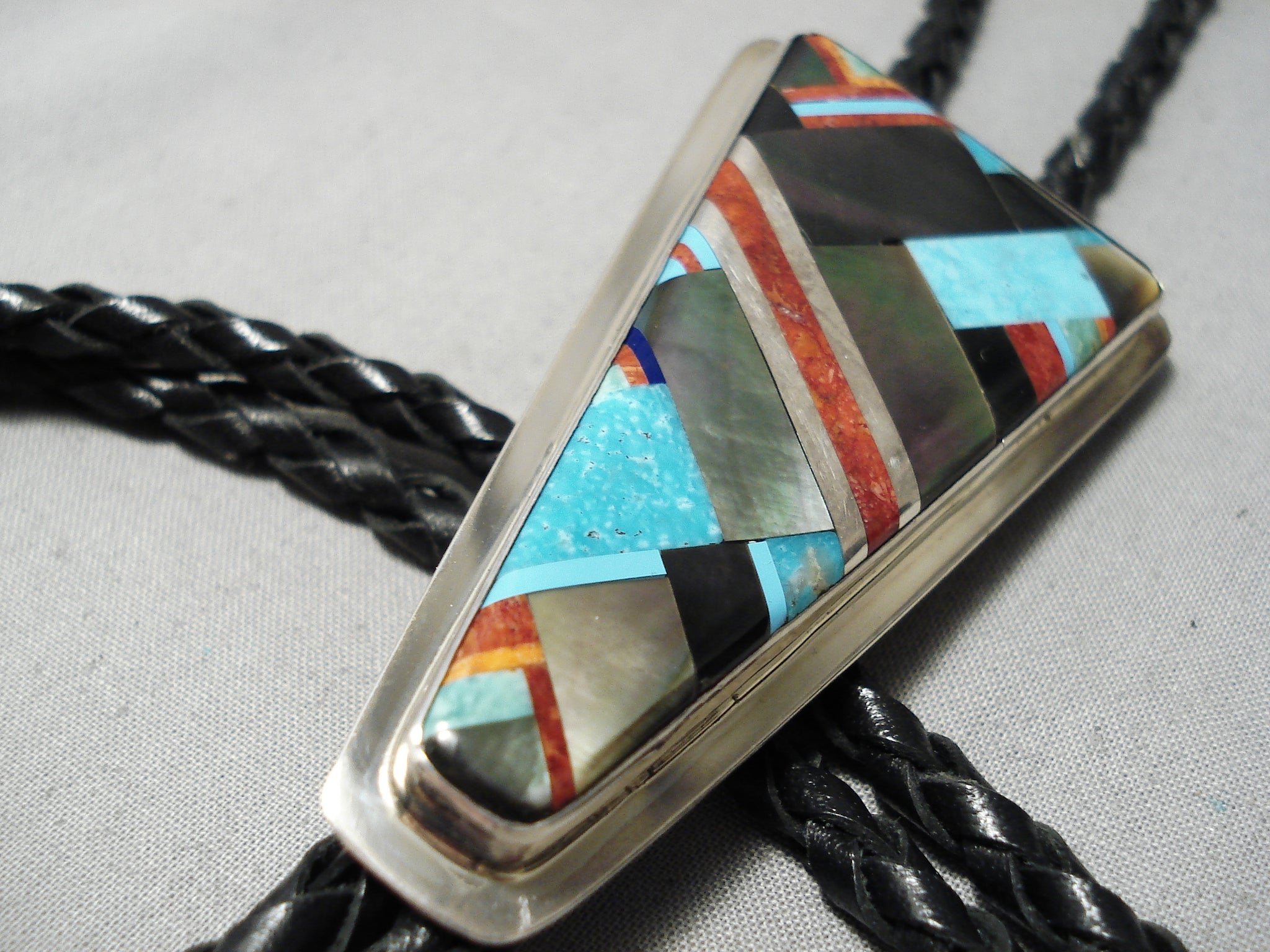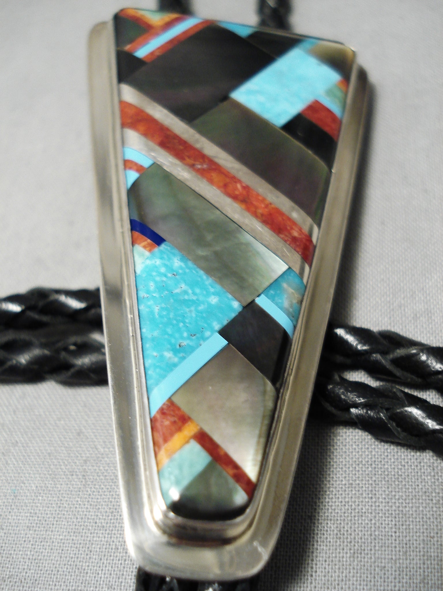 Native American Important Santo Domingo Dan Coriz Turquoise Sterling Silver Bolo Tie