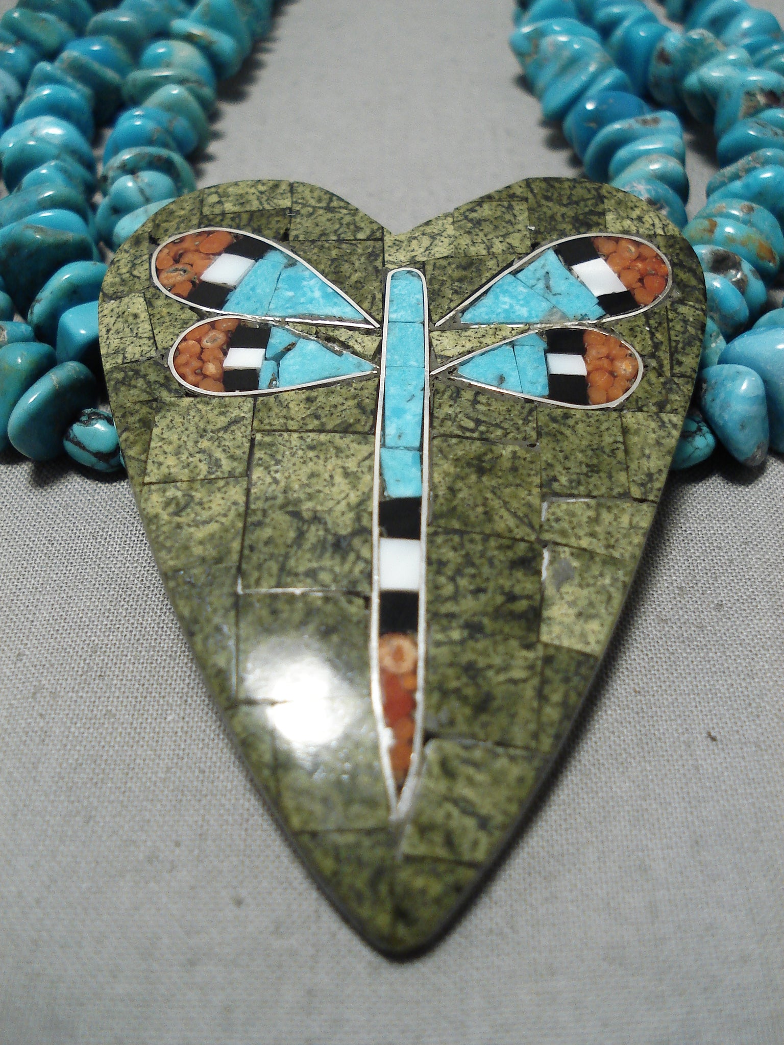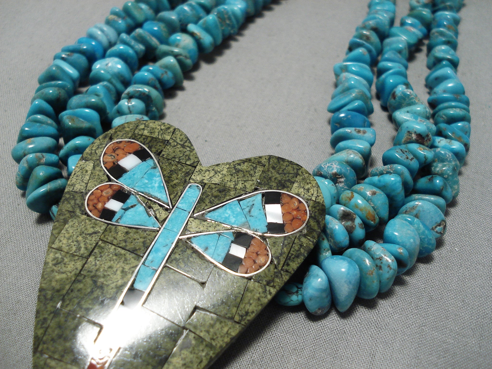 Native American Important Santo Domingo Rosetta Turquoise Inlay Sterling Silver Necklace