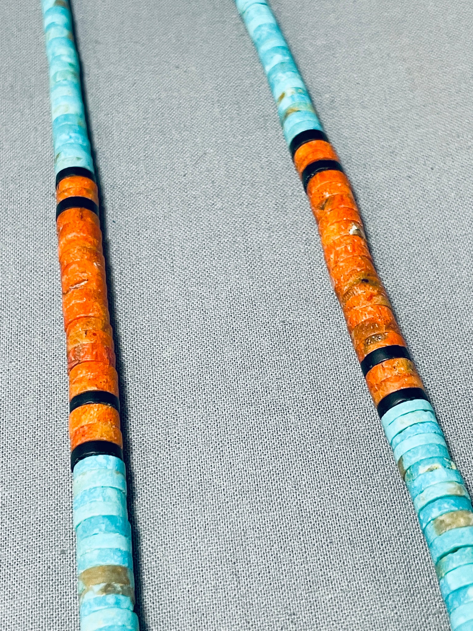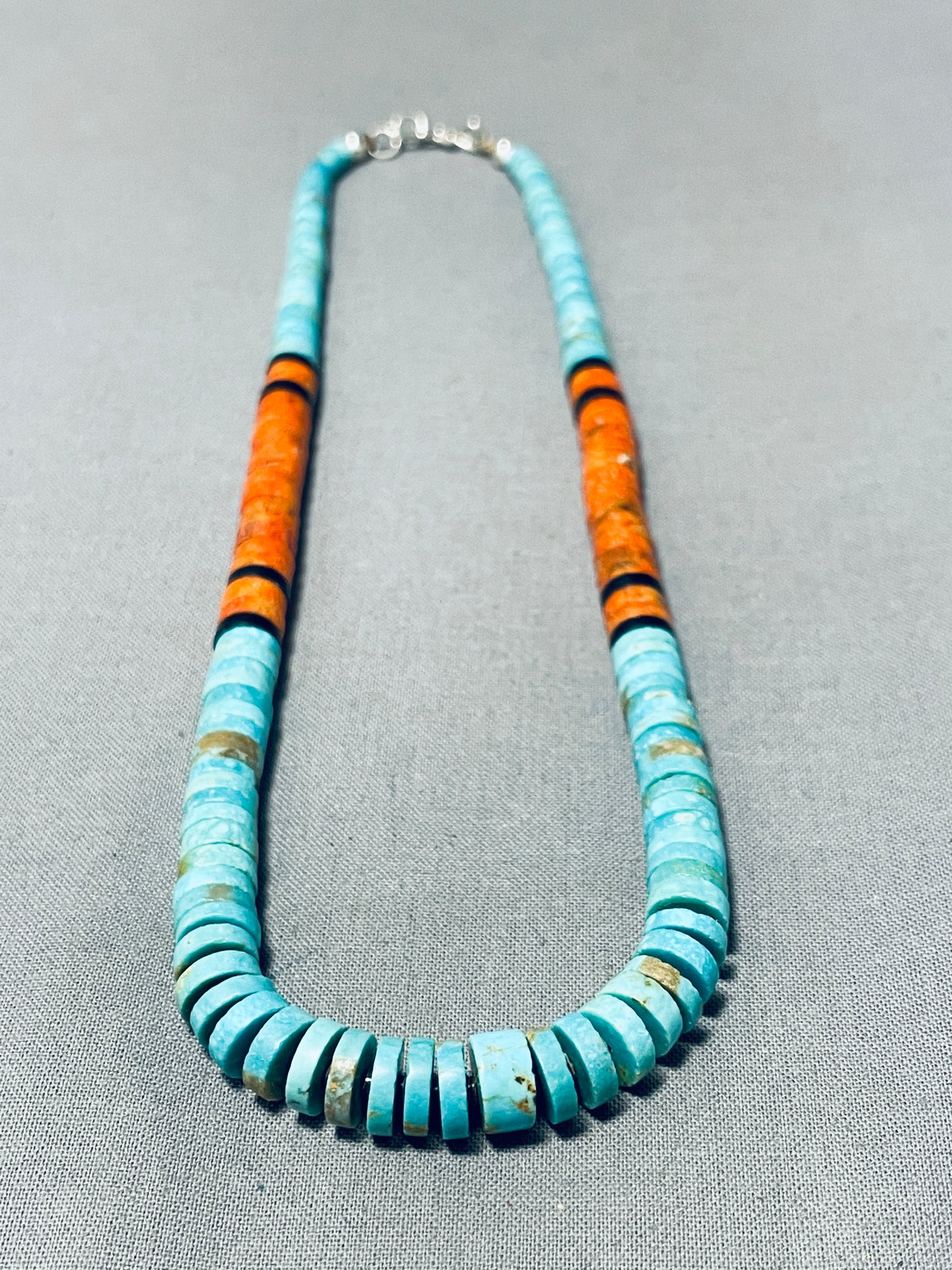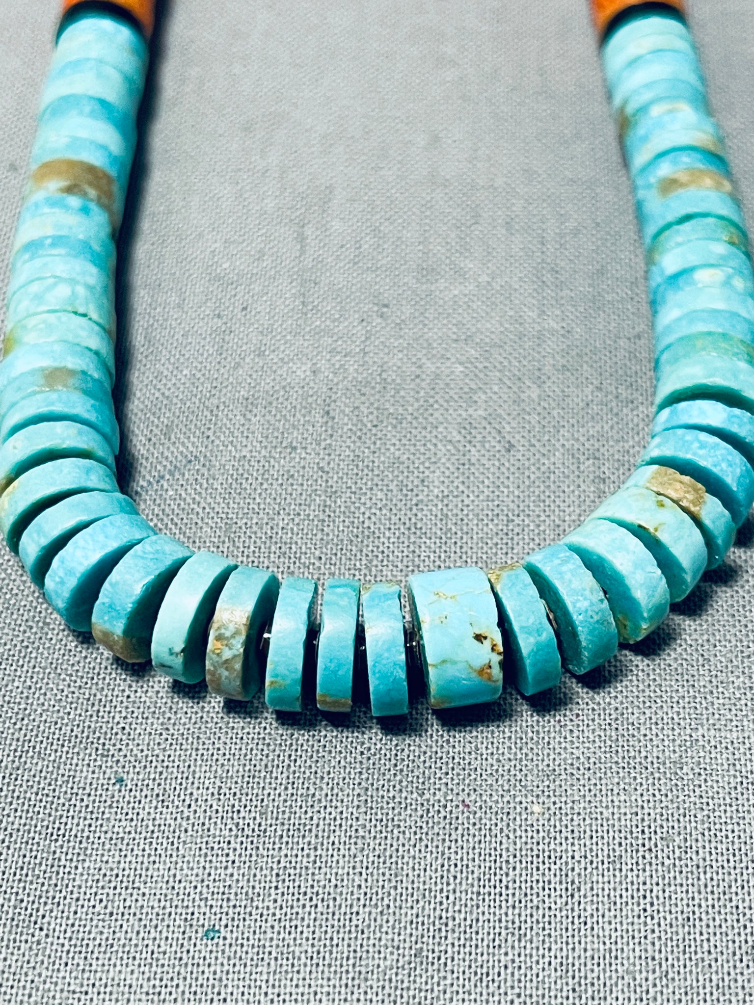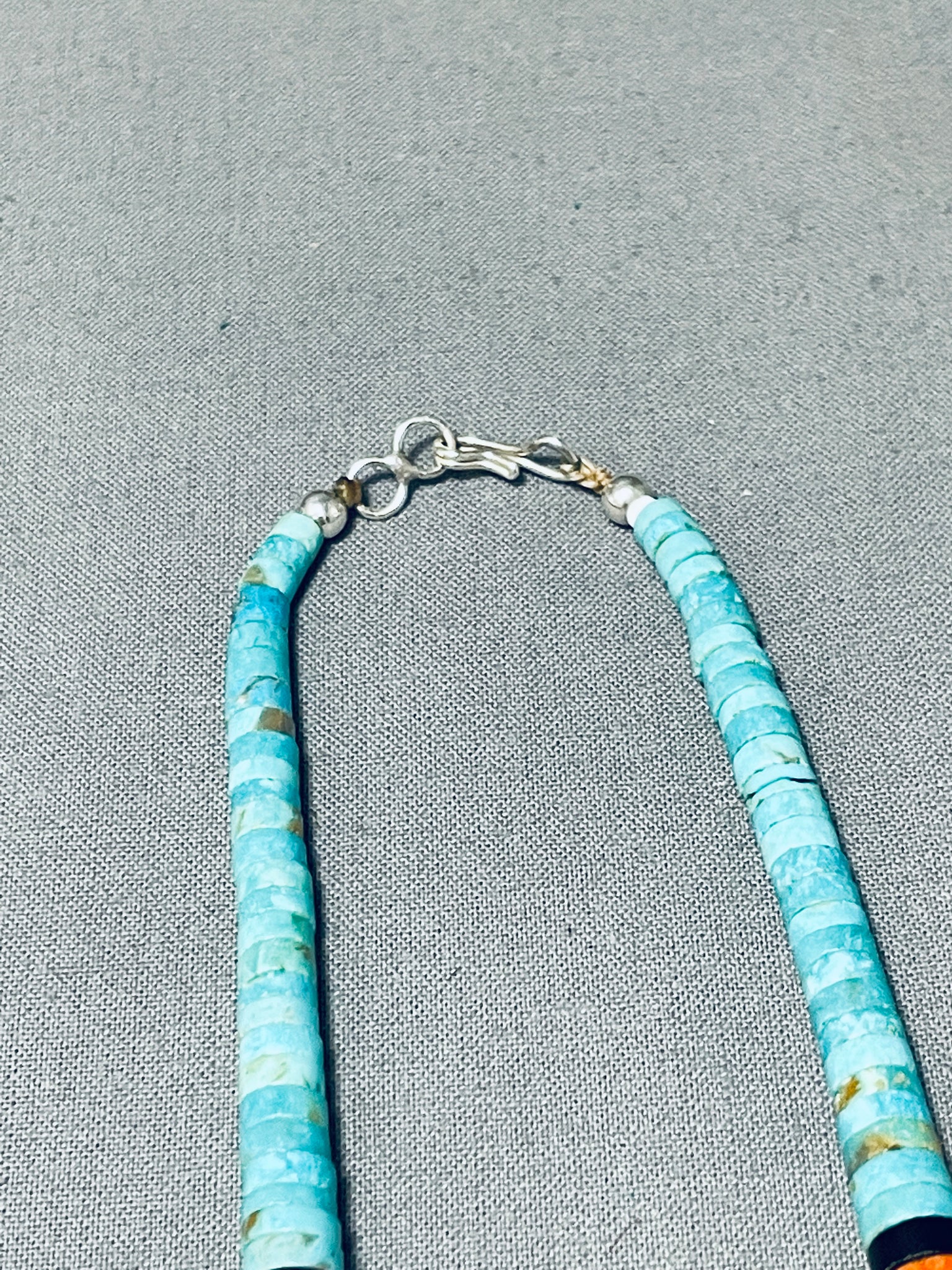 Native American Impressive Vintage Santo Domingo Turquoise Sterling Silver Necklace