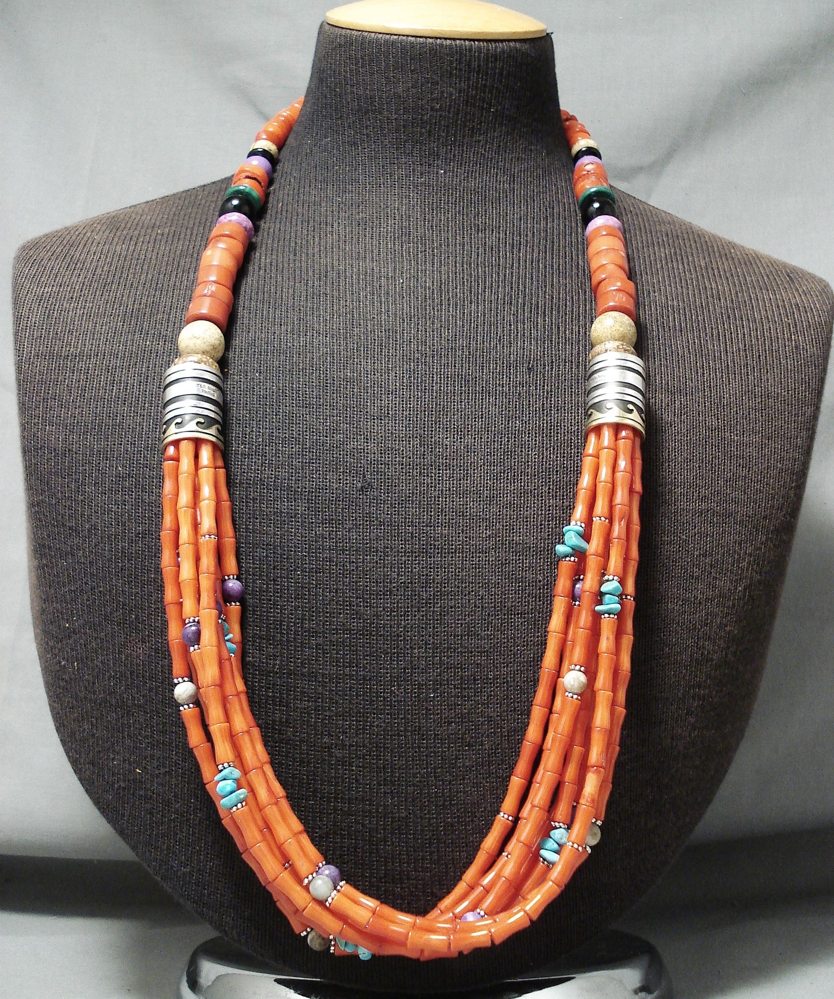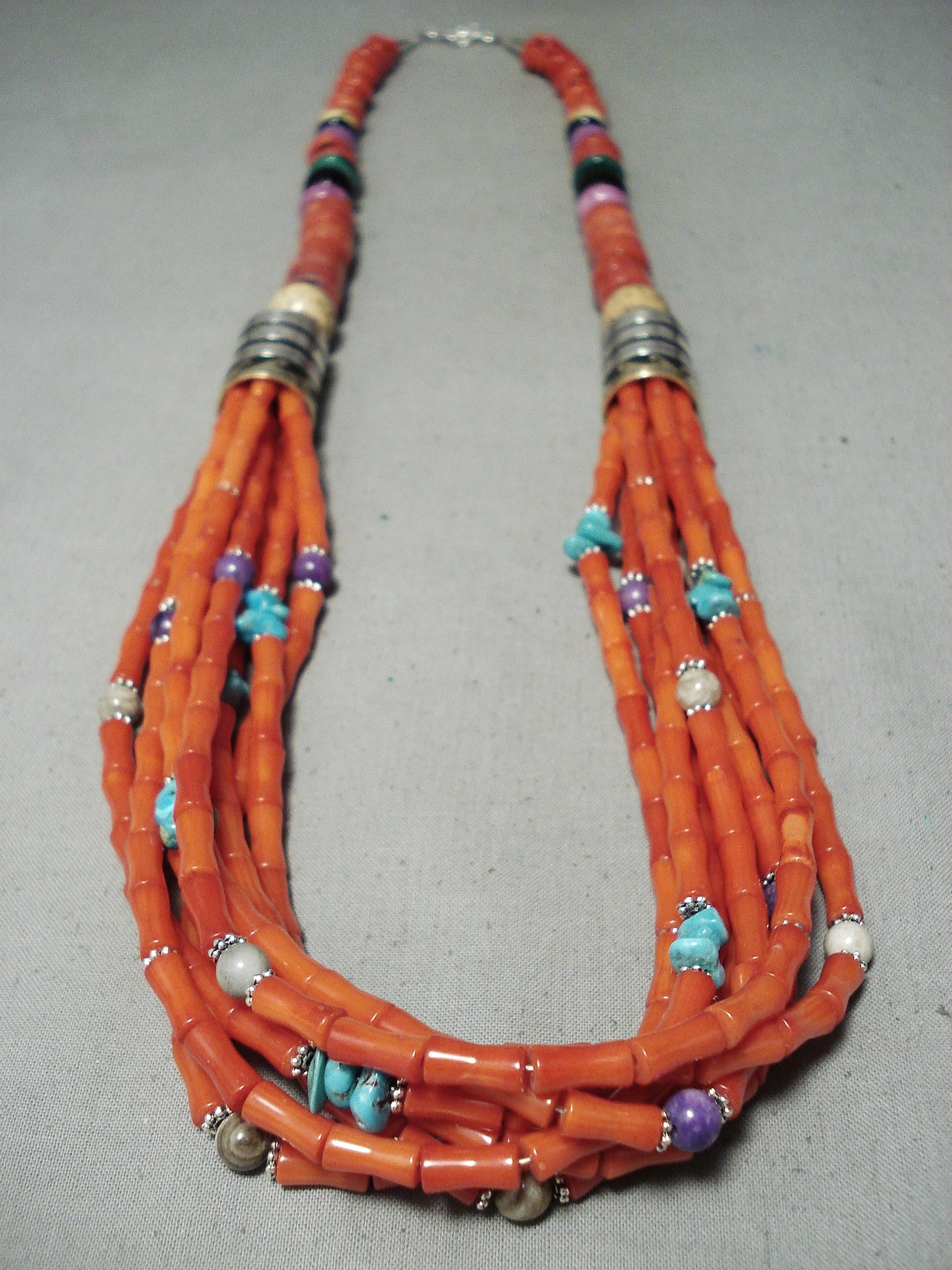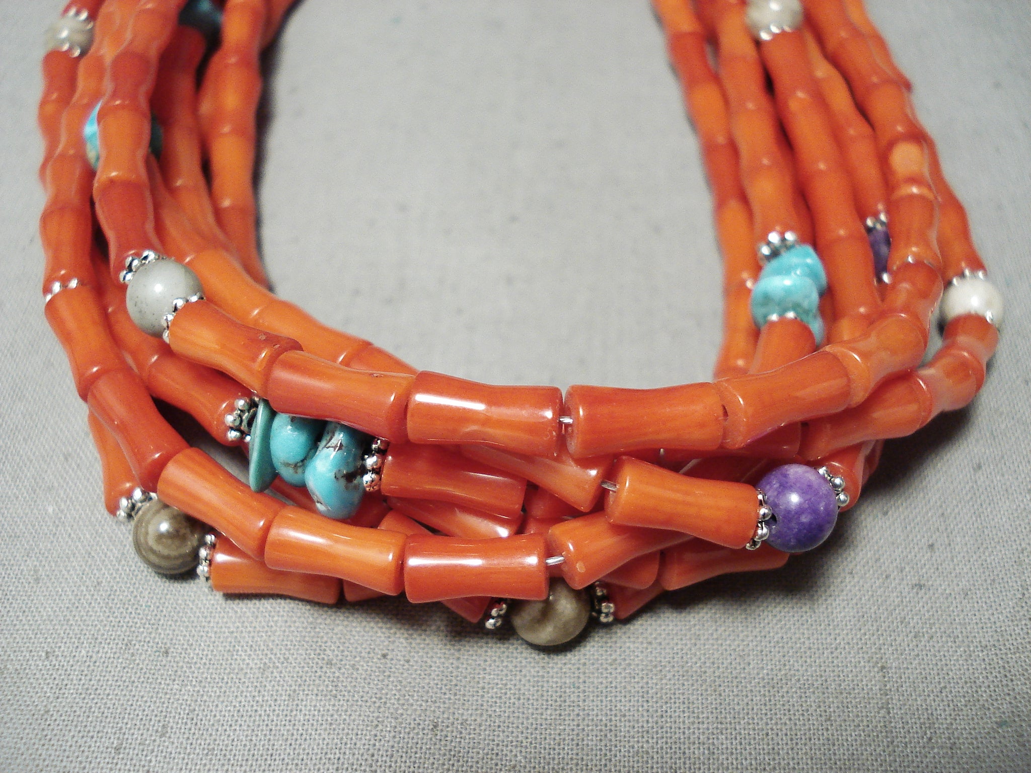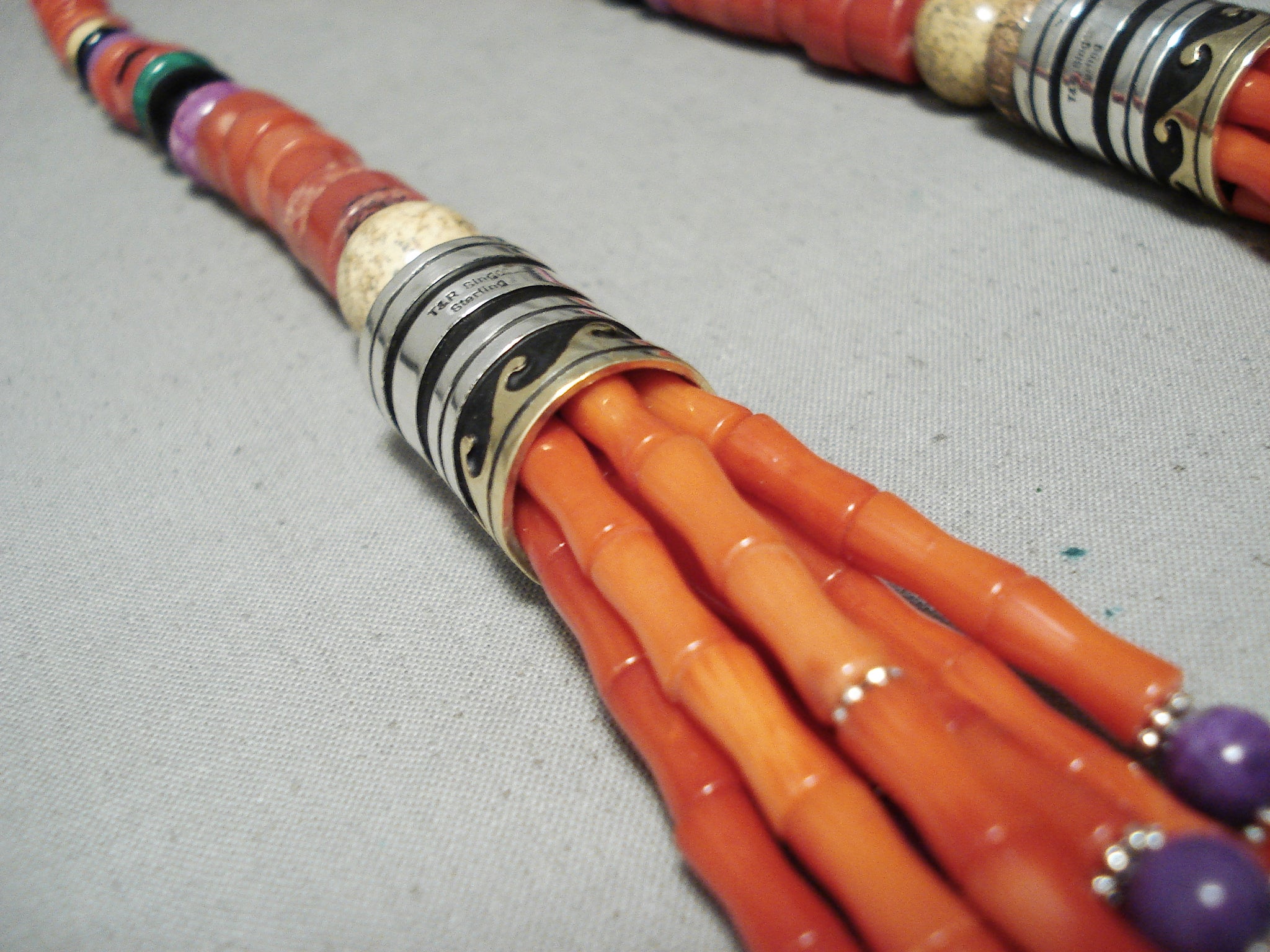 Native American Incredible Singer Coral Turquoise Sterling Silver Necklace