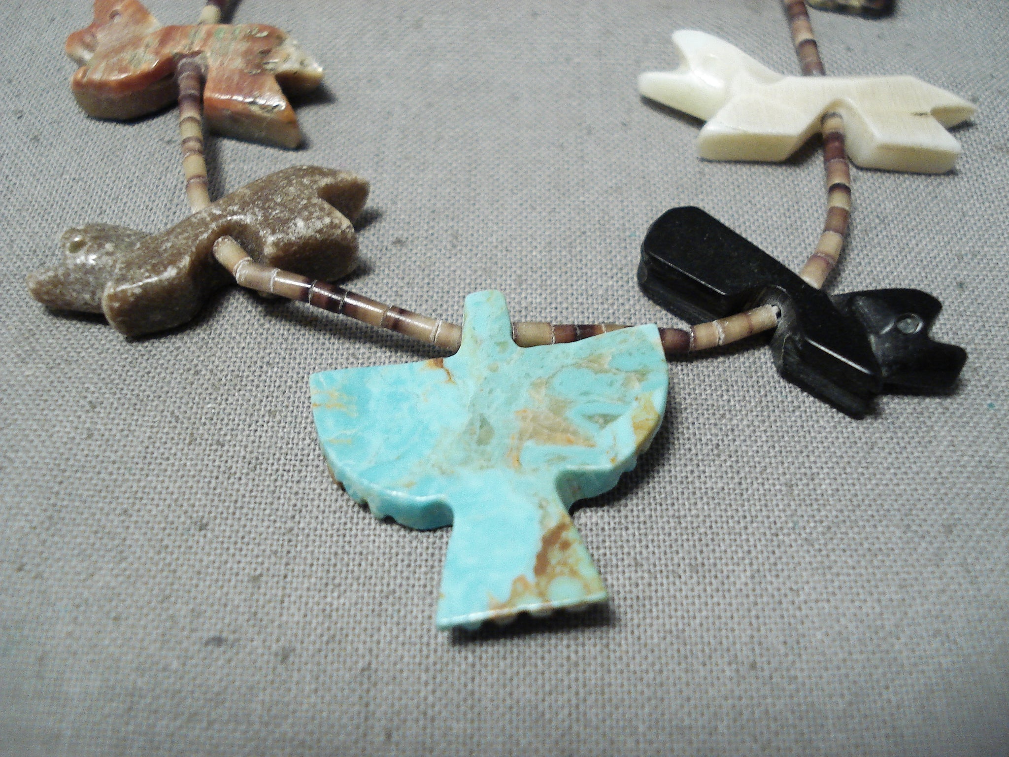 Native American Incredible Vintage Santo Domingo #8 Turquoise Sterling Silver Bird Necklace