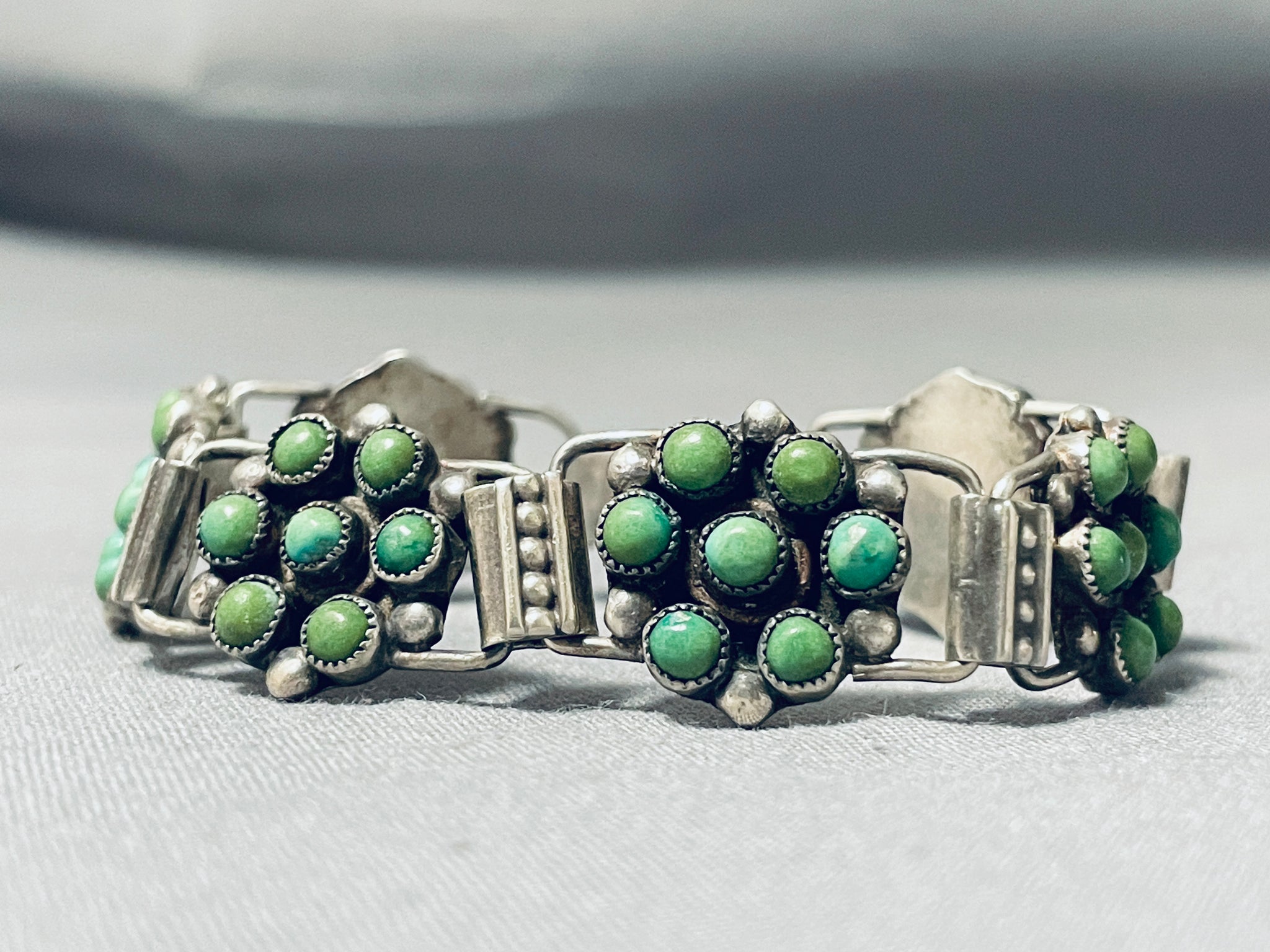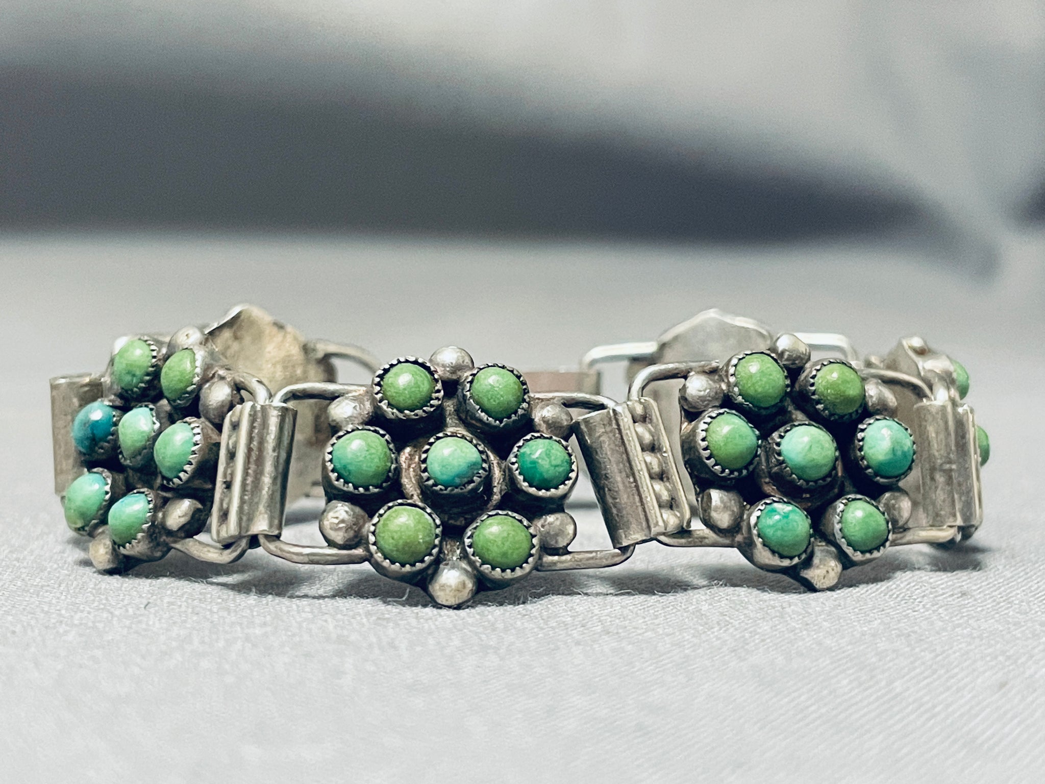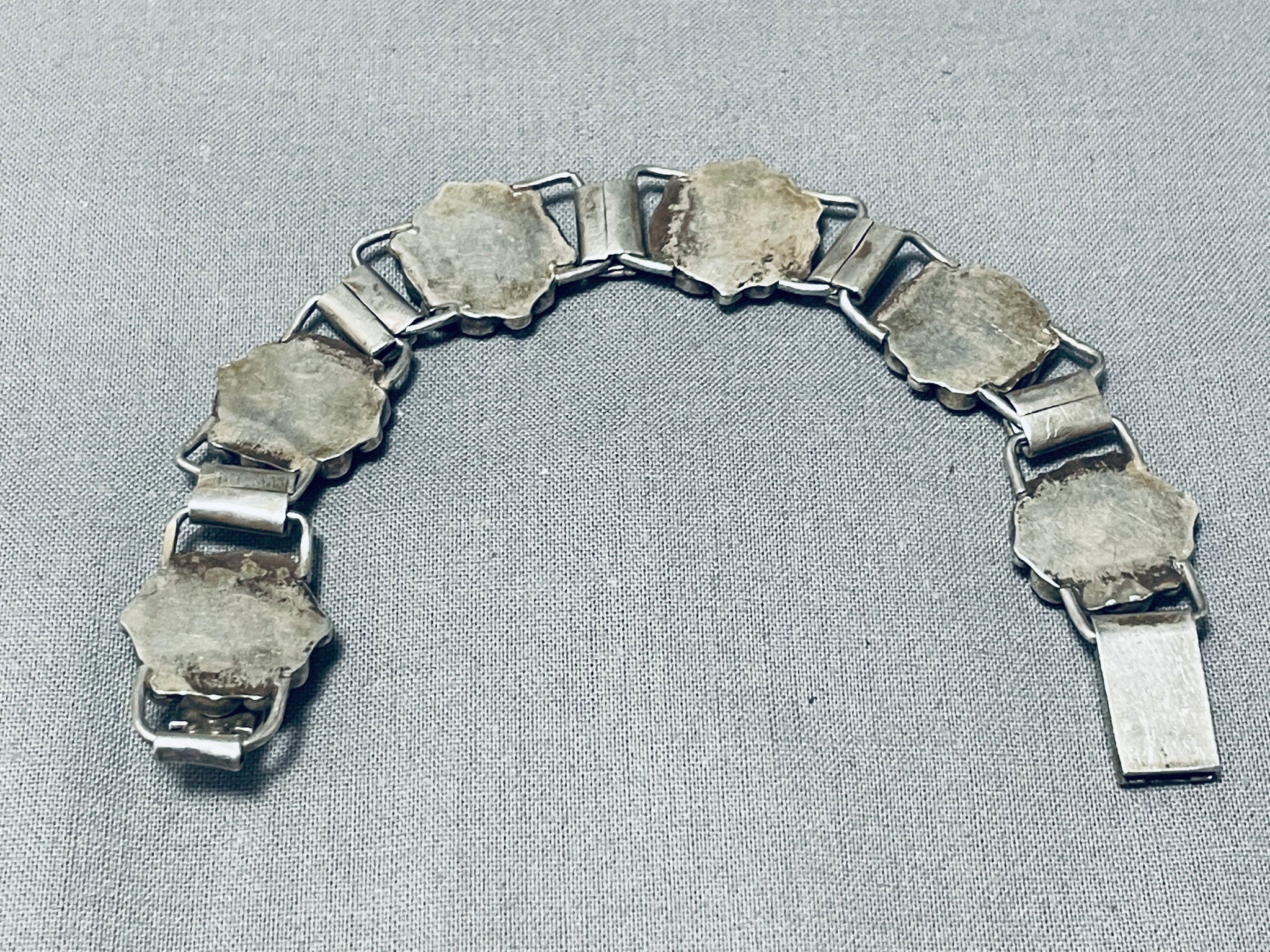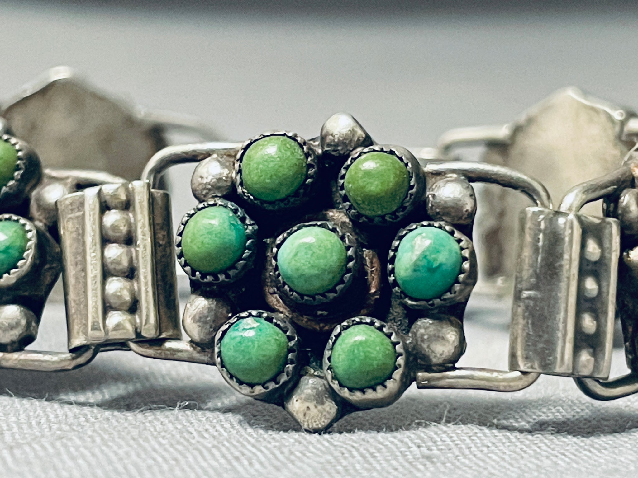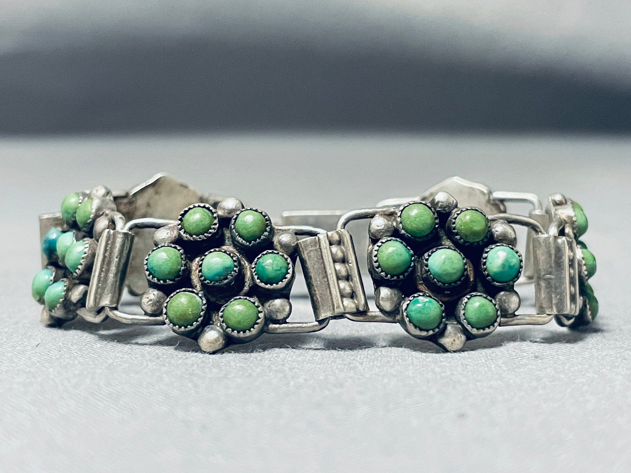 Native American Link Cerrillos Turquoise Vintage Navajo Sterling Silver Chain Bracelet