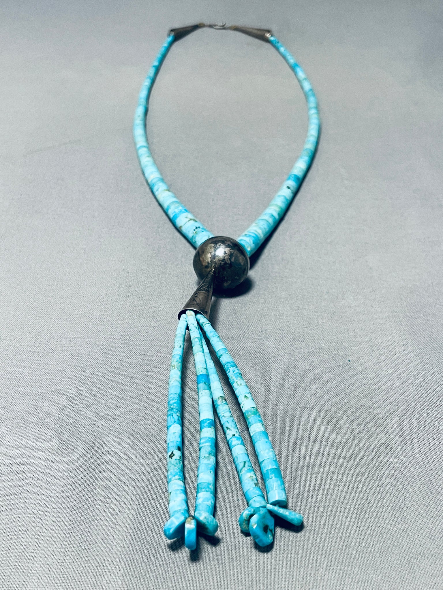 Native American Majestic Longer Vintage Santo Domingo Turquoise Heishi Sterling Silver Necklace