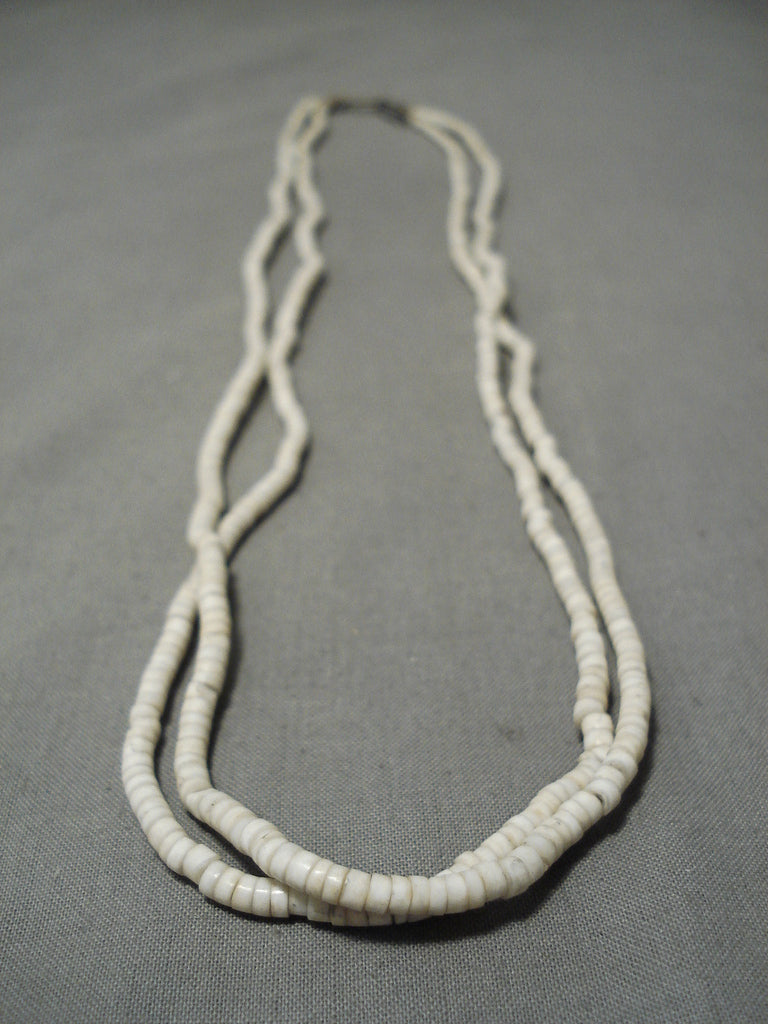 Native American Marvelous Vintage Santo Domingo Rare Early Gypsum Sterling Silver Necklace