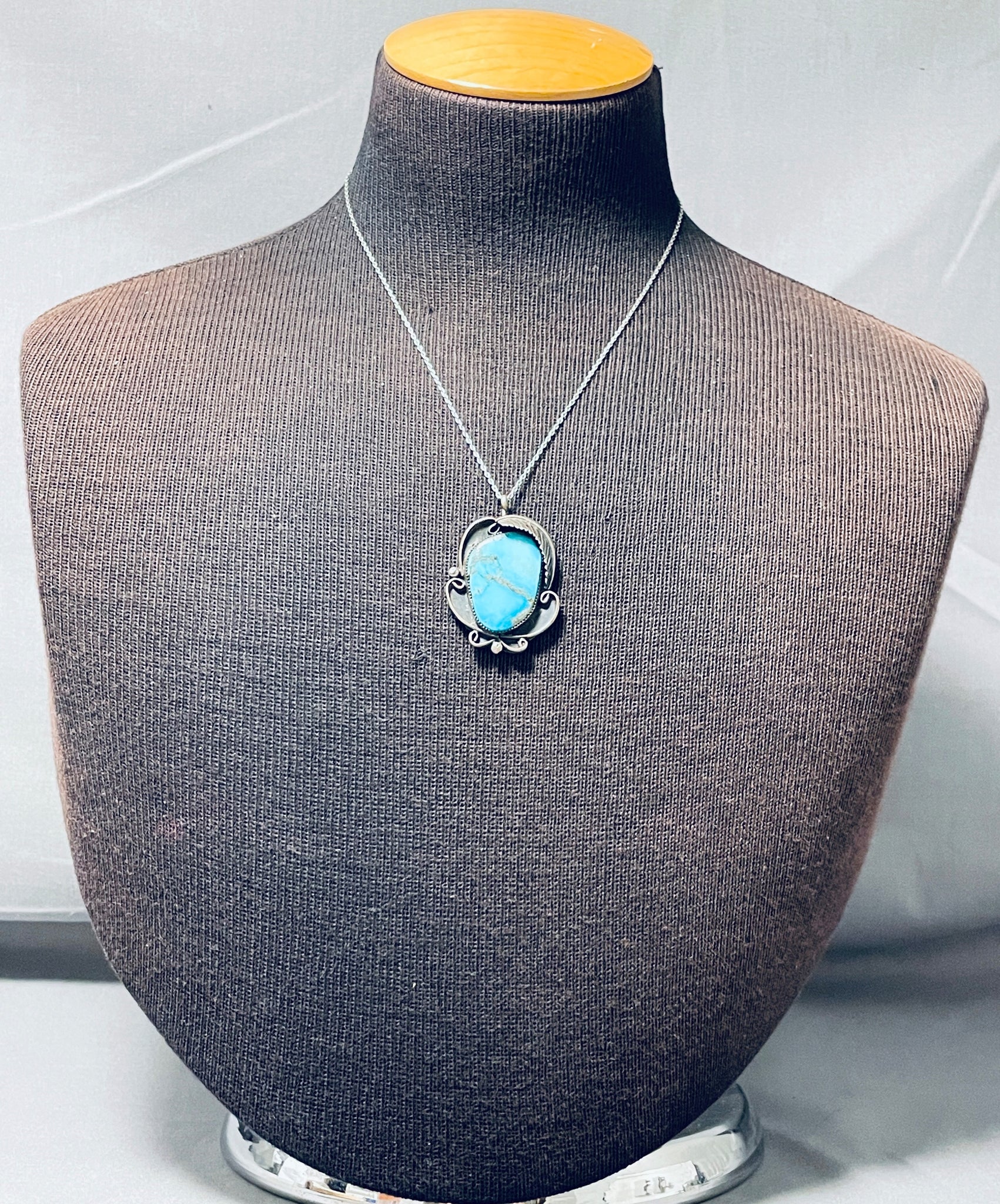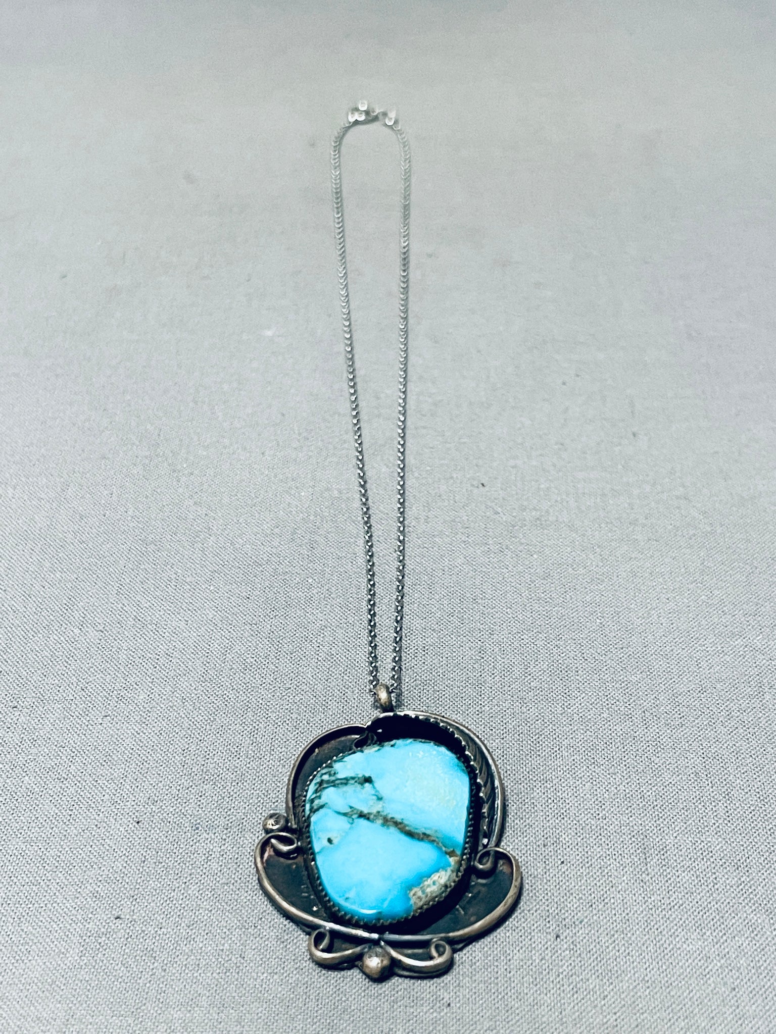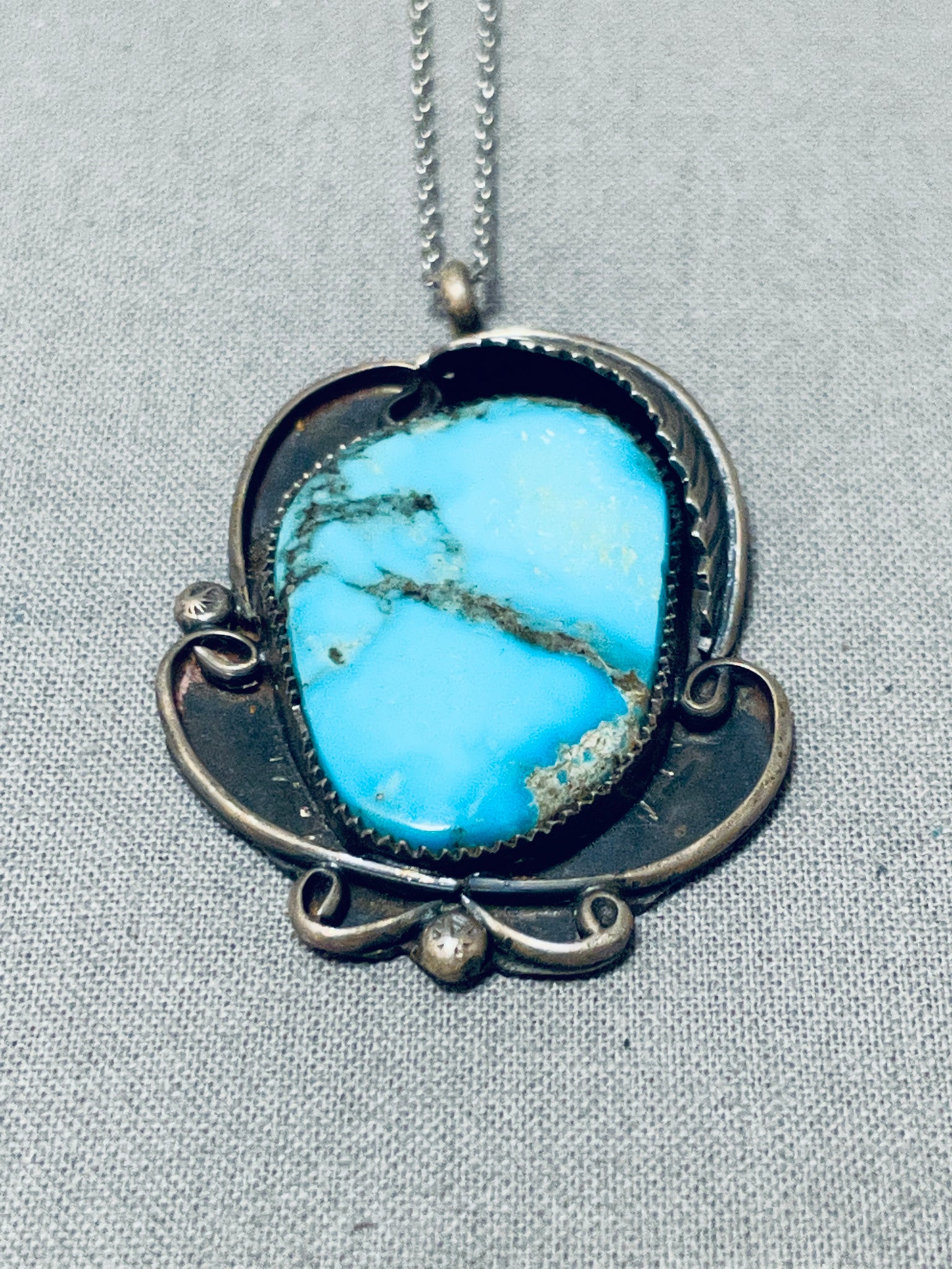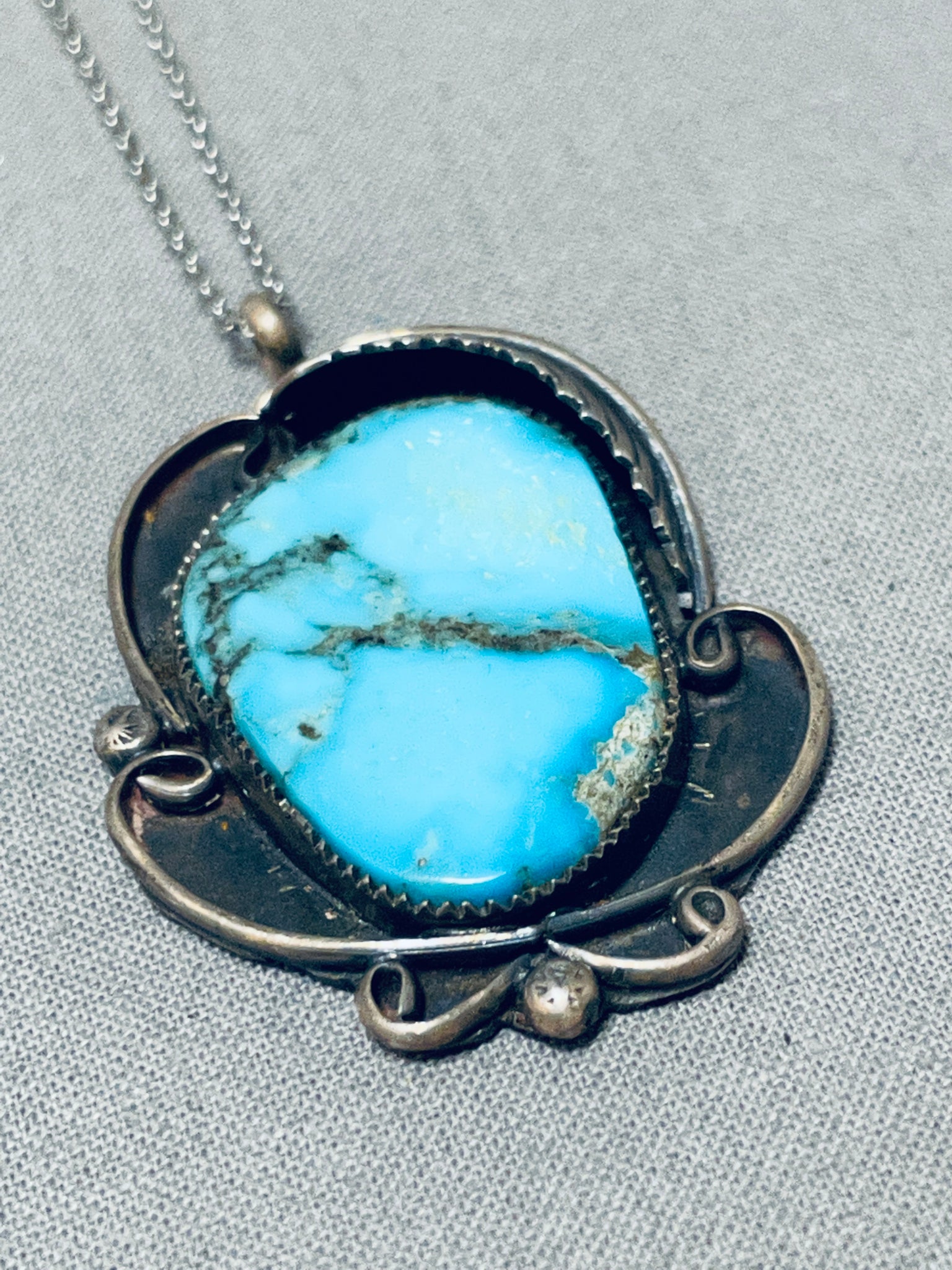 Native American Marvelous Vintage Zuni Kingman Turquoise Sterling Silver Necklace