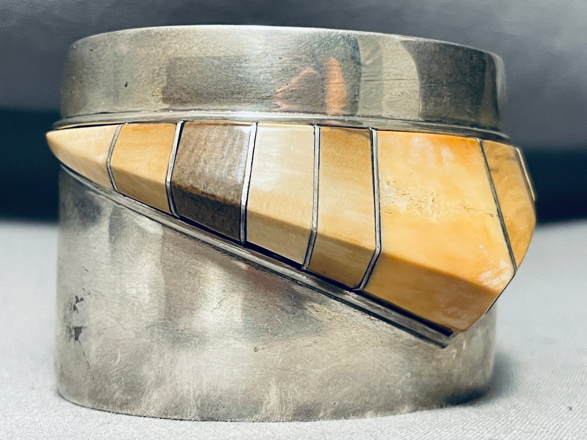 Native American Mind Boggling 3d Inlay Vintage Navajo Sterling Silver Bracelet