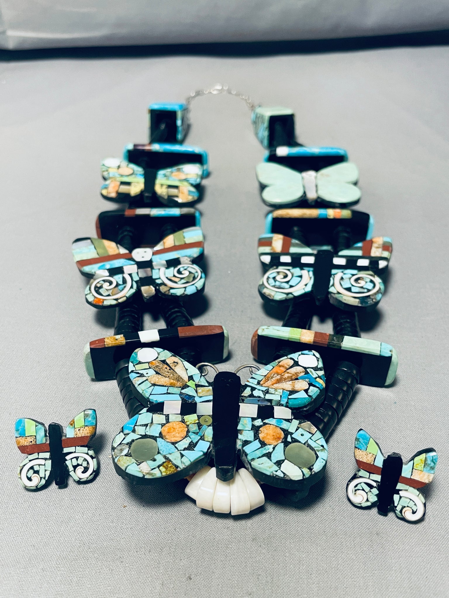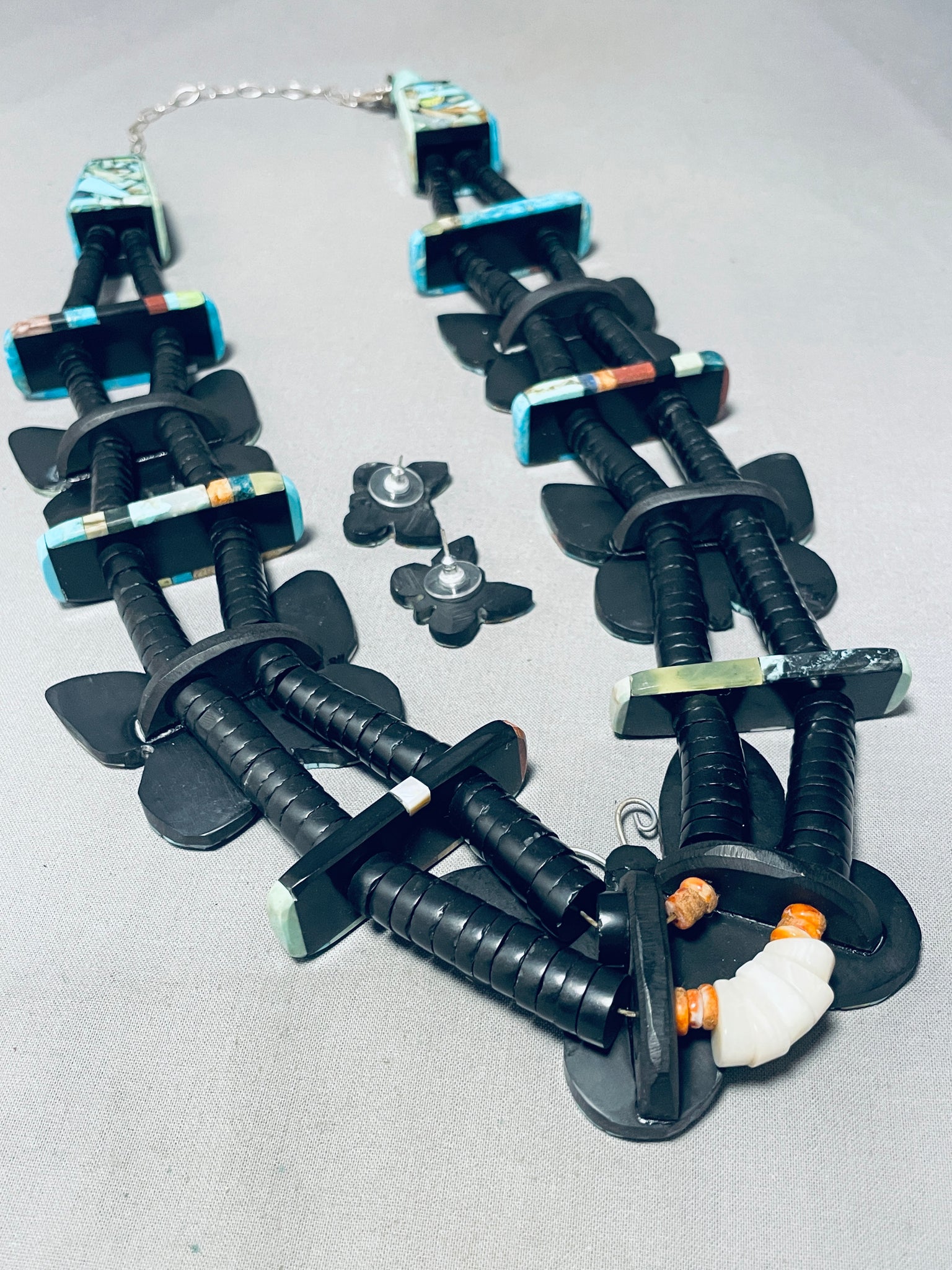 Native American Most Gorgeous Santo Domingo Turquoise Inlay Sterling Silver Necklace