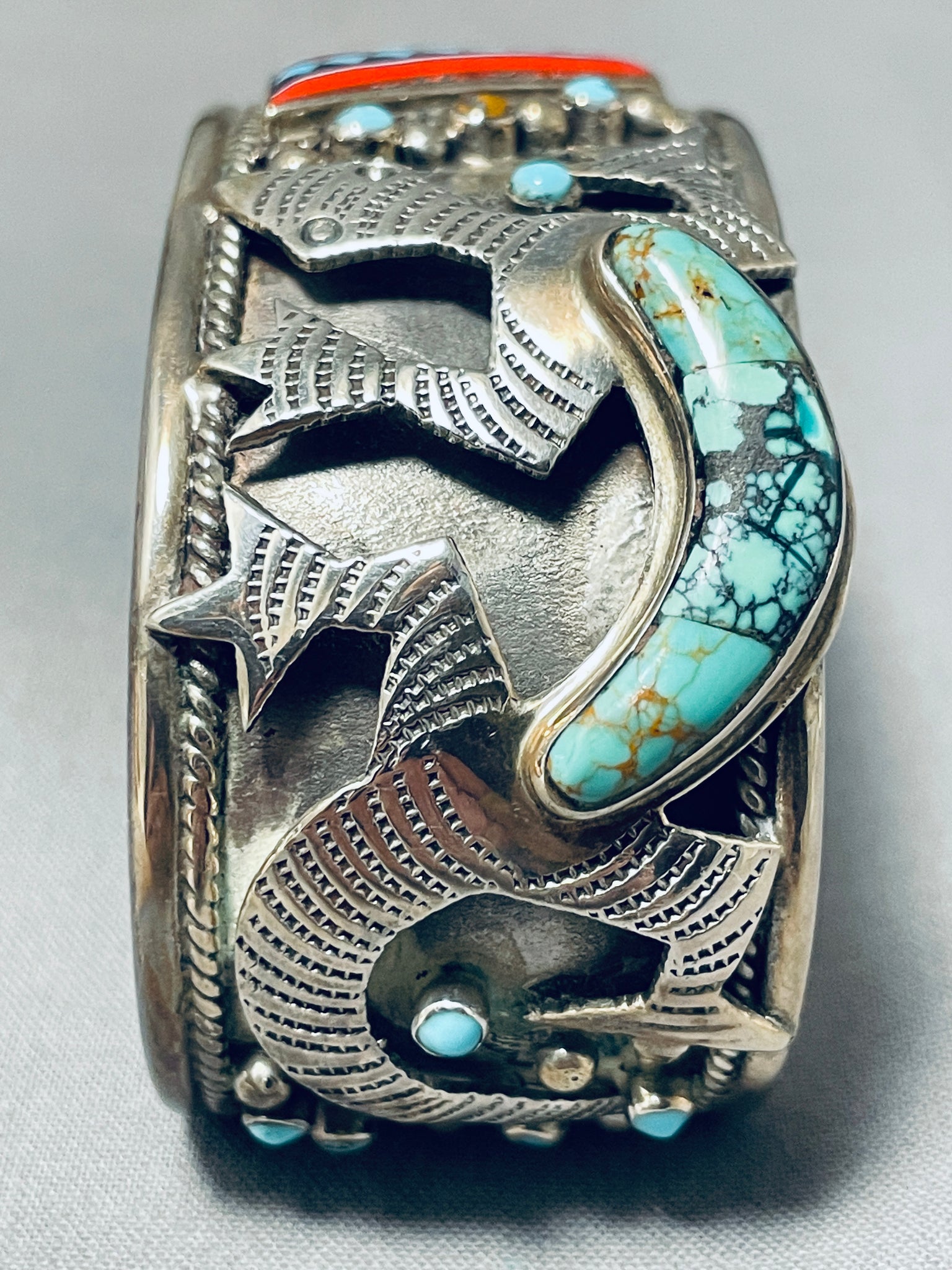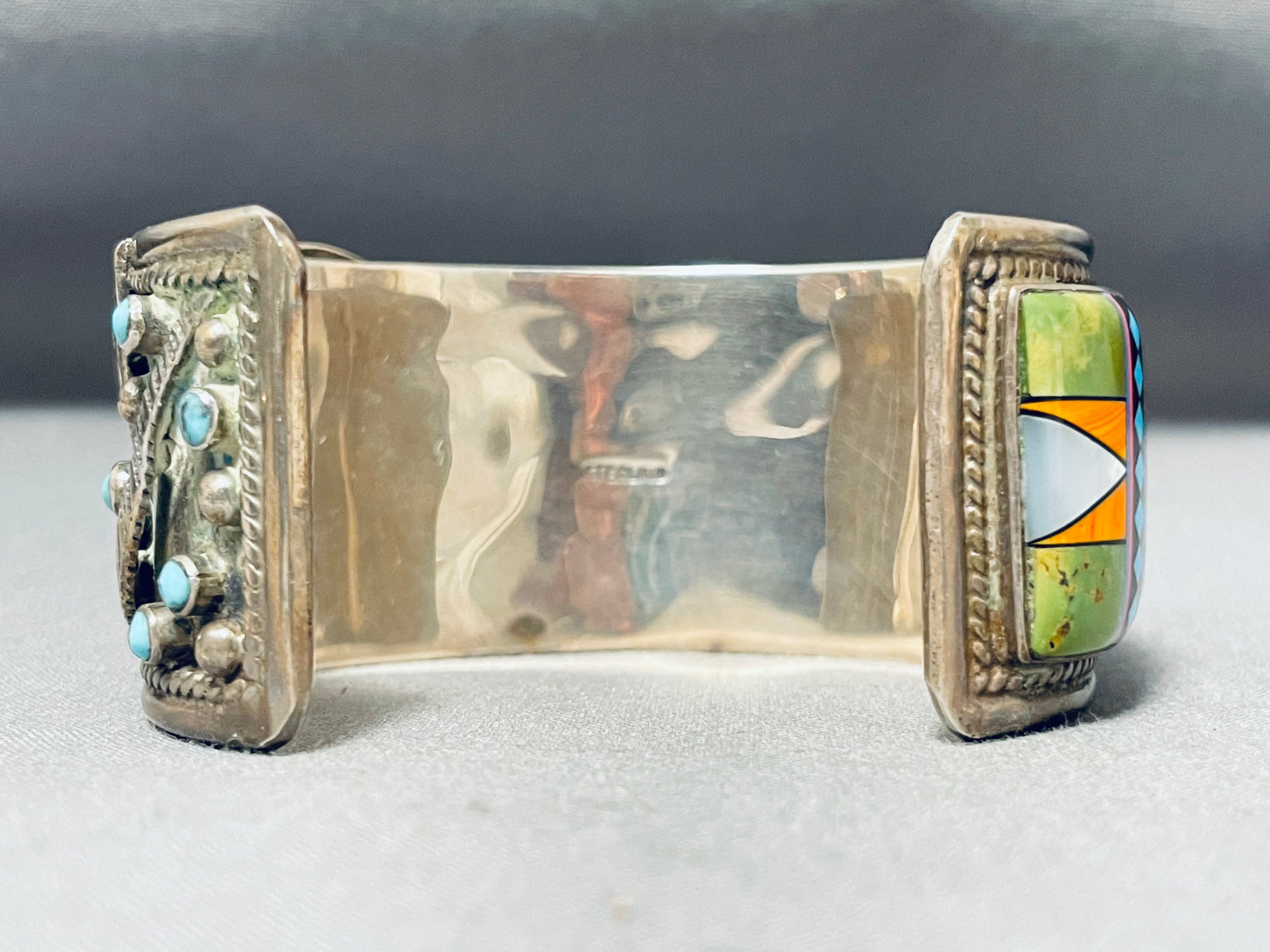 One Of Most Intricate Vintage Southwestern Turquoise Sterling Silver Bracelet