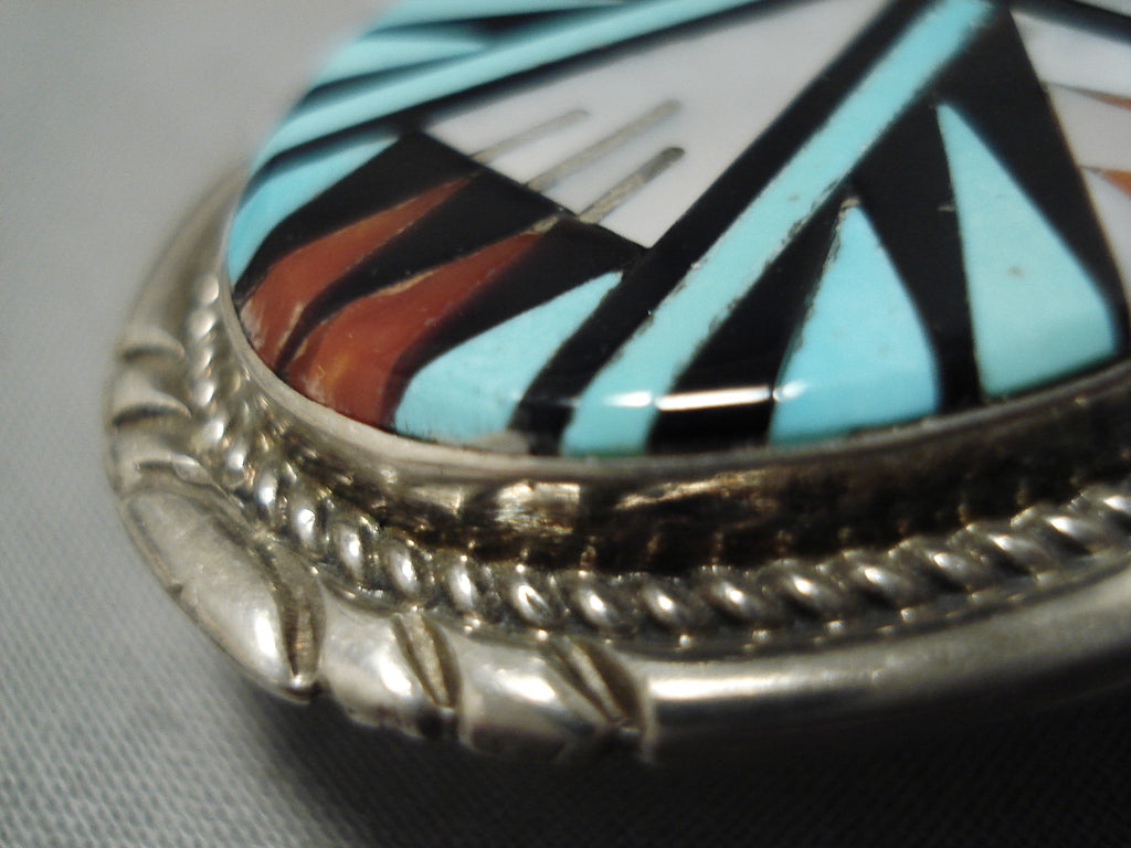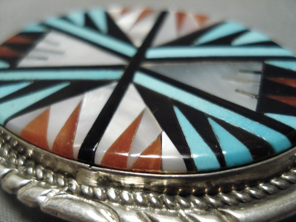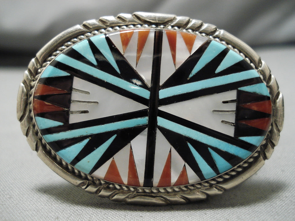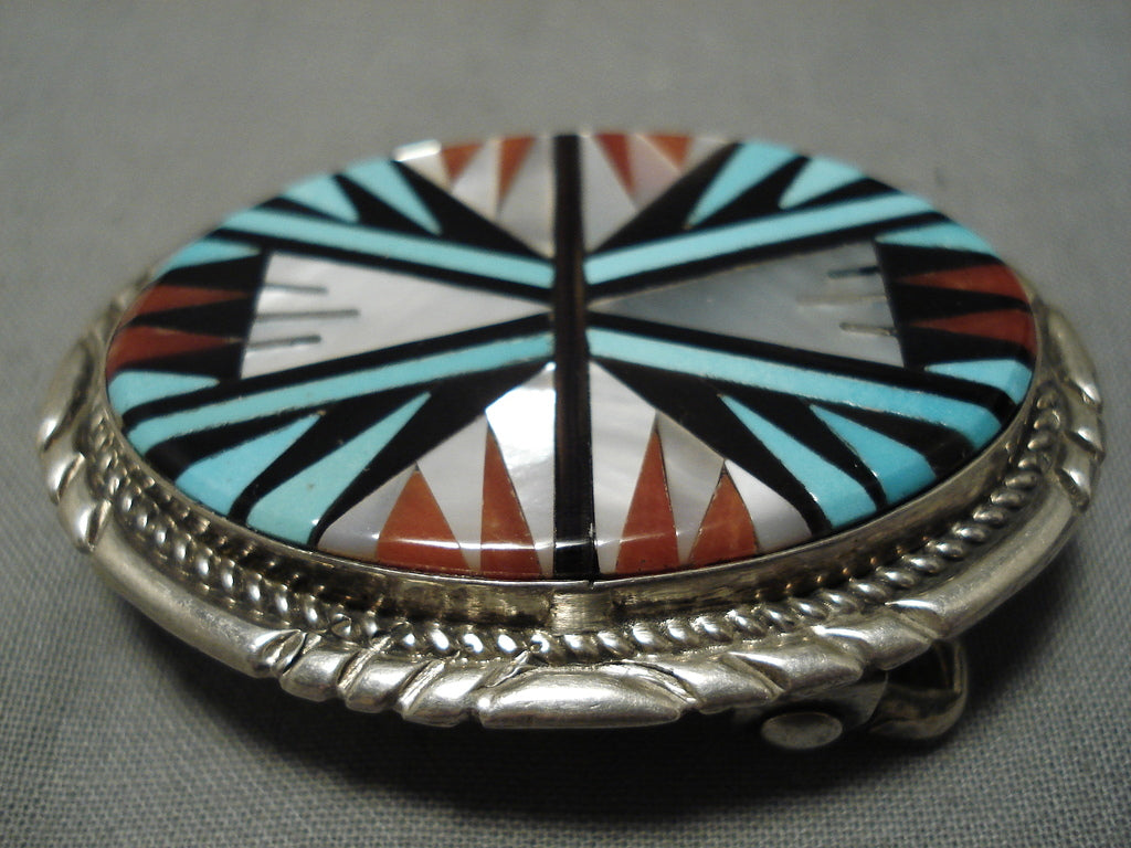 Native American One Of Most Intricate Vintage Zuni Turquoise Sterling Silver Buckle