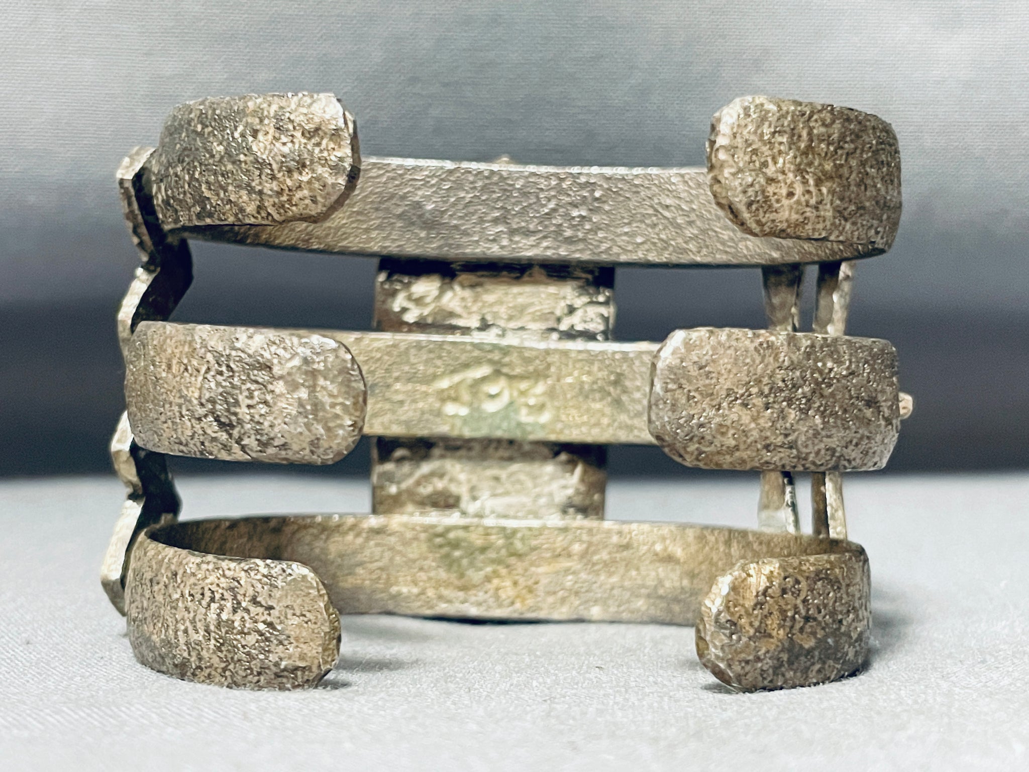 Native American One Of Most Unique Ever Vintage Navajo Turquoise Shell Sterling Silver Bracelet