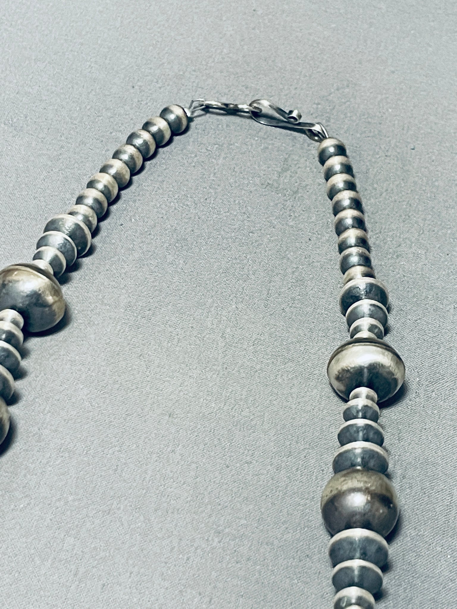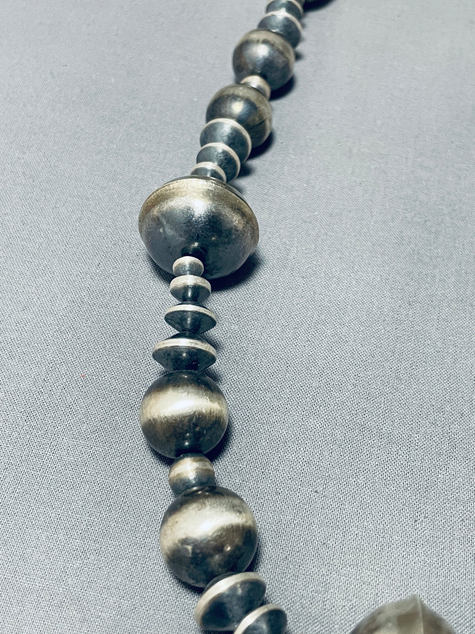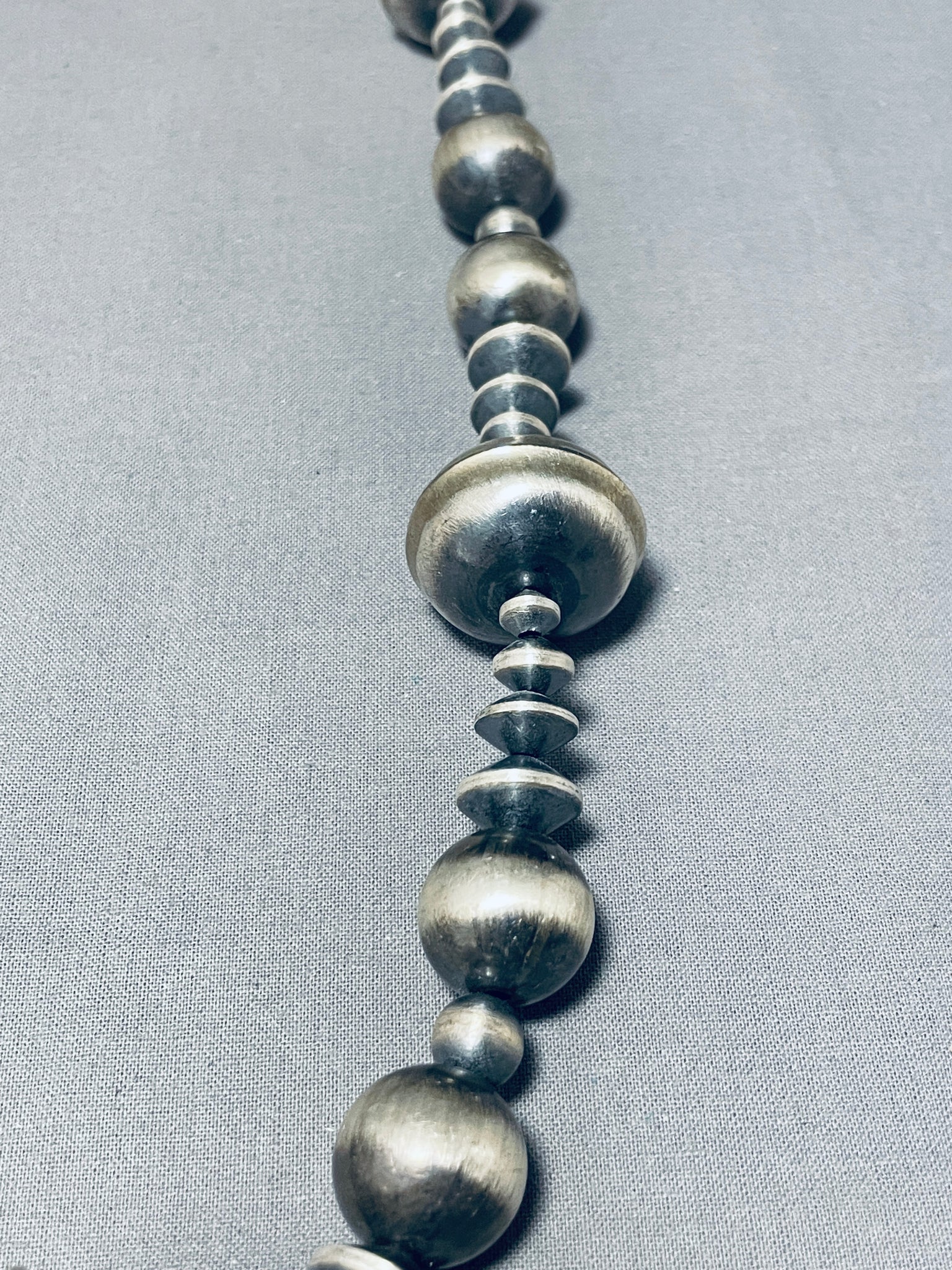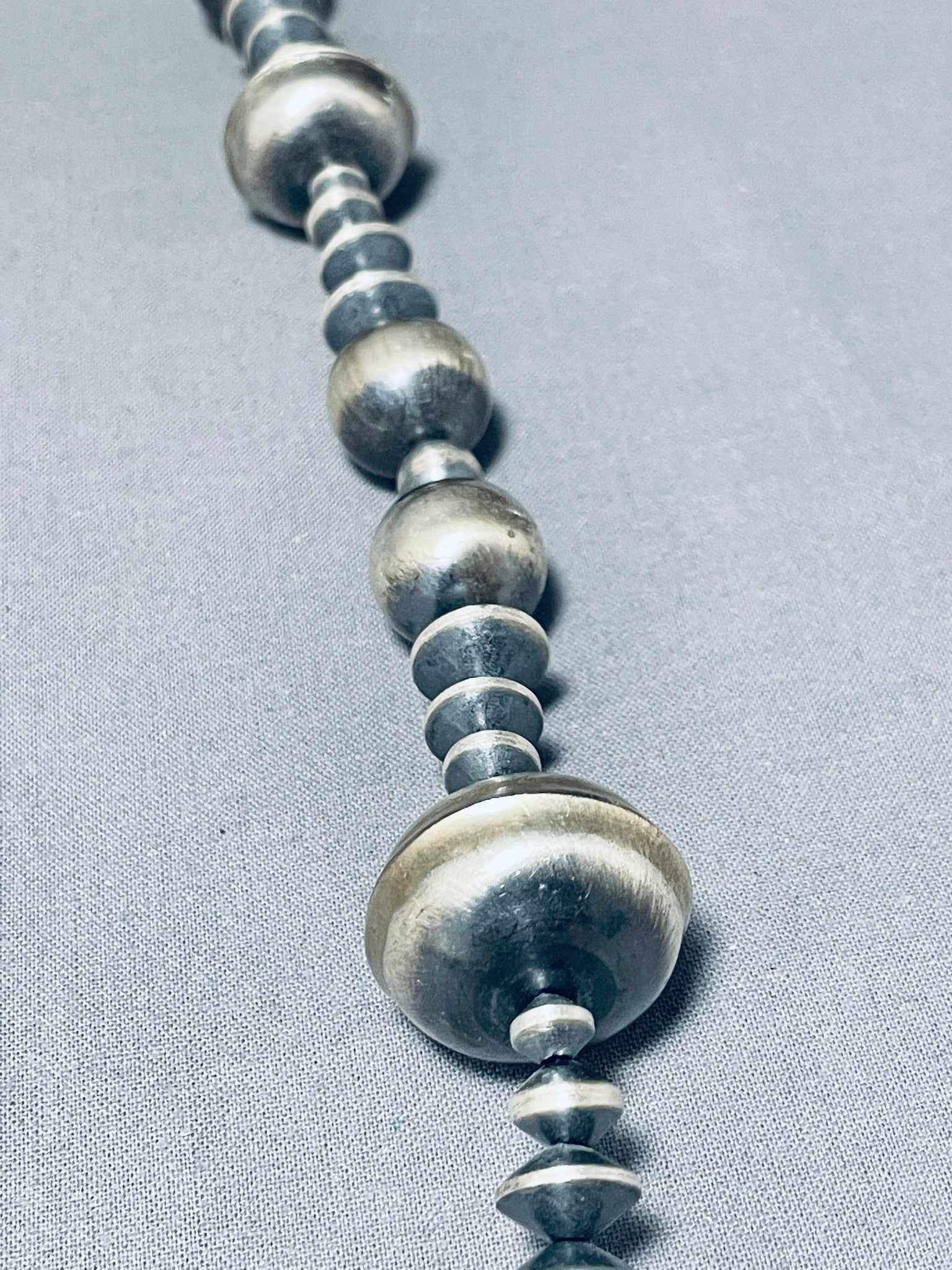 Native American One Of The Best Ever Navajo Hand Hammered Sterling Silver Bead Necklace