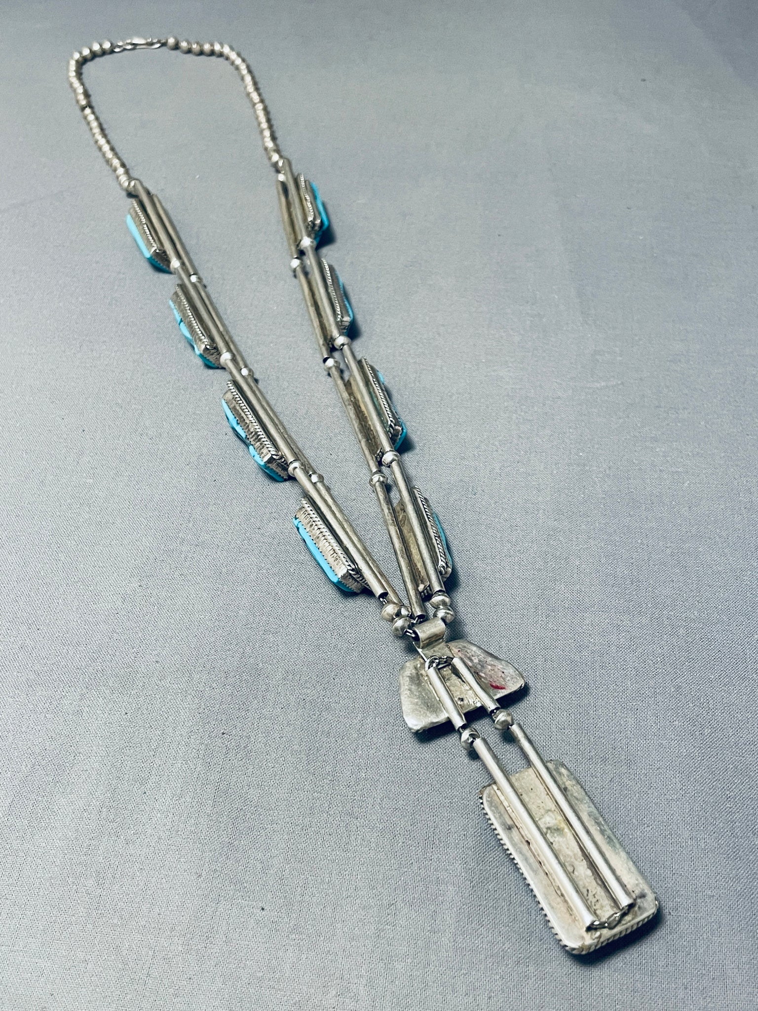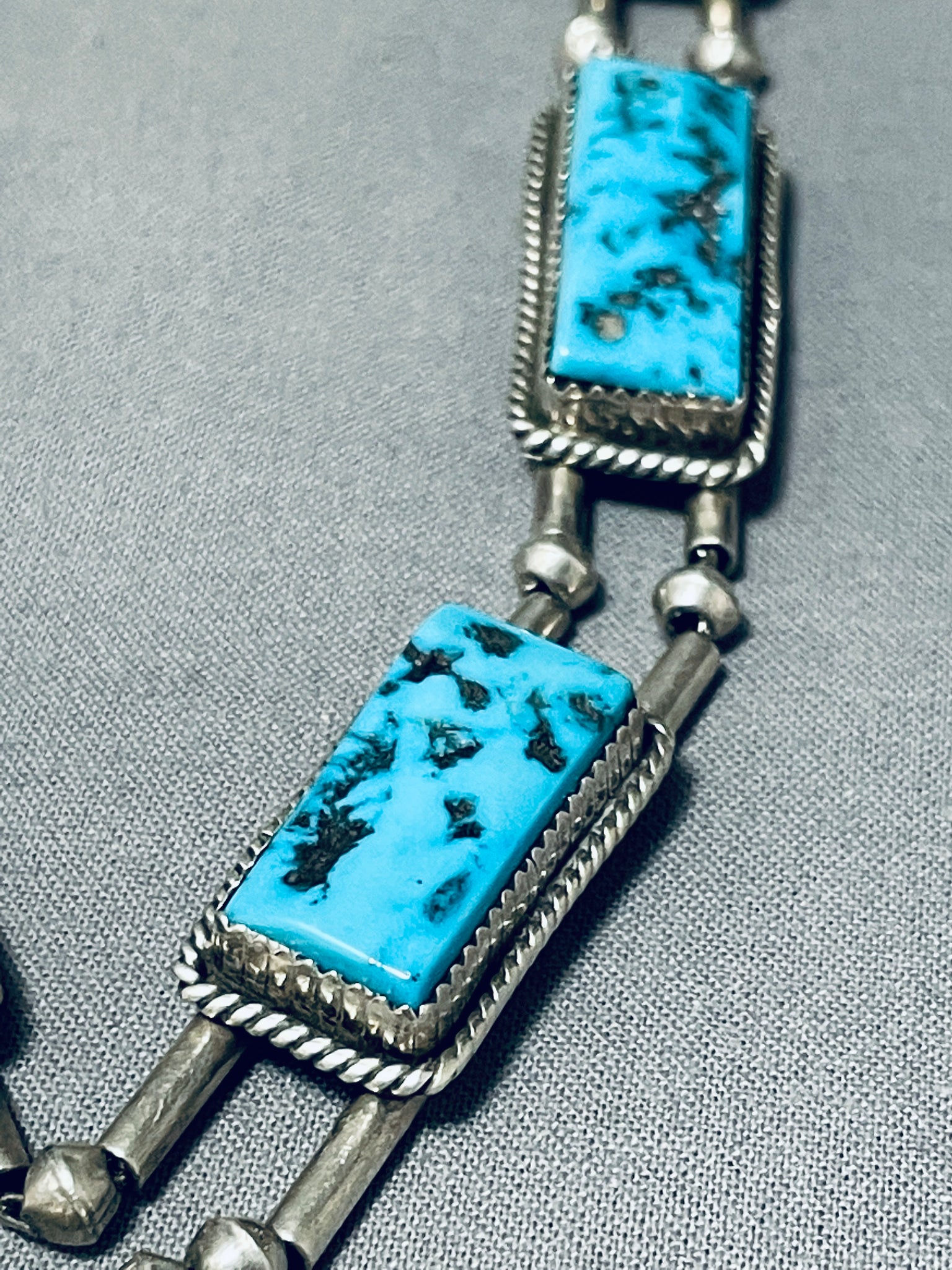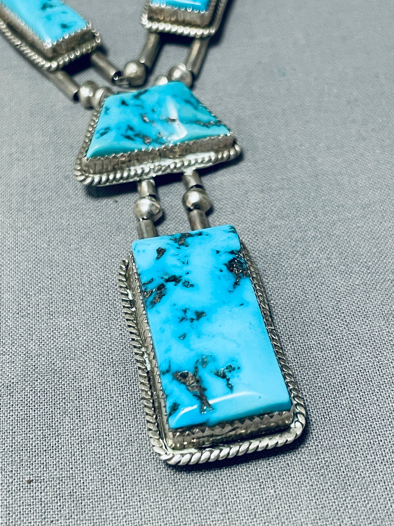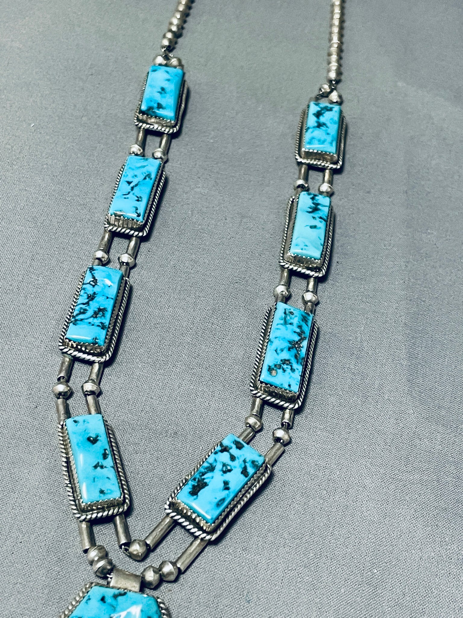 Native American One Of The Best Ever Vintage Navajuo Squared Turquoise Sterling Silver Necklace