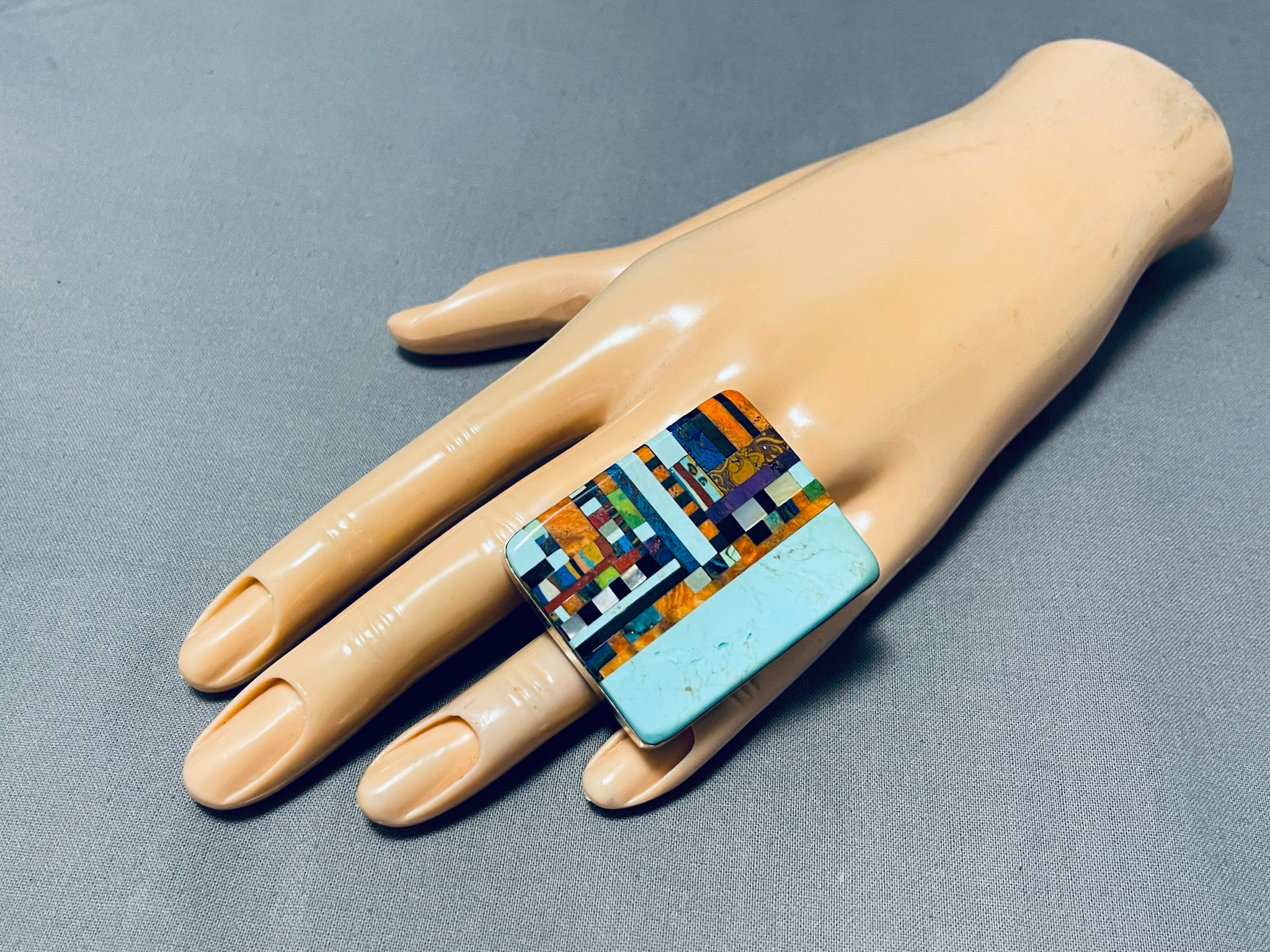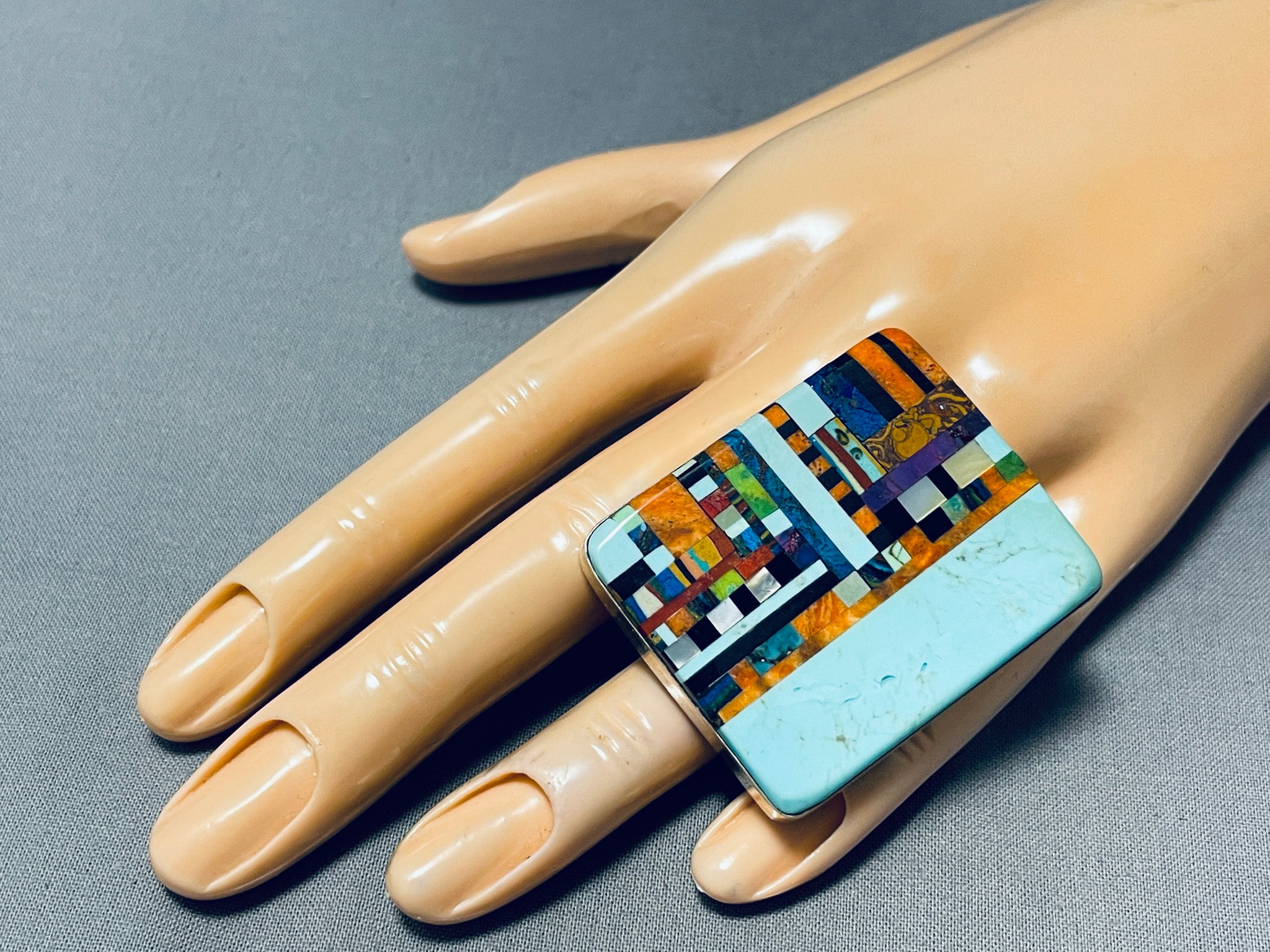 Native American One Of The Best Ever Vintage Santo Domingo Inlay Sterling Silver Ring