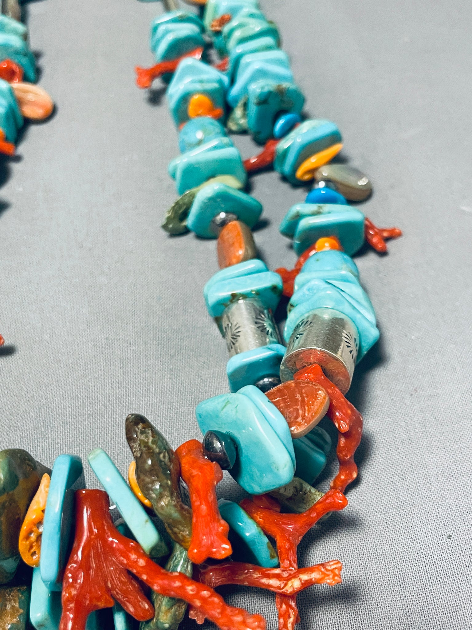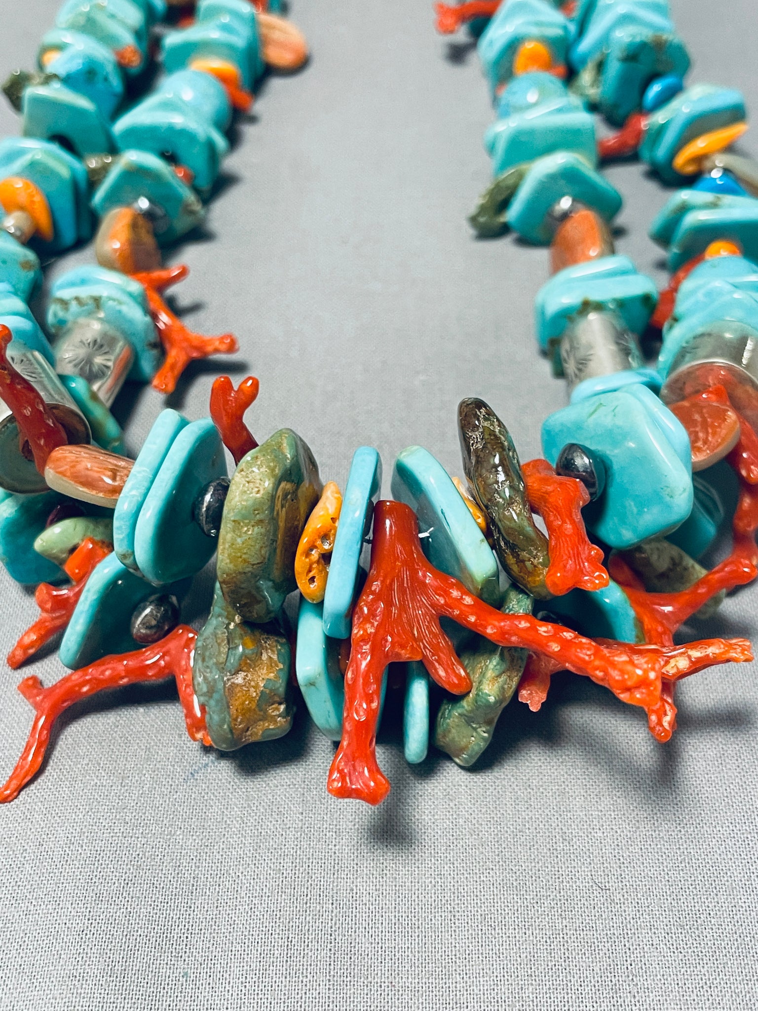 Native American One Of The Best Santo Domingo Turquoise Sterling Silver Tubule Necklace