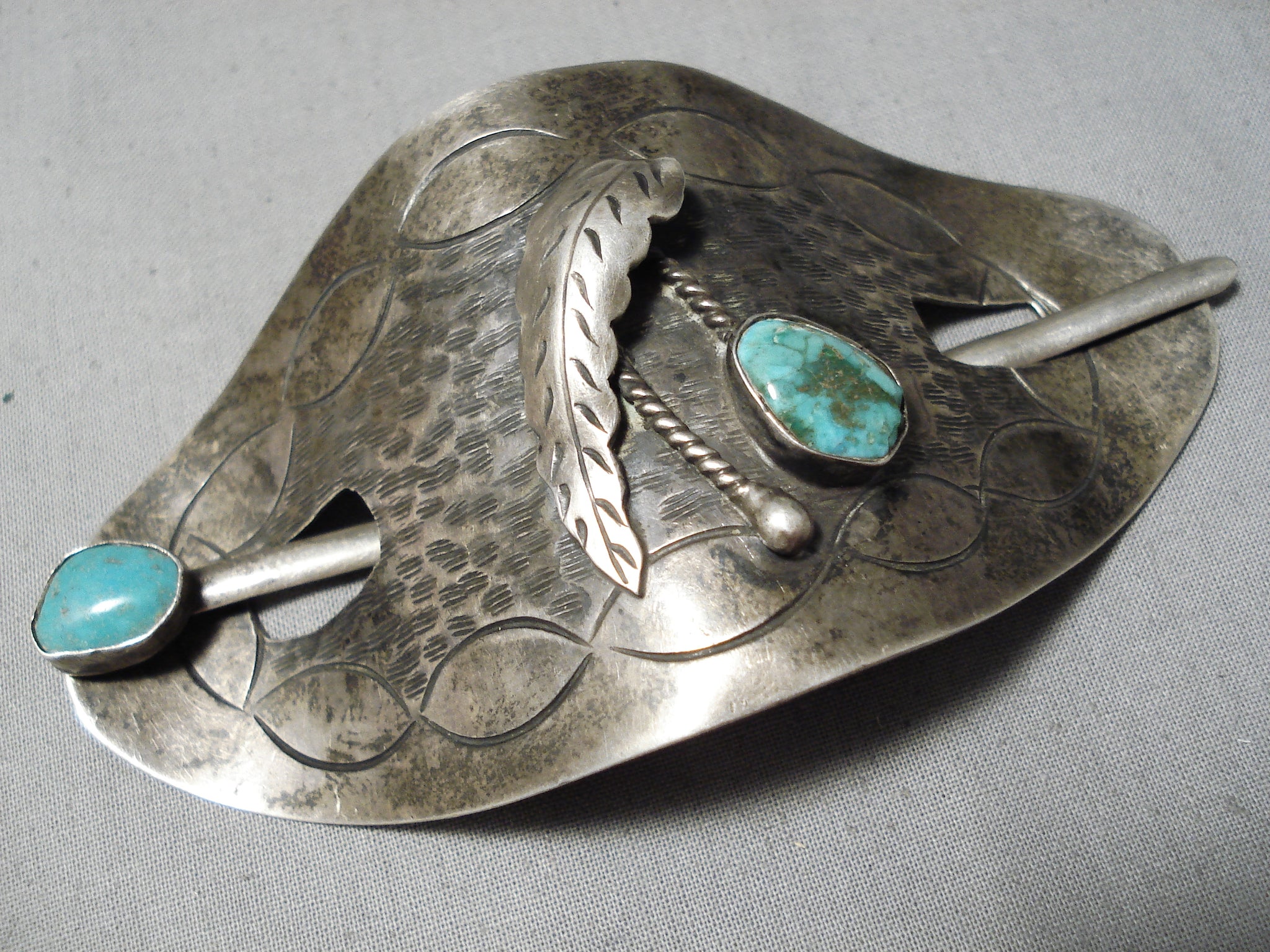 Native American One Of The Best Vintage Navajo Turquoise Sterling Silver Hair Barrette Clip Old