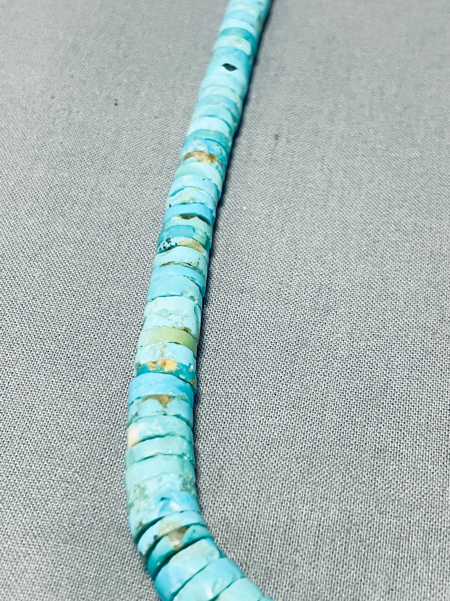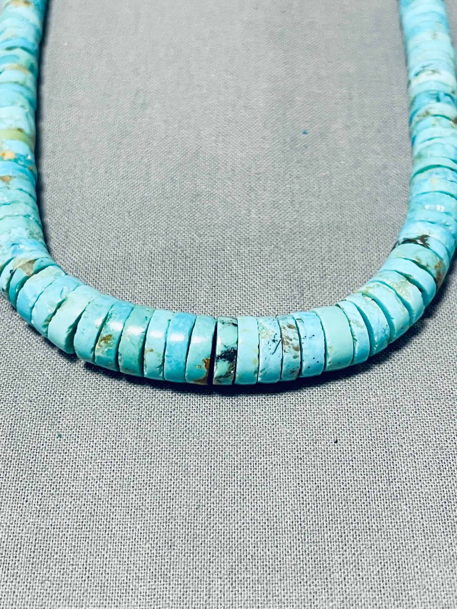 Native American One Of The Best Vintage Santo Domingo Turquoise Heishi Sterling Silver Necklace