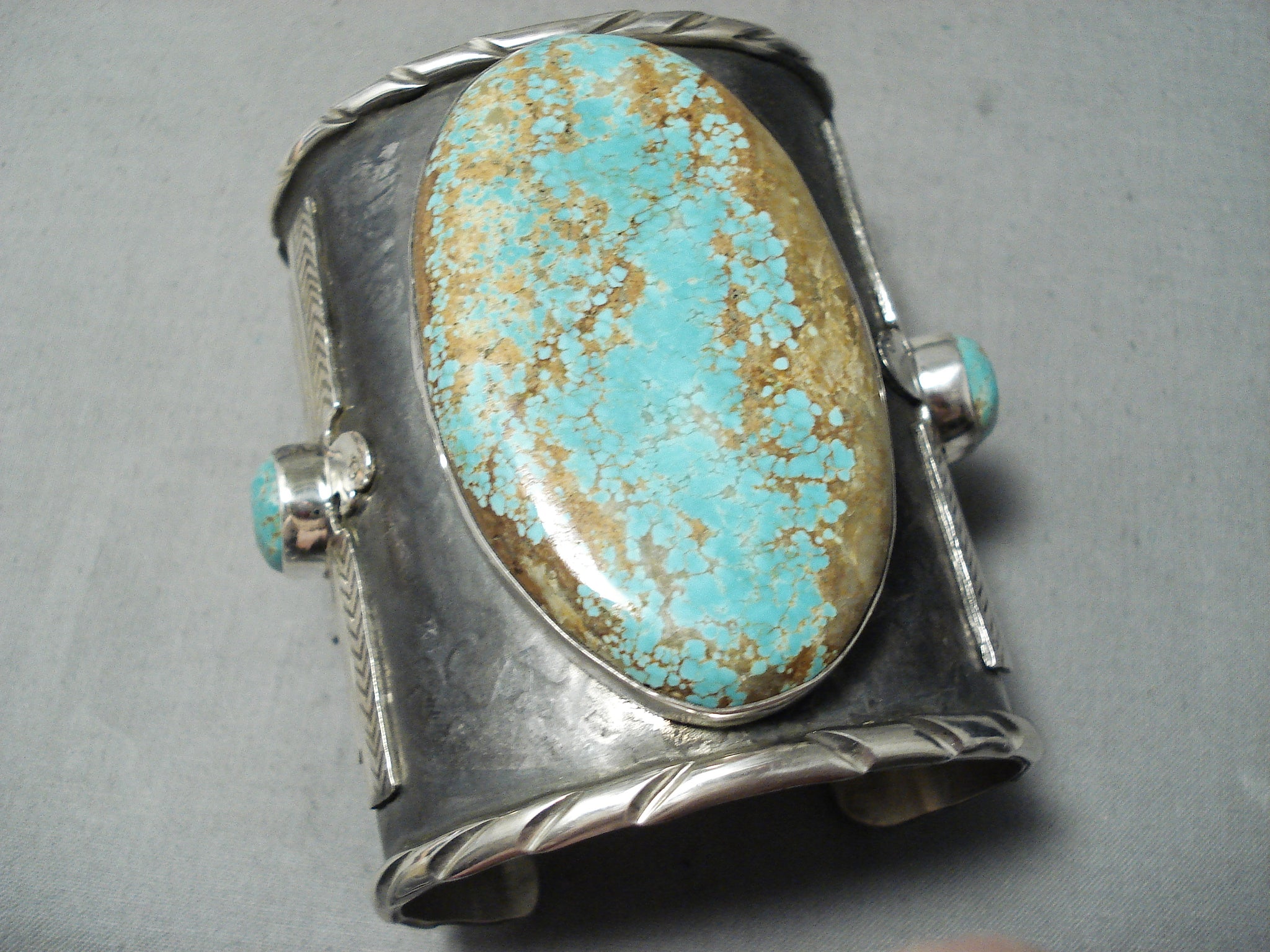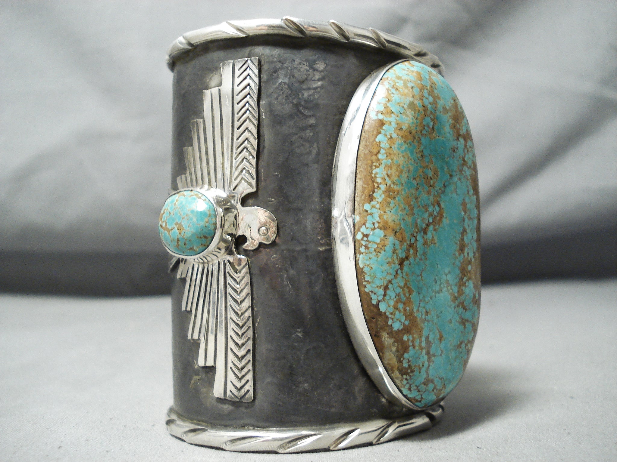Native American One Of The Biggest Ever #8 Turquoise Sterling Silver Thunderbird Bracelet