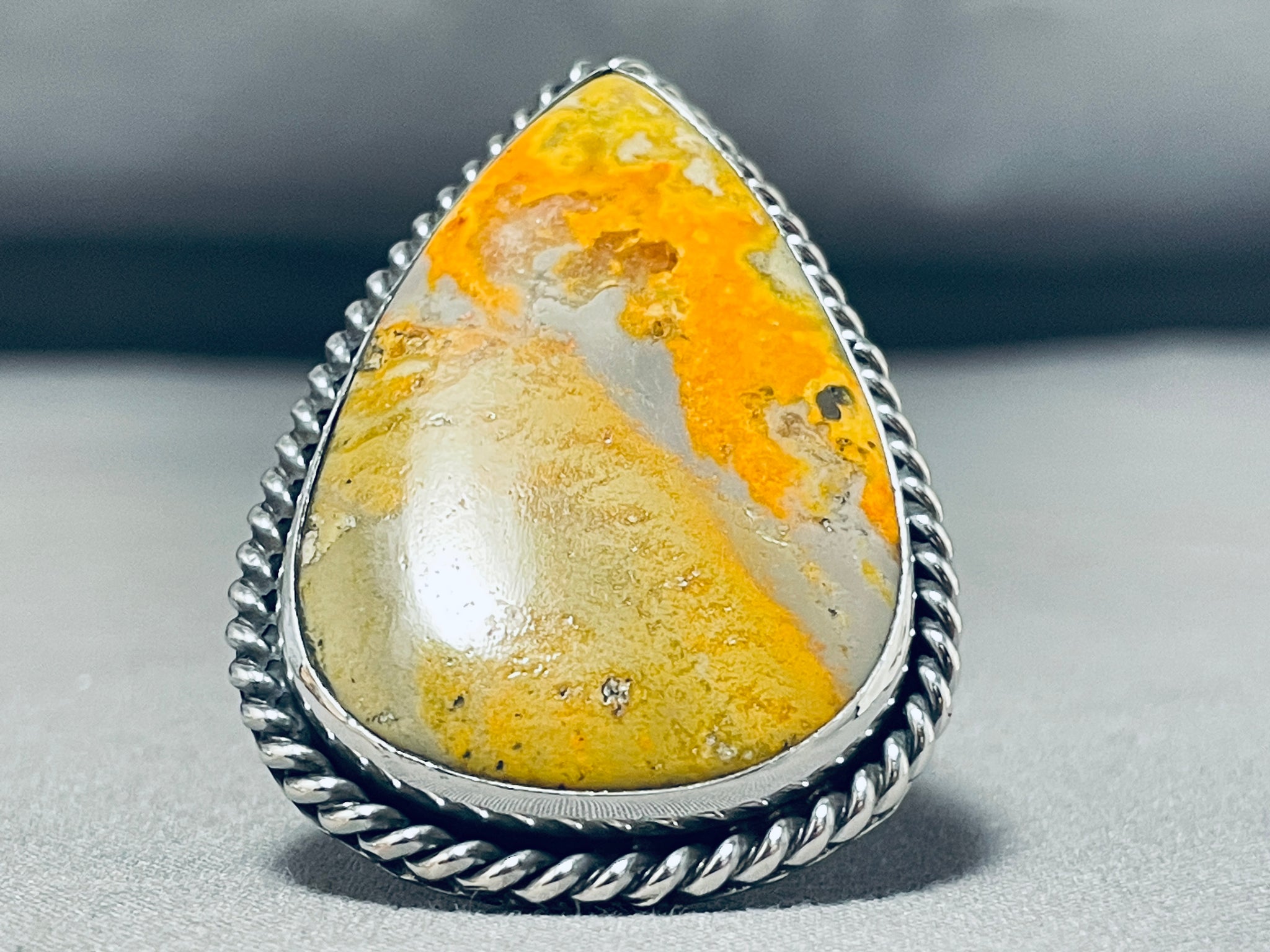 Native American One Of The Craziest Honeybee Jasper Sterling Silver Massive Ring