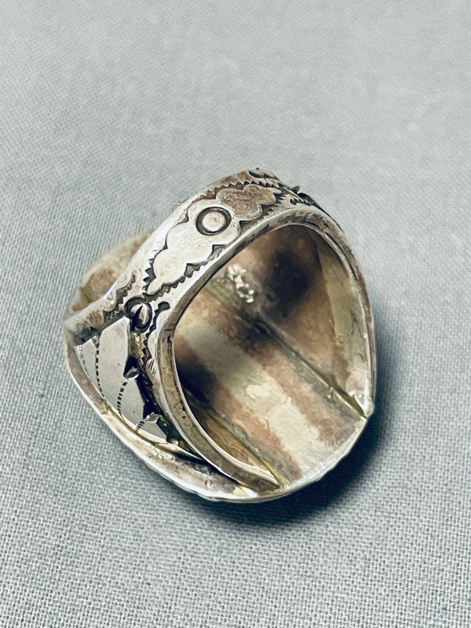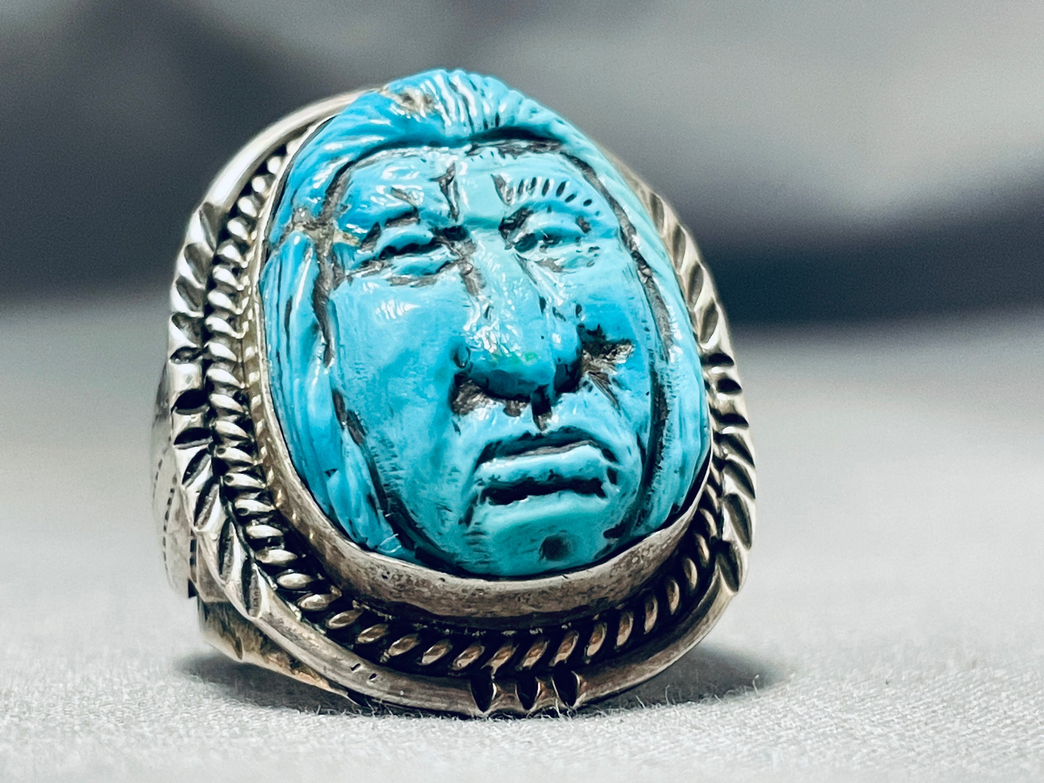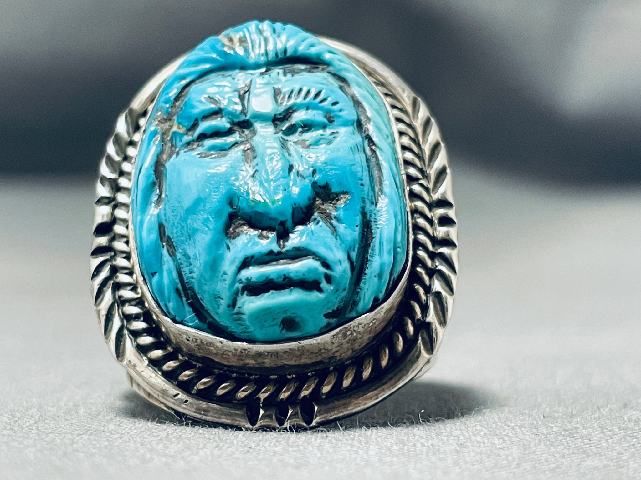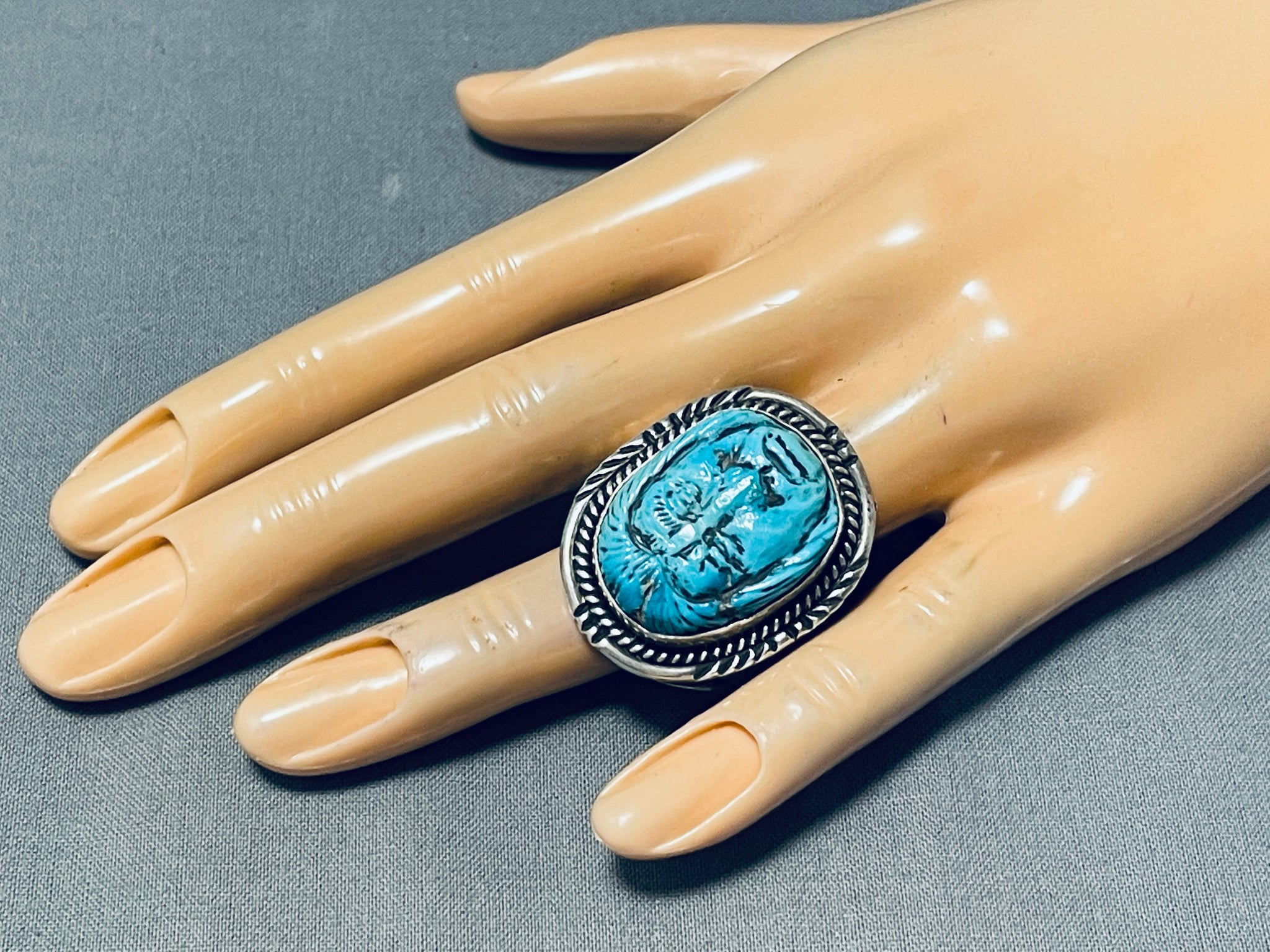 Native American One Of The Most Detailed Ever Vintage Turquoise Sterling Silver Ring
