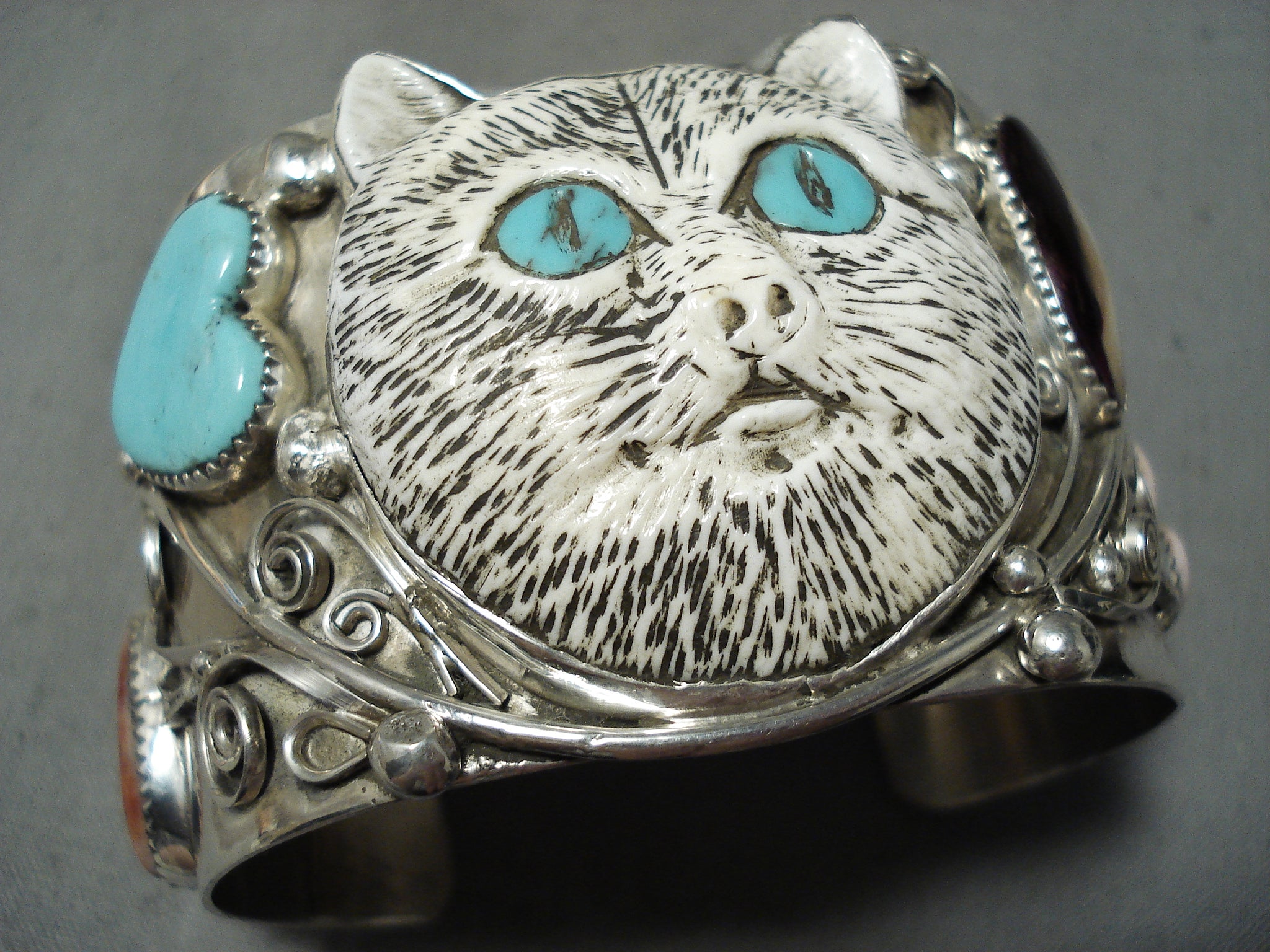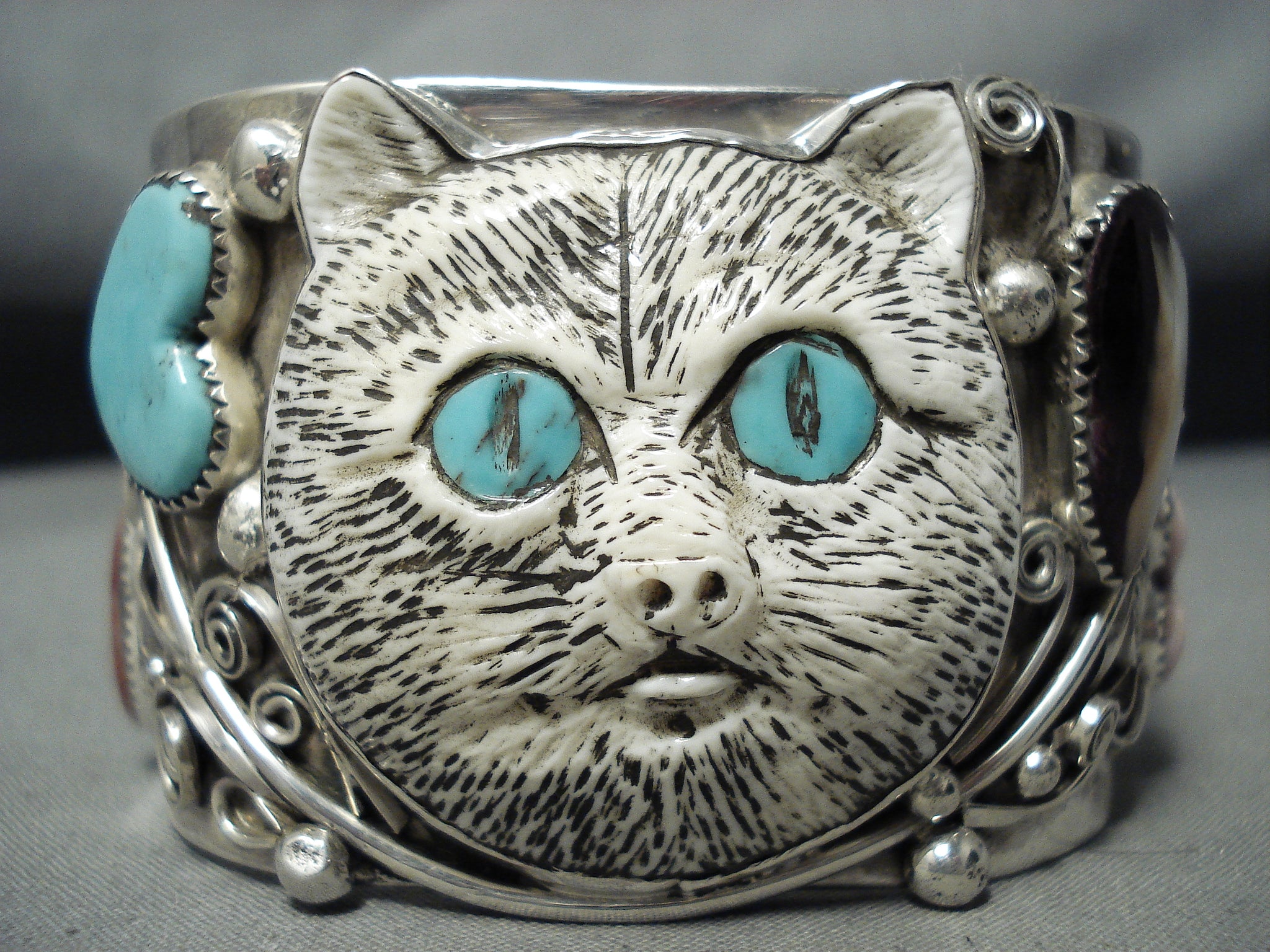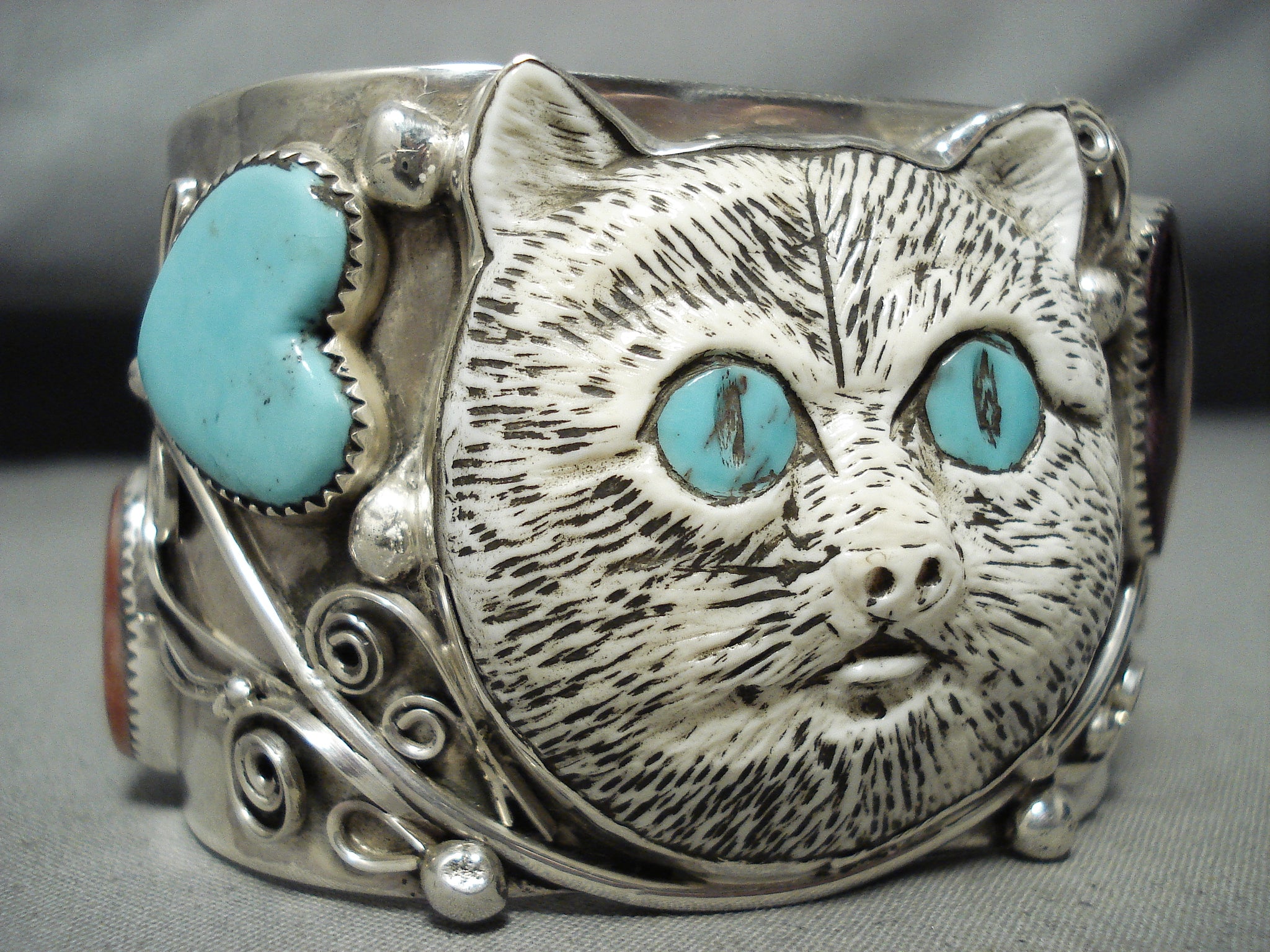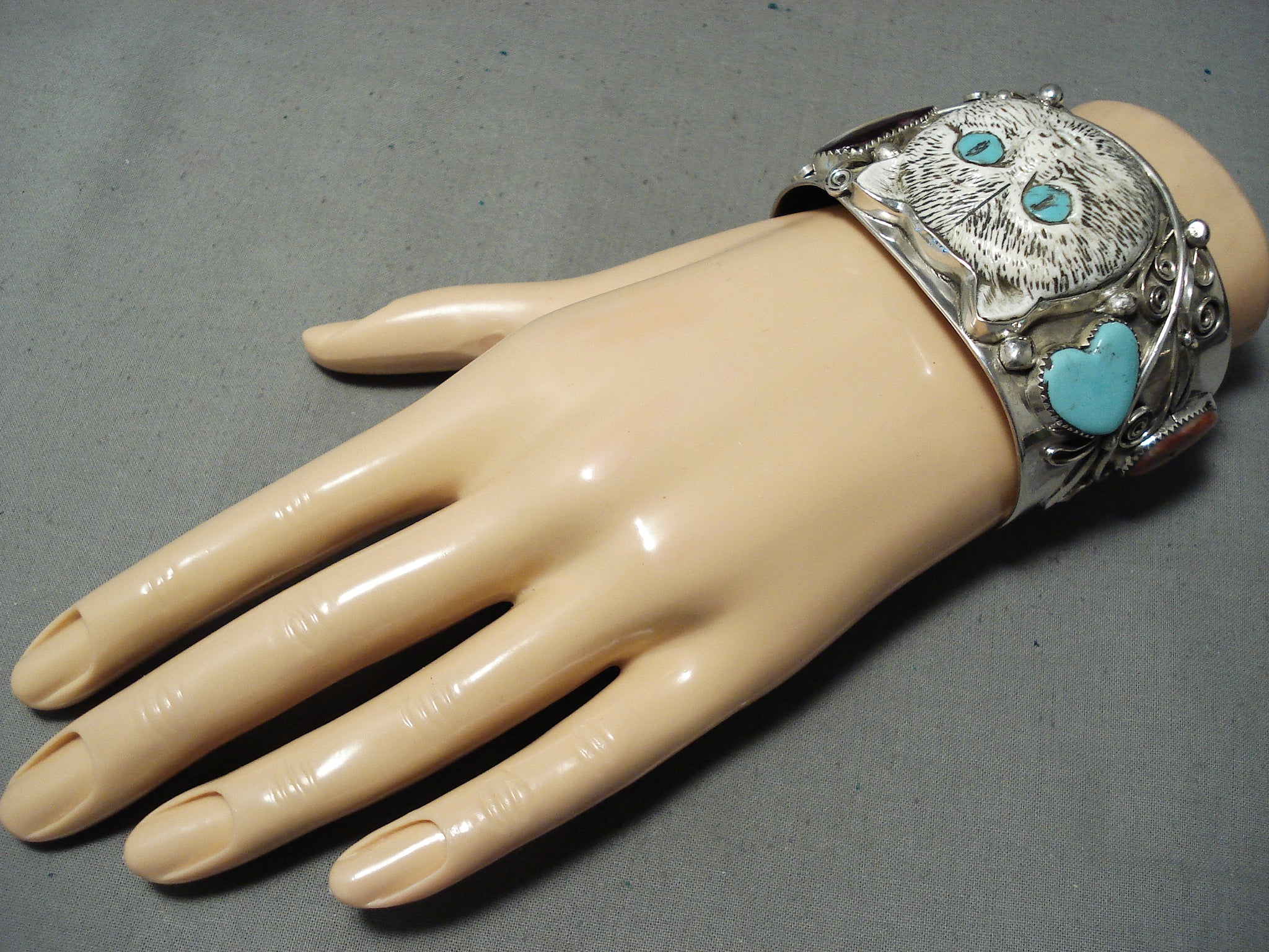 Native American One Of The Most Intricate Ever Hand Carved Turquoise Sterling Silver Bracelet
