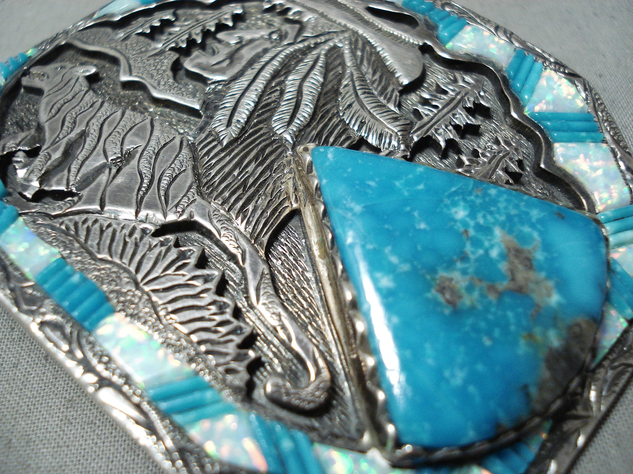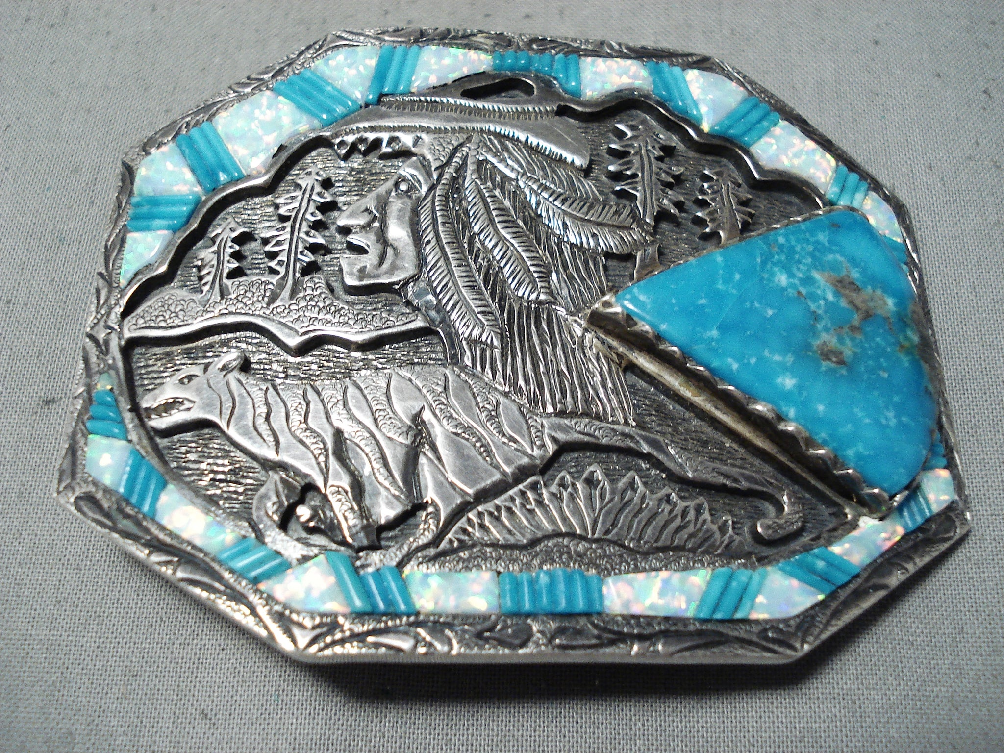 Native American One Of The Most Intricate Ever Southwest Turquoise Sterling Silver Buckle