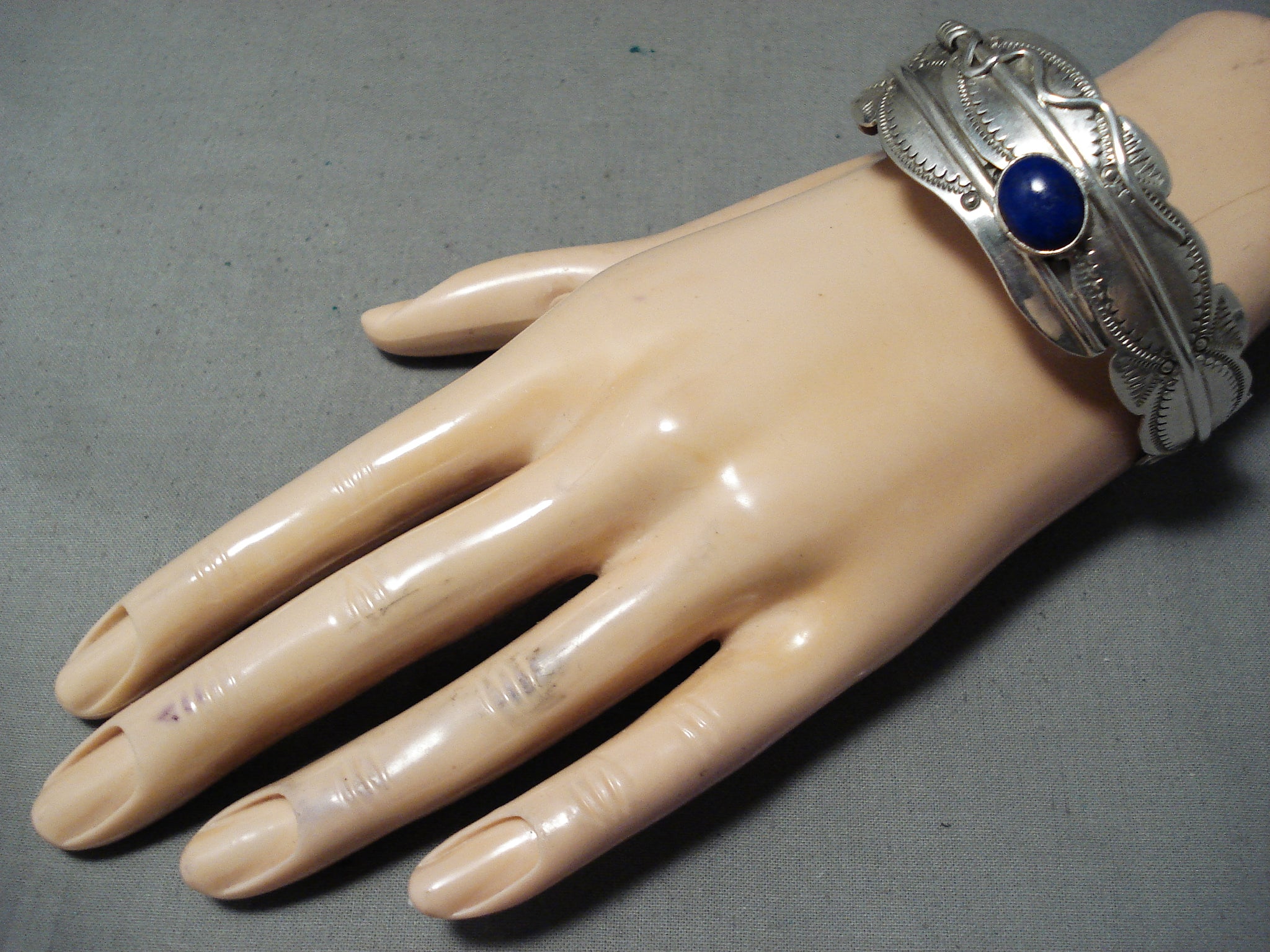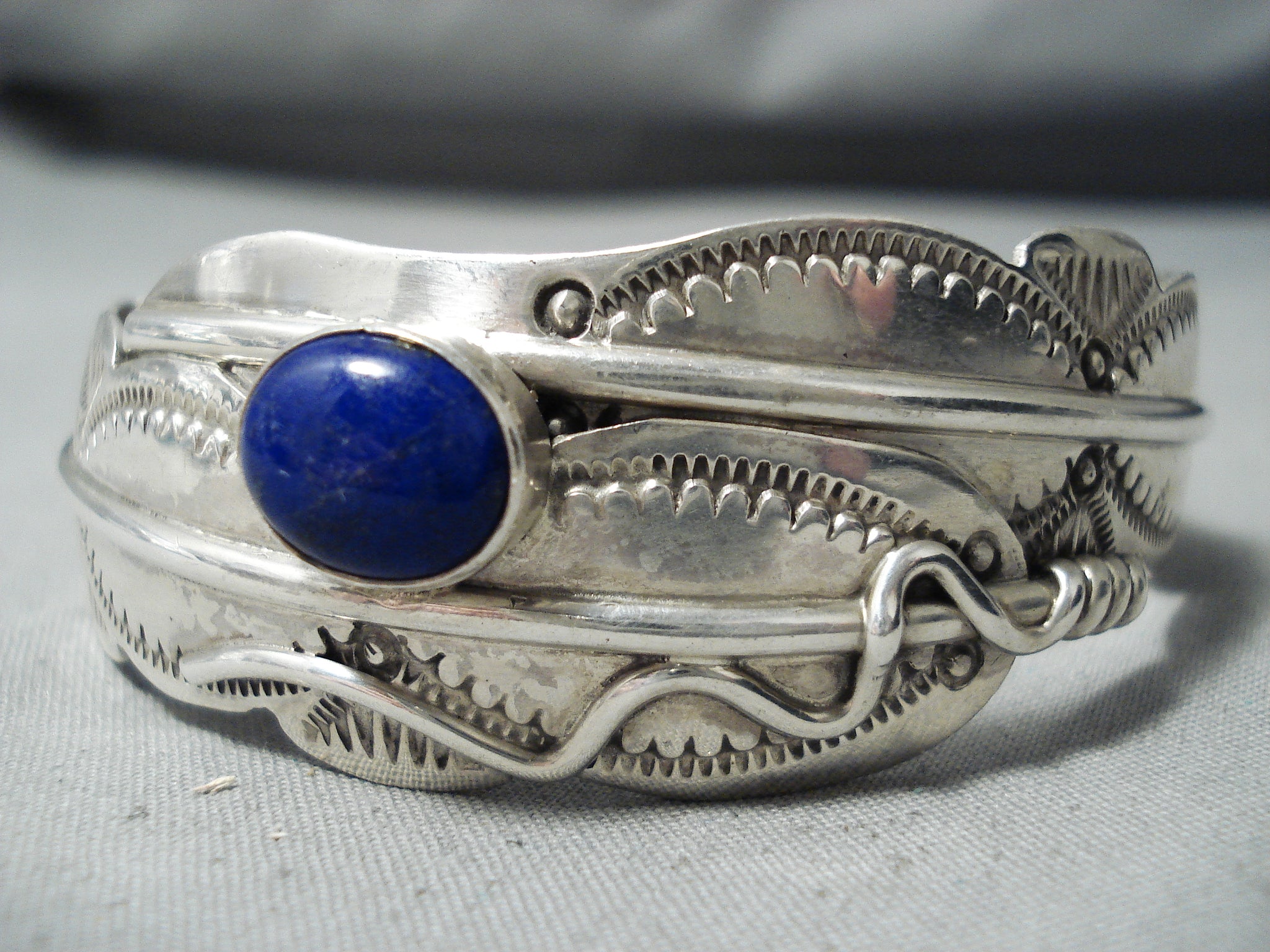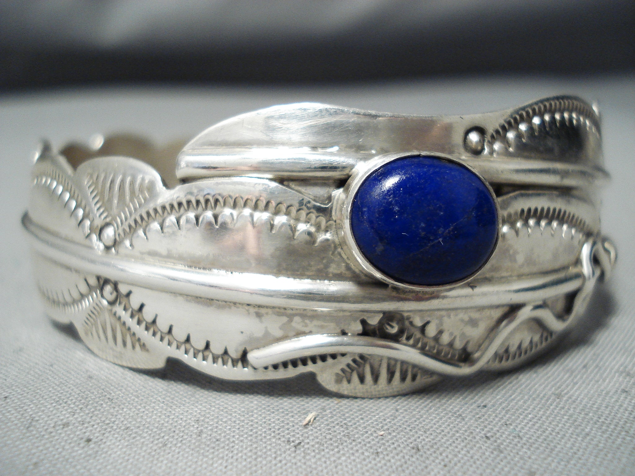Native American One Of The Most Unique Ben Begaye Lapis Feather Sterling Silver Bangle Bracelet