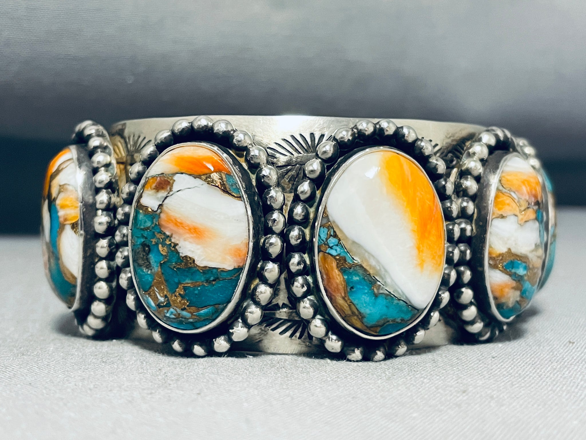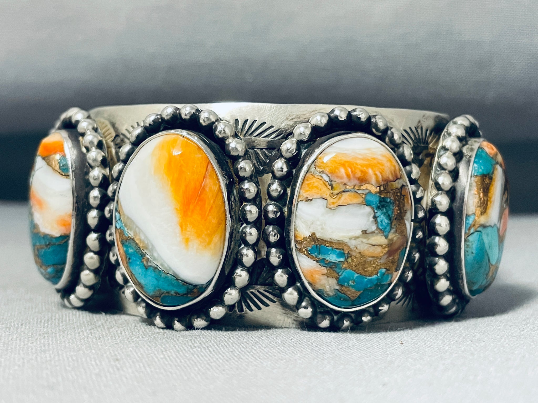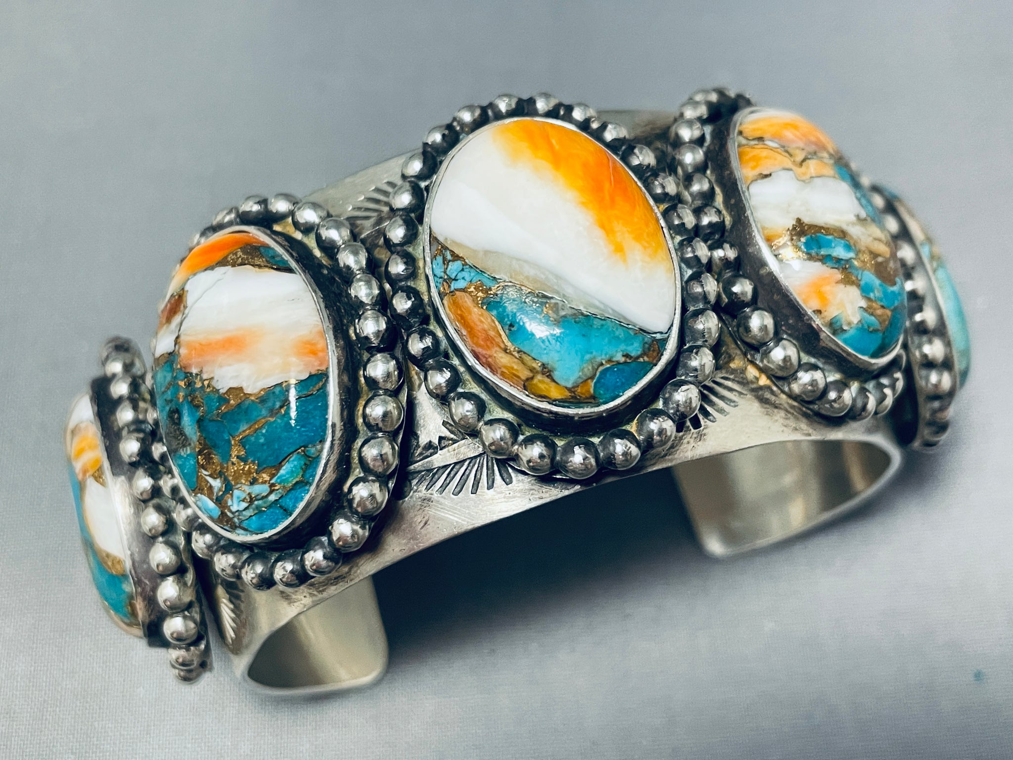 Native American One Of The Most Unique Colorful Stone Turquoise Sterling Silver Bracelet