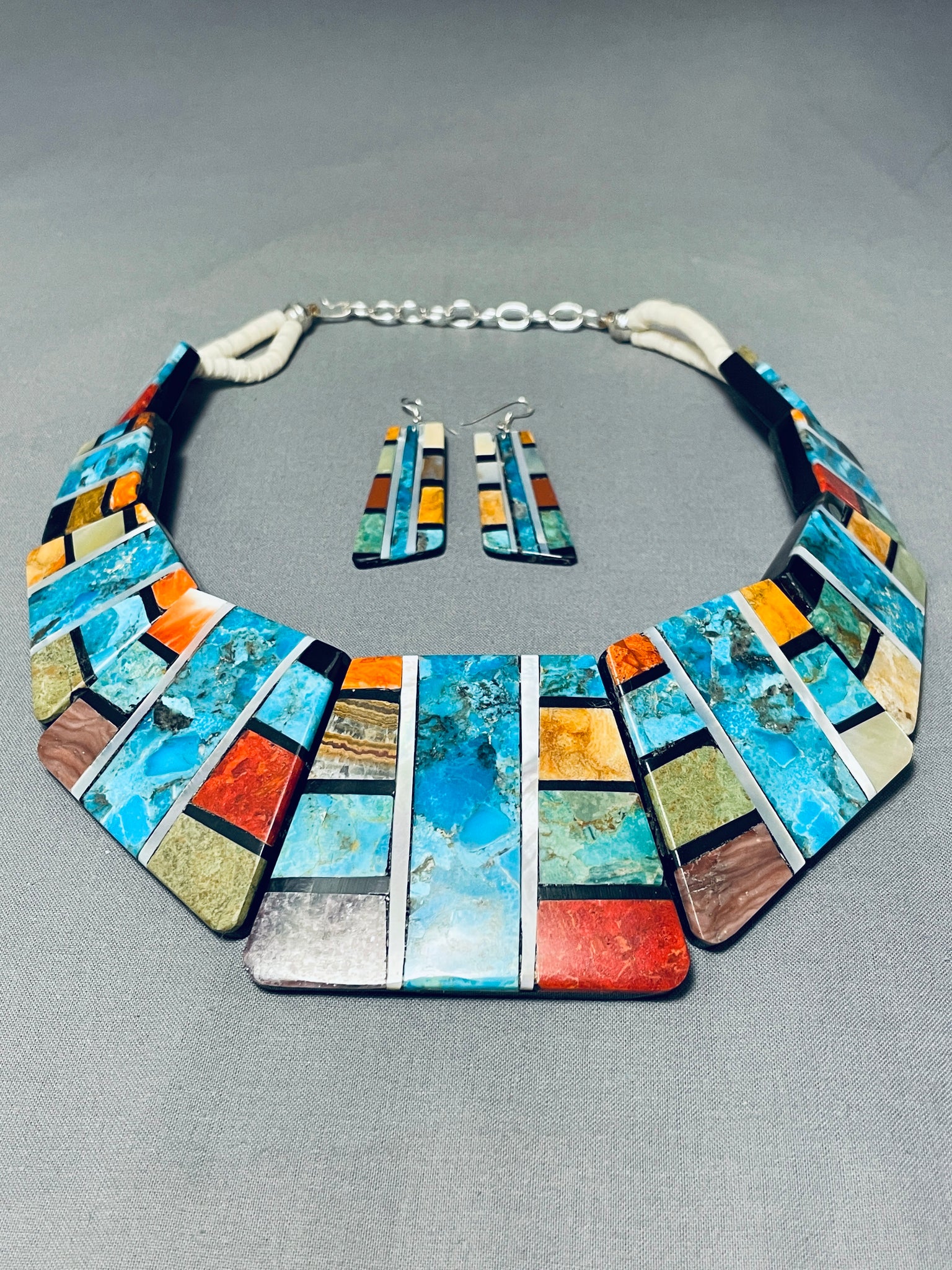 Native American One Of The Most Unique Ever Santo Domingo Turquoise Sterling Silver Necklace