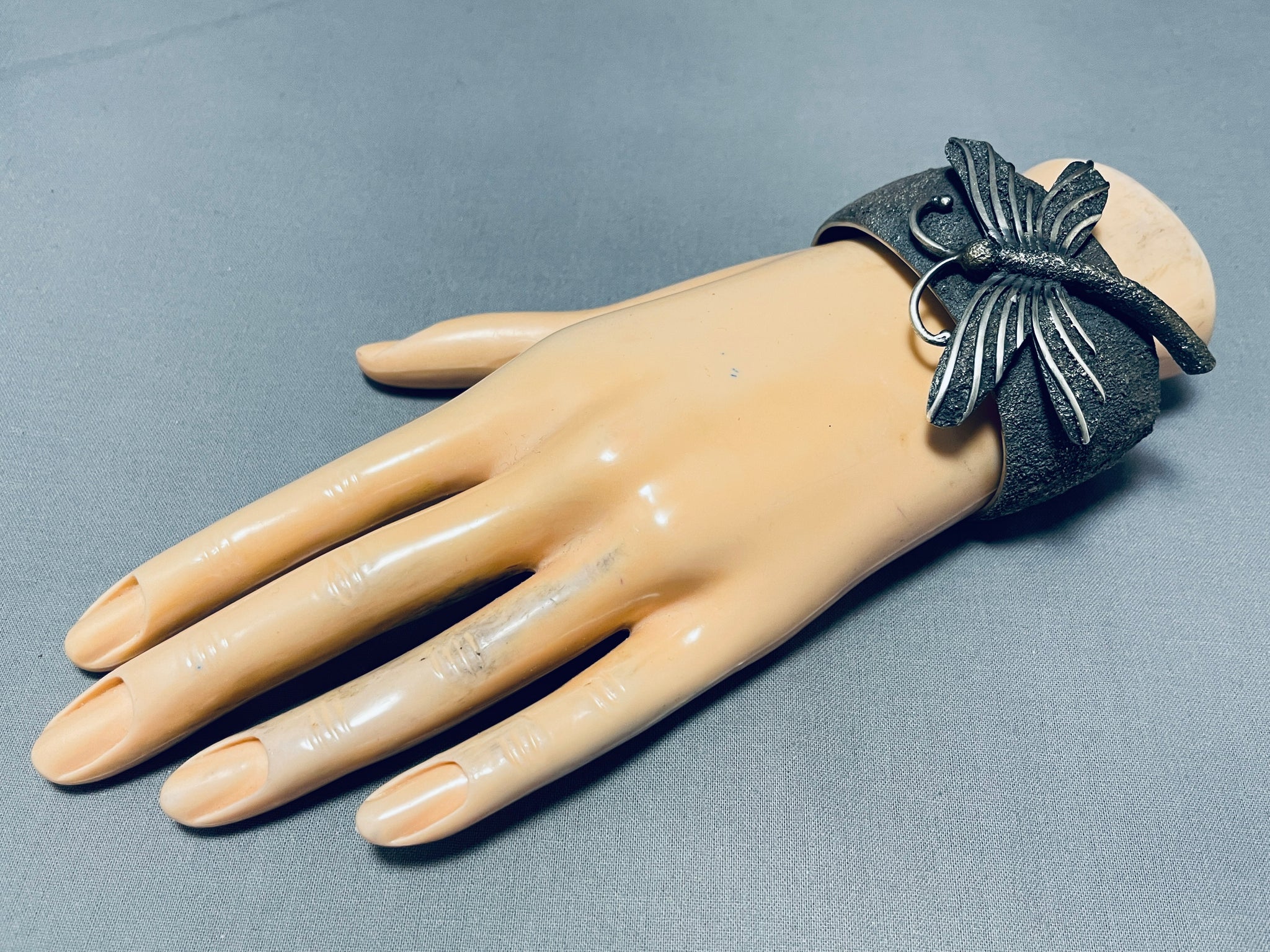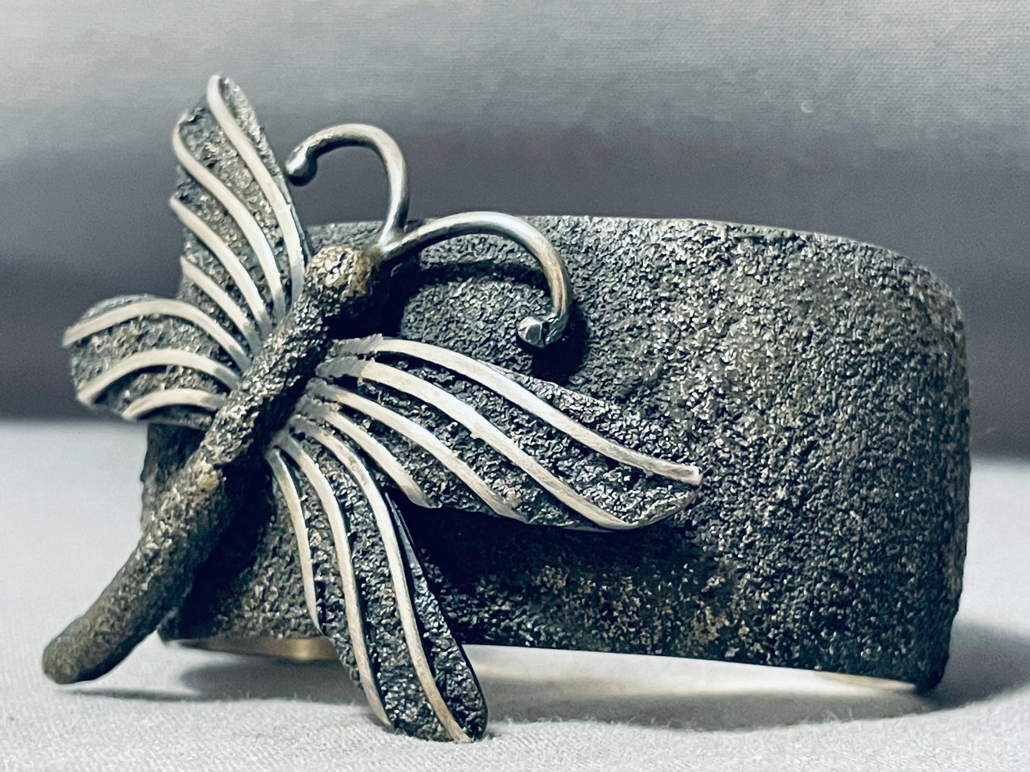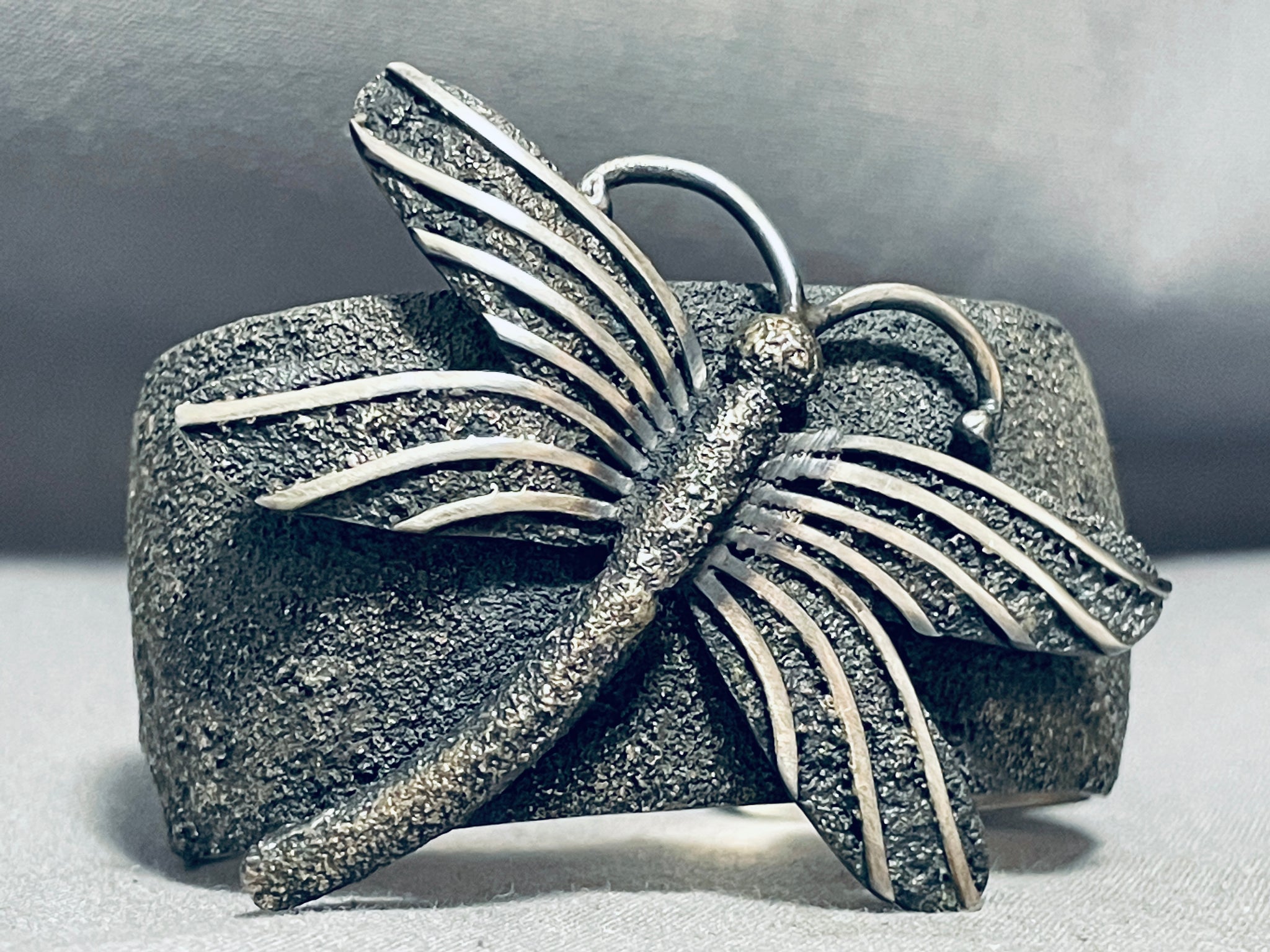 Native American One Of The Most Unique Ever Vintage Navajo Dragonfly Sterling Silver Bracelet