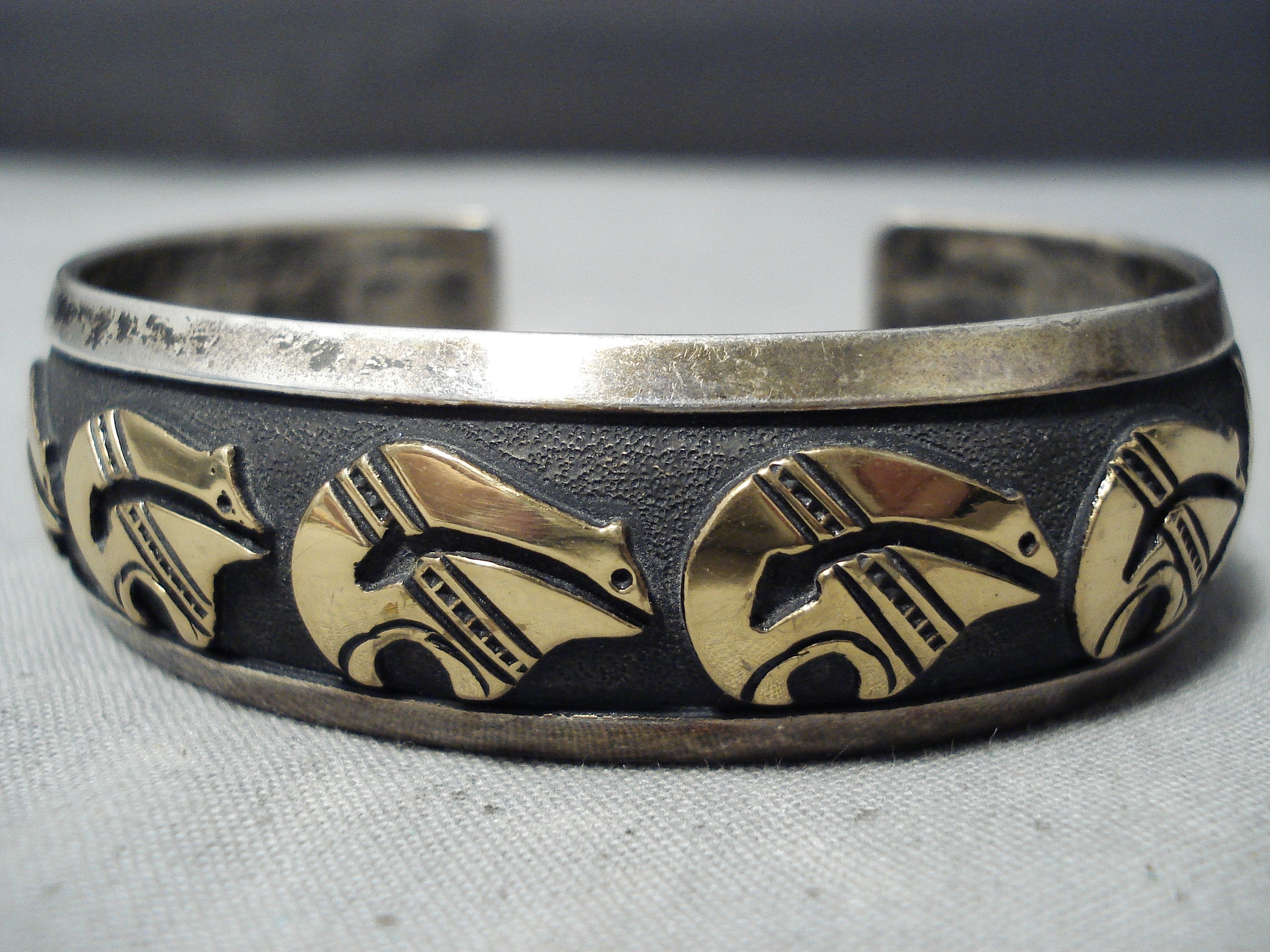 Native American One Of The Most Unique Gold Bear Thomas Singer Sterling Silver Bracelet