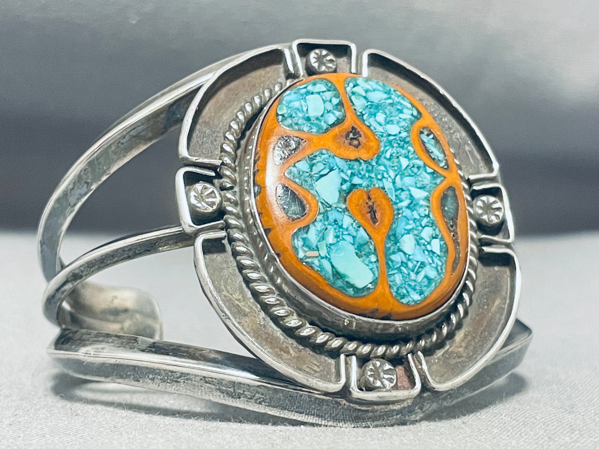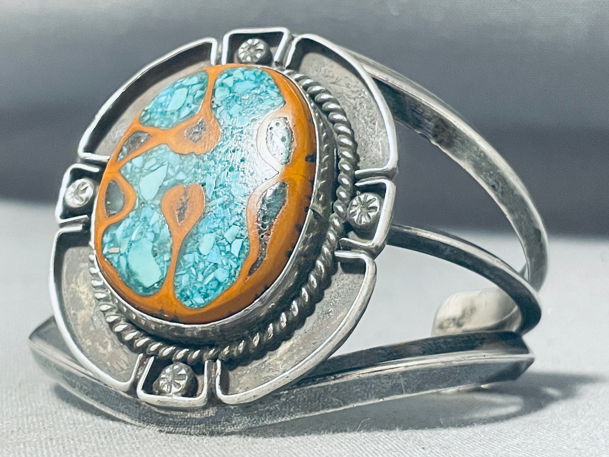 Native American One Of The Most Unique Turquoise Turtle Sterling Silver Bracelet