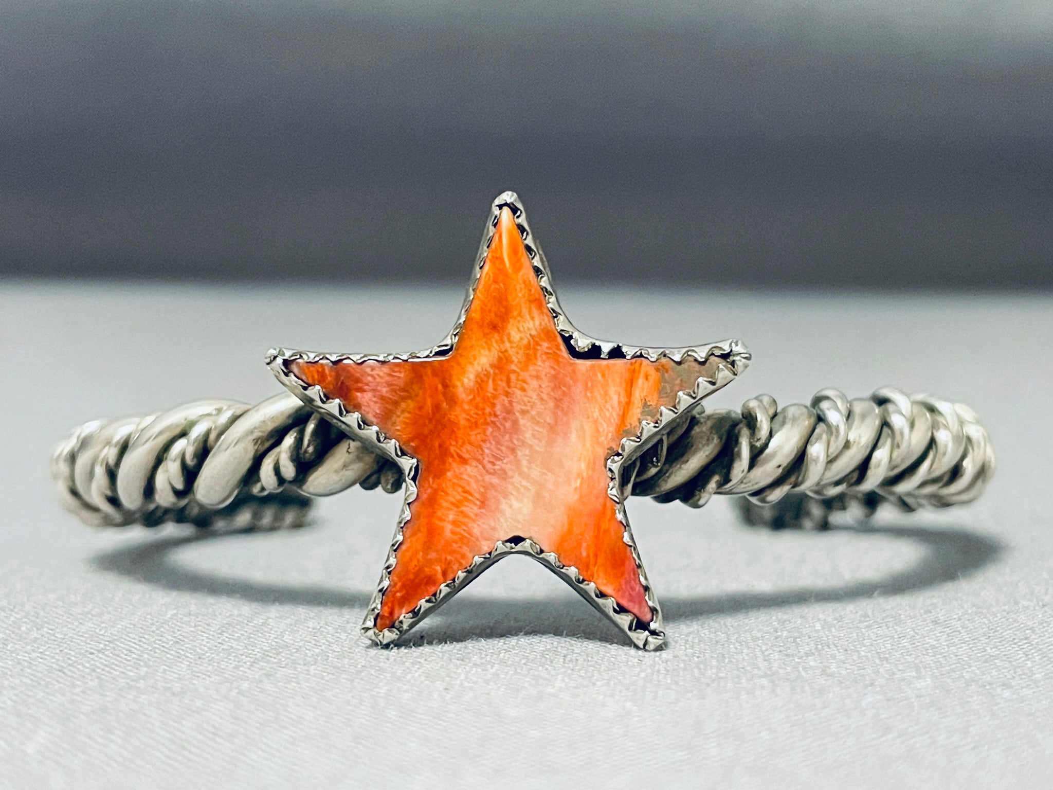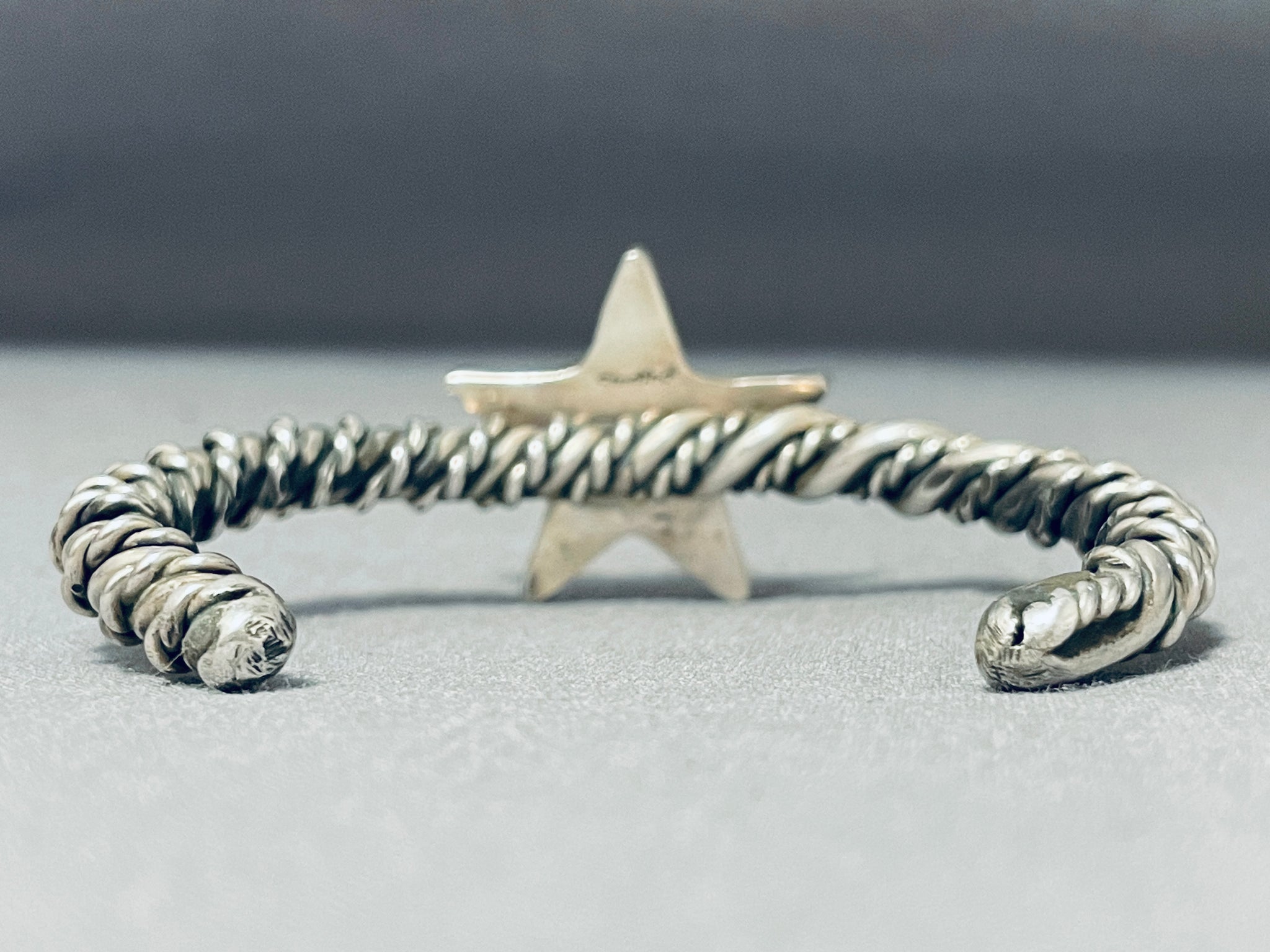 Native American One Of The Most Unique Vintage Navajo Star Shell Sterling Silver Bracelet
