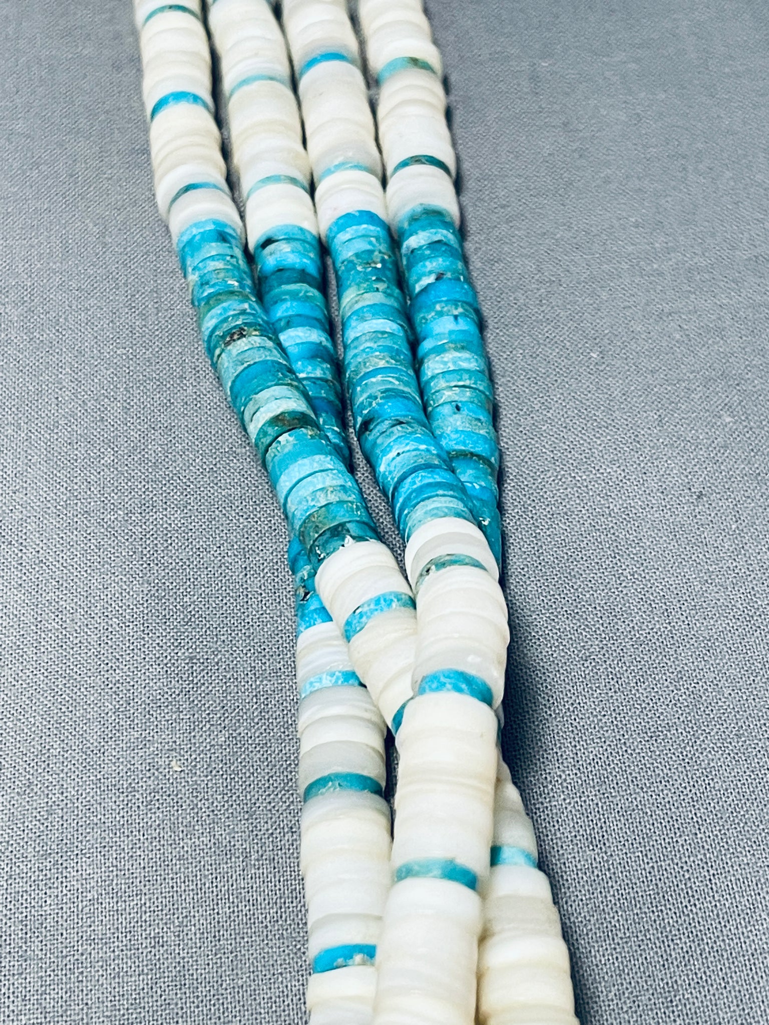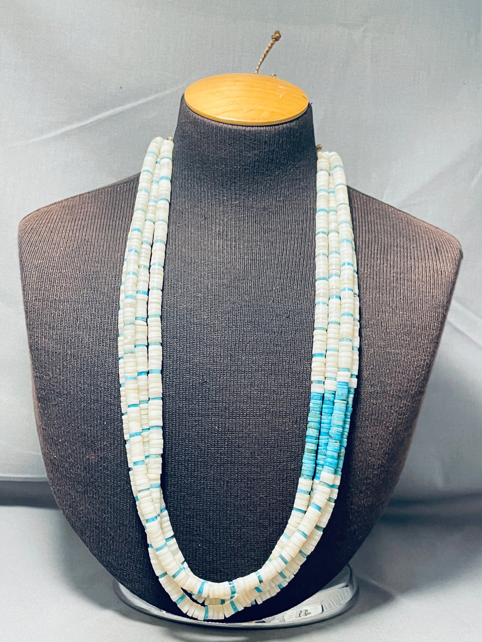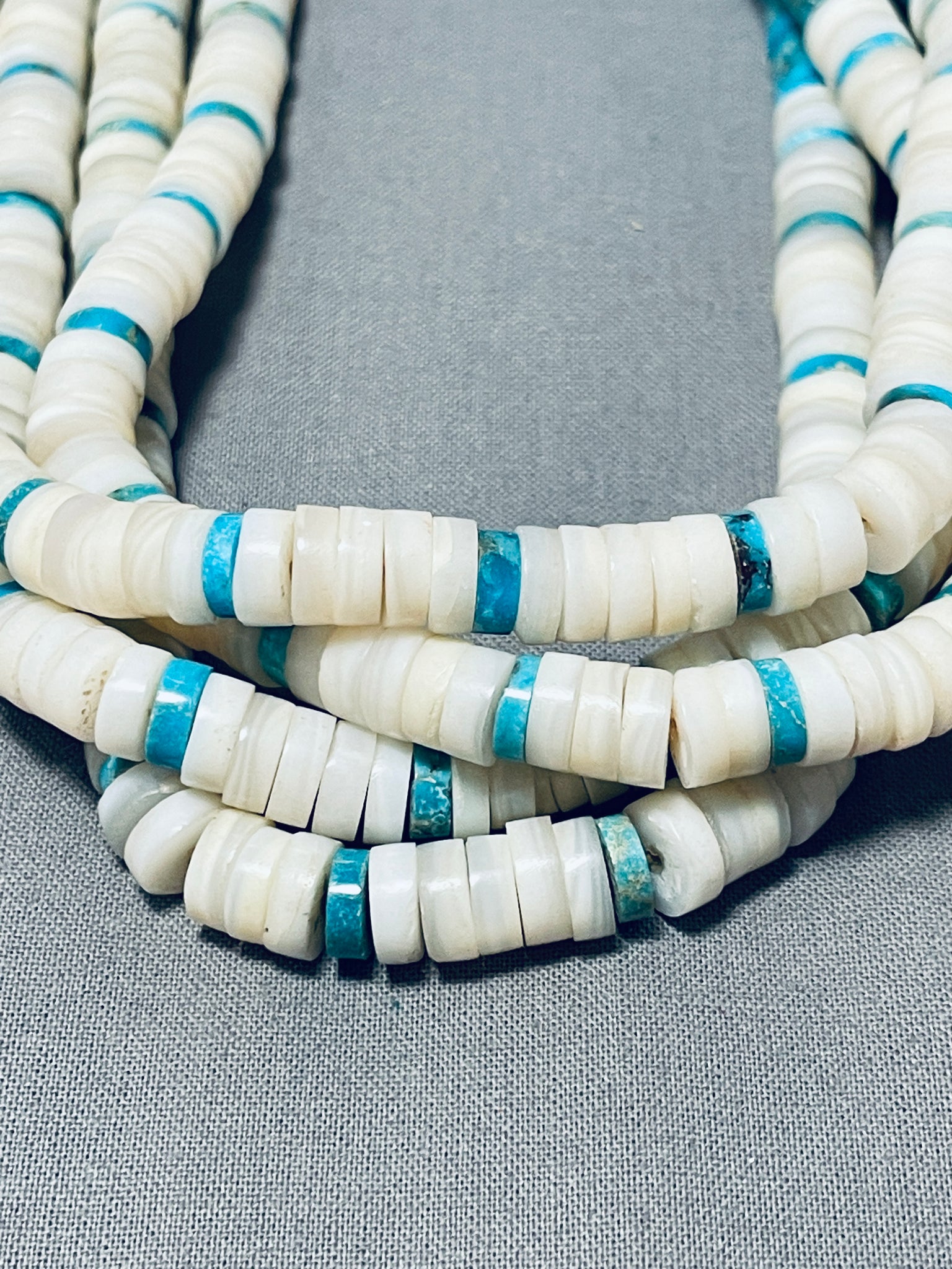 Native American One Of The Most Unique Vintage Santo Domingo Turquoise Shell Necklace