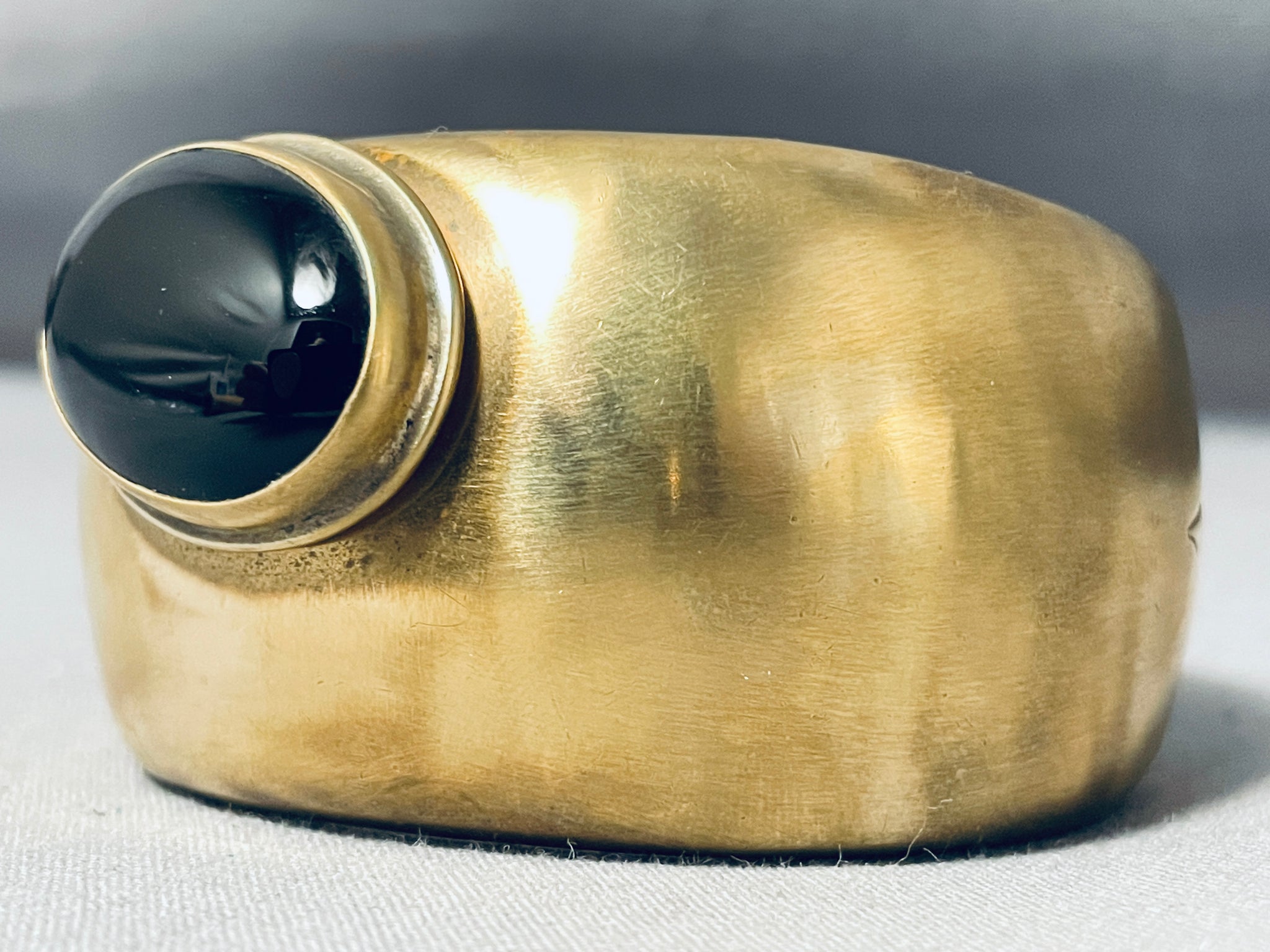 Native American Orville Tsinnie Hard Workmanship Rare Jet Bracelet Cuff