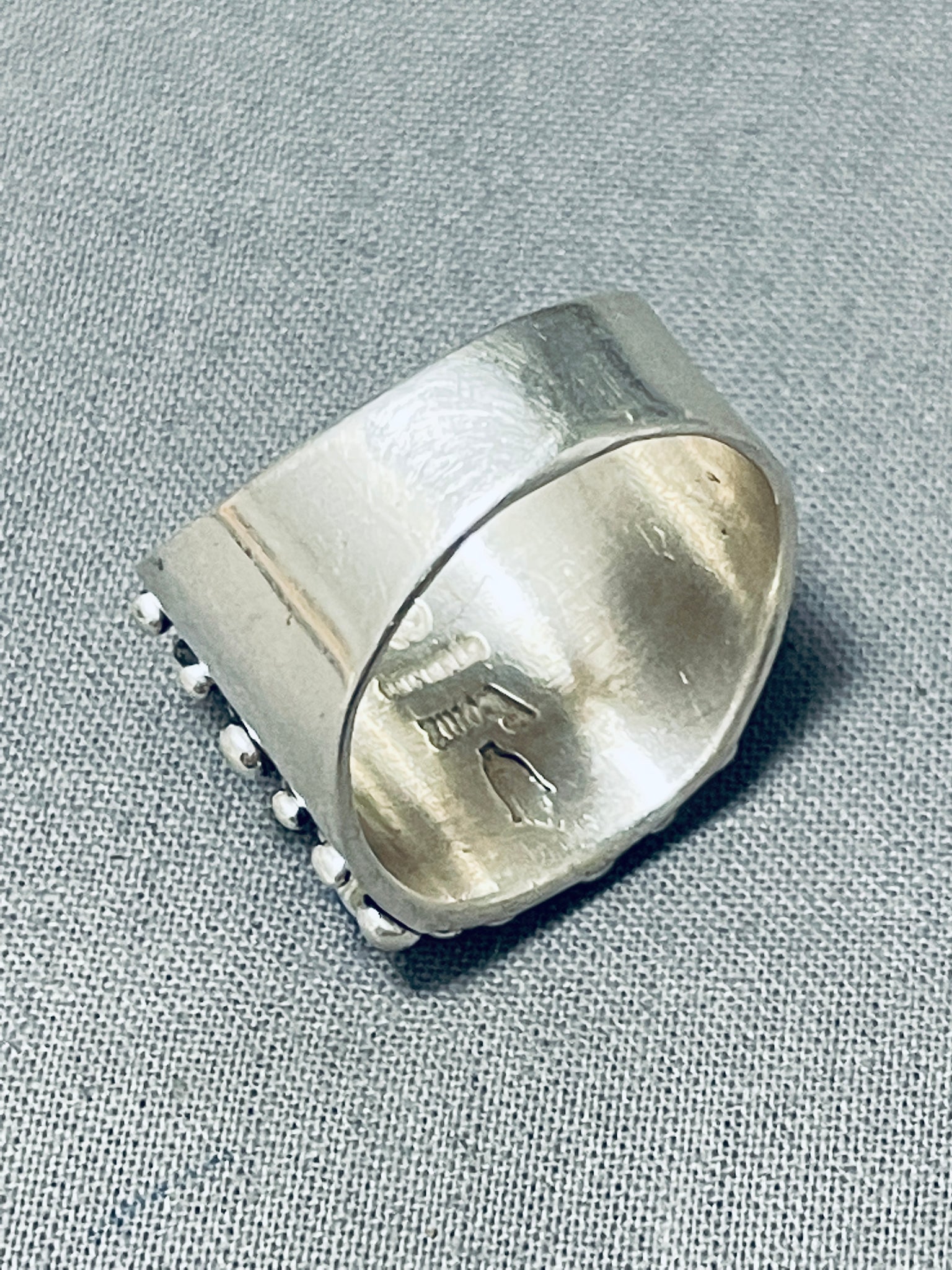 Native American Outstanding Vintage Santo Domingo Lapis Sterling Silver Ring Signed